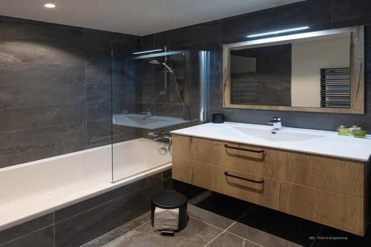 Stue(dobbeltseng(140 x 190 cm), Fjernsyn(fladskærm), sofahjørne), åbent køkken(kogeplade(glaskeramisk), elkedel, brødrister, kaffemaskine, espressomaskine, ovn, mikrobølgeovn, opvaskemaskine , køleskab, ), soveværelse(dobbeltseng(160 x 200 cm)), soveværelse(enkeltseng(80 x 200 cm), enkeltseng(80 x 200 cm)), Hytte(enkeltseng(80 x 190 cm), enkeltseng(80 x 190 cm)), badeværelse(bruser), badeværelse(bruser), toilet(toilet), toilet(toilet), balkon