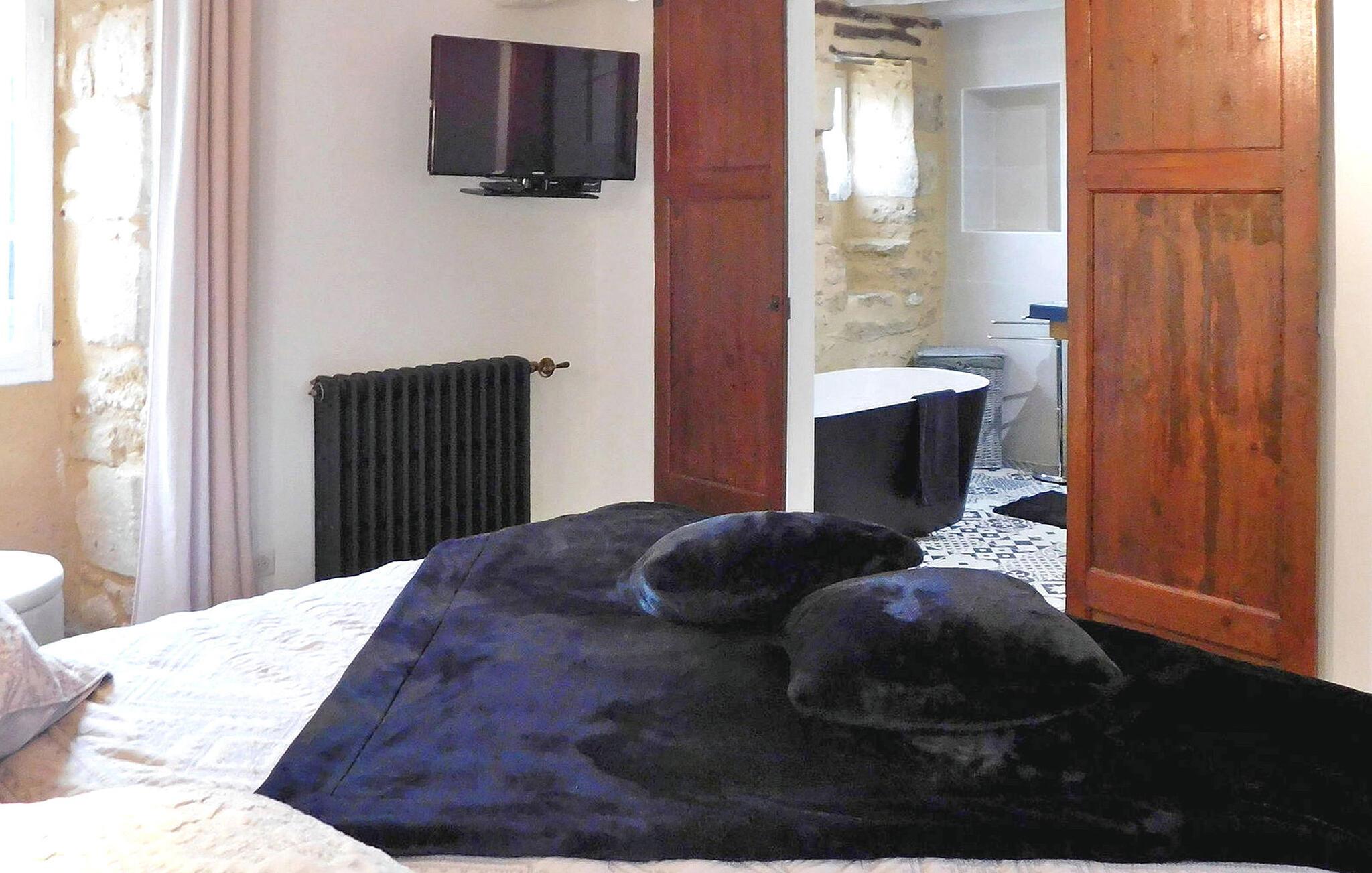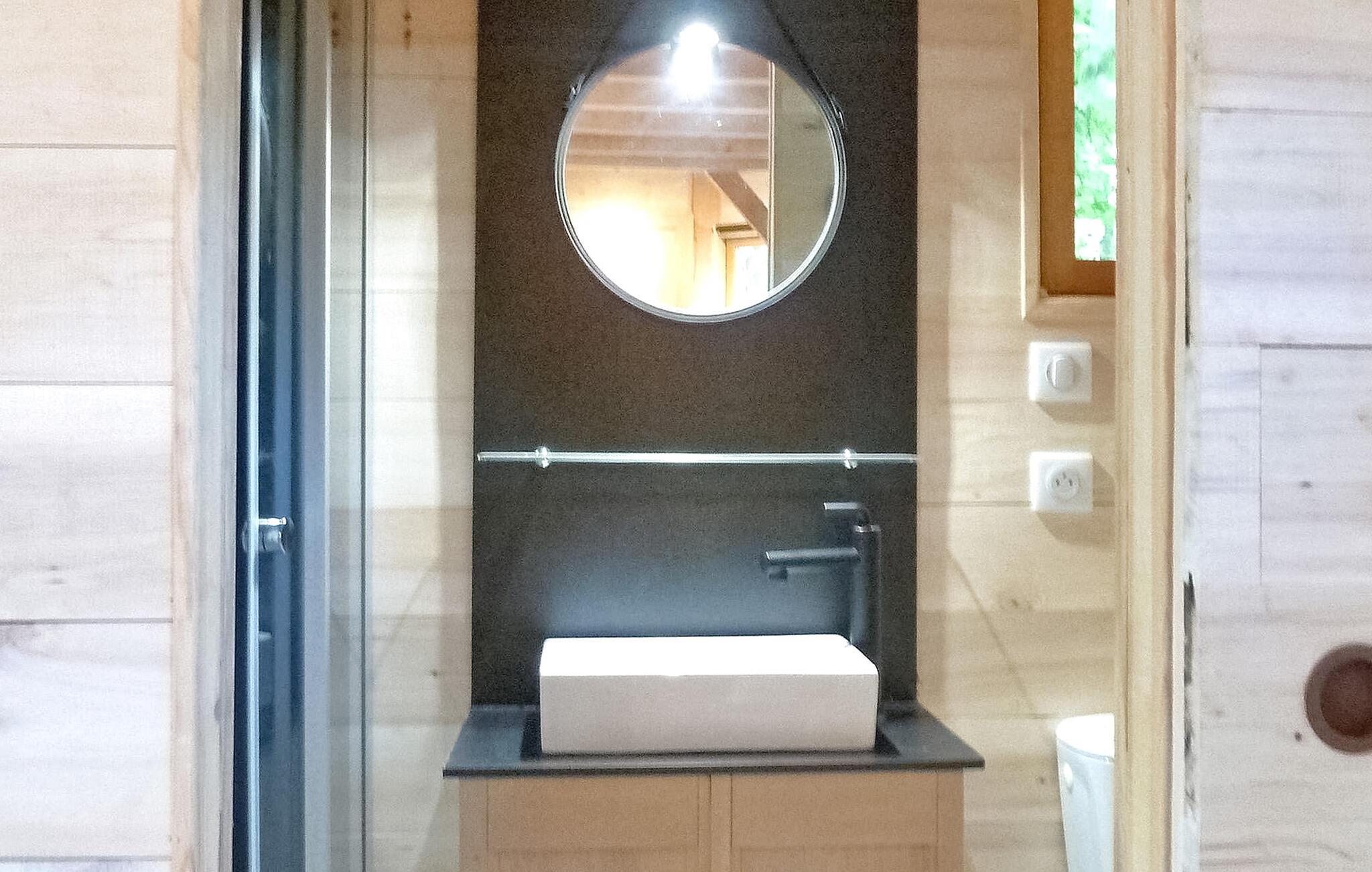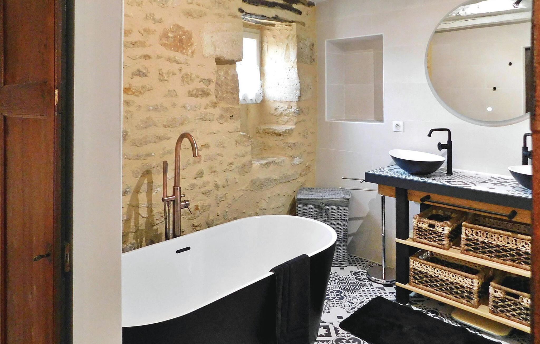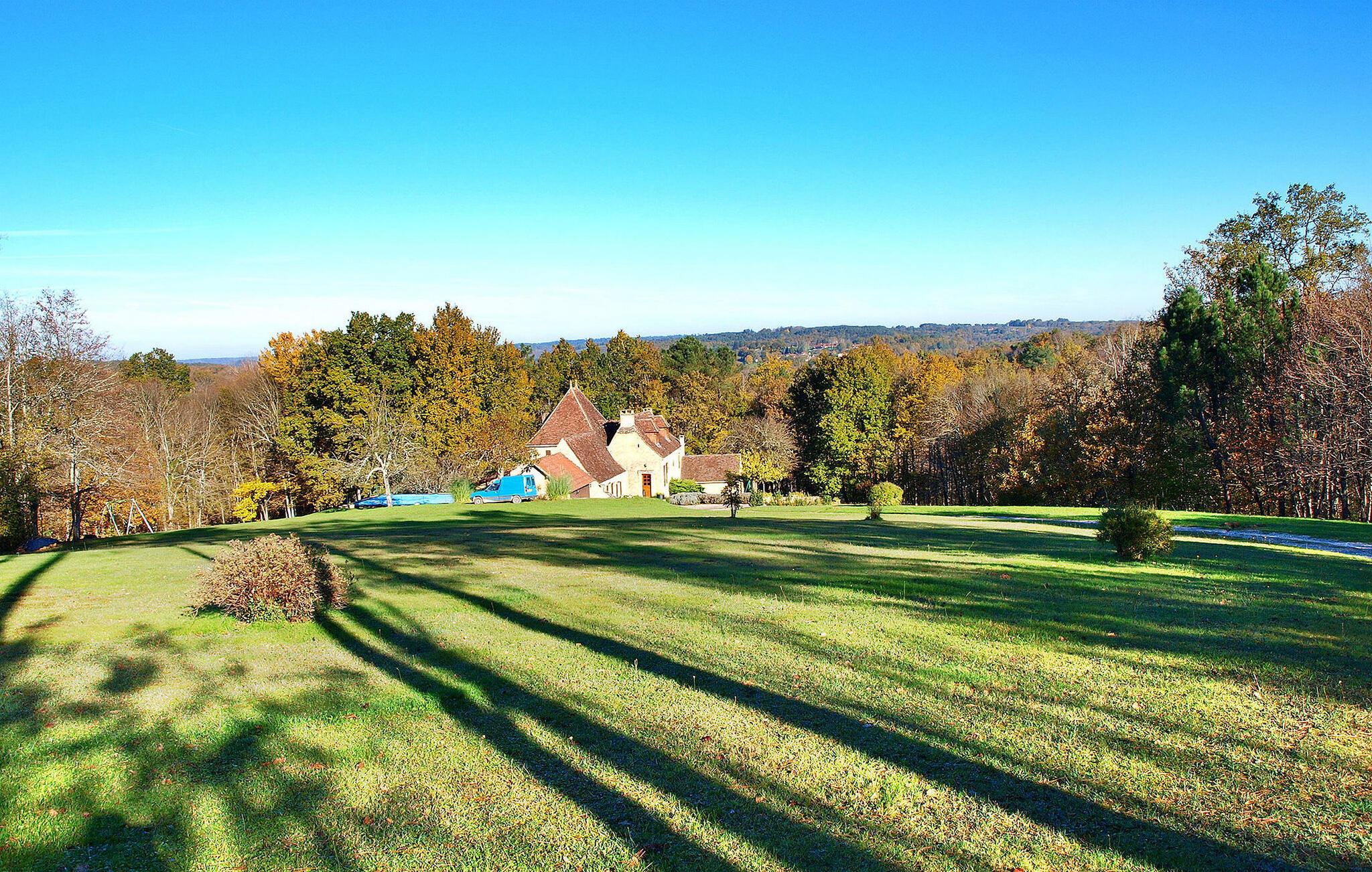 Denne ejendom består af et hovedhus til 8 personer og et selvstændigt træhus til 4, beliggende i en fredfyldt ejendom i Saint-Cirqs landskab. Beliggende på en indhegnet grund tilbyder denne ekspansive ejendom en fredelig flugt midt i skove og enge. Hovedhuset indeholder en stueetage med et indbydende indgangsparti, veludstyret køkken og et komfortabelt opholdsrum, der åbner op til poolsiden gennem karnapper. Stueetagen har også et ensuite soveværelse, mens de resterende tre soveværelser er ovenpå. Omkring 100 m fra hovedhuset langs skovbrynet giver det uafhængige træhus et charmerende tilflugtssted for 2 til 4 gæster. Træhytten har opholdsstue, tekøkken, brusebad og en hyggelig udendørs terrasse med fredfyldt udsigt. Udenfor byder den indhegnede grund på forskellige afslapningssteder, herunder sten- og træterrasser til udendørs nydelse. Den private swimmingpool (10m x 5m), sikret med en alarm, lokker gæsterne til at slappe af midt i de maleriske omgivelser. Ejerne giver venligst en gratis første morgenmad med mulighed for levering af frisk brød hver morgen under opholdet tilgængelig på stedet. Huset ligger omkring 5 km fra Le Bugue, og er en del af samfundet Saint Cirq. Isolerede omgivelser på landet. Butikker og tennisbaner 5 km væk.