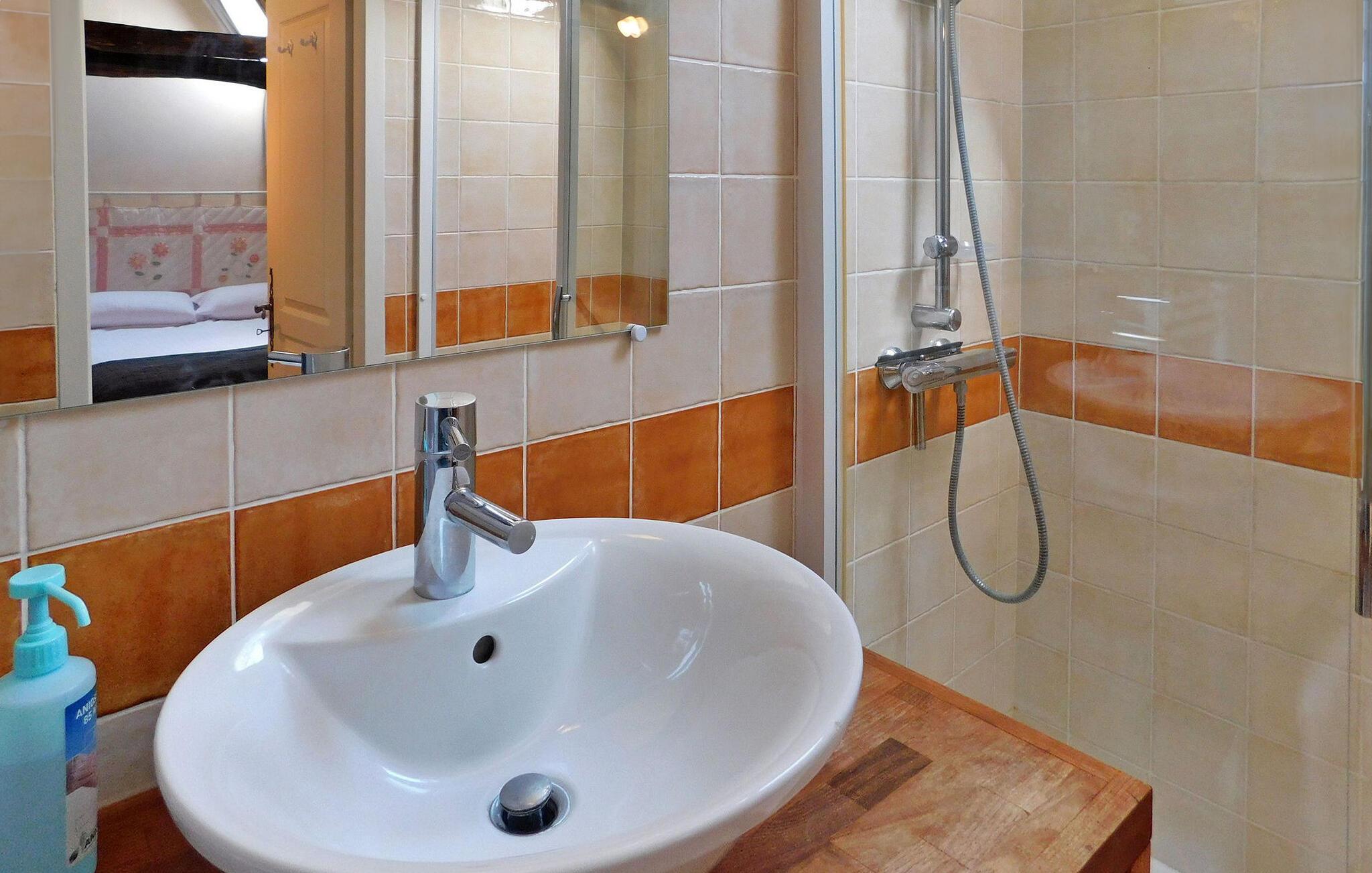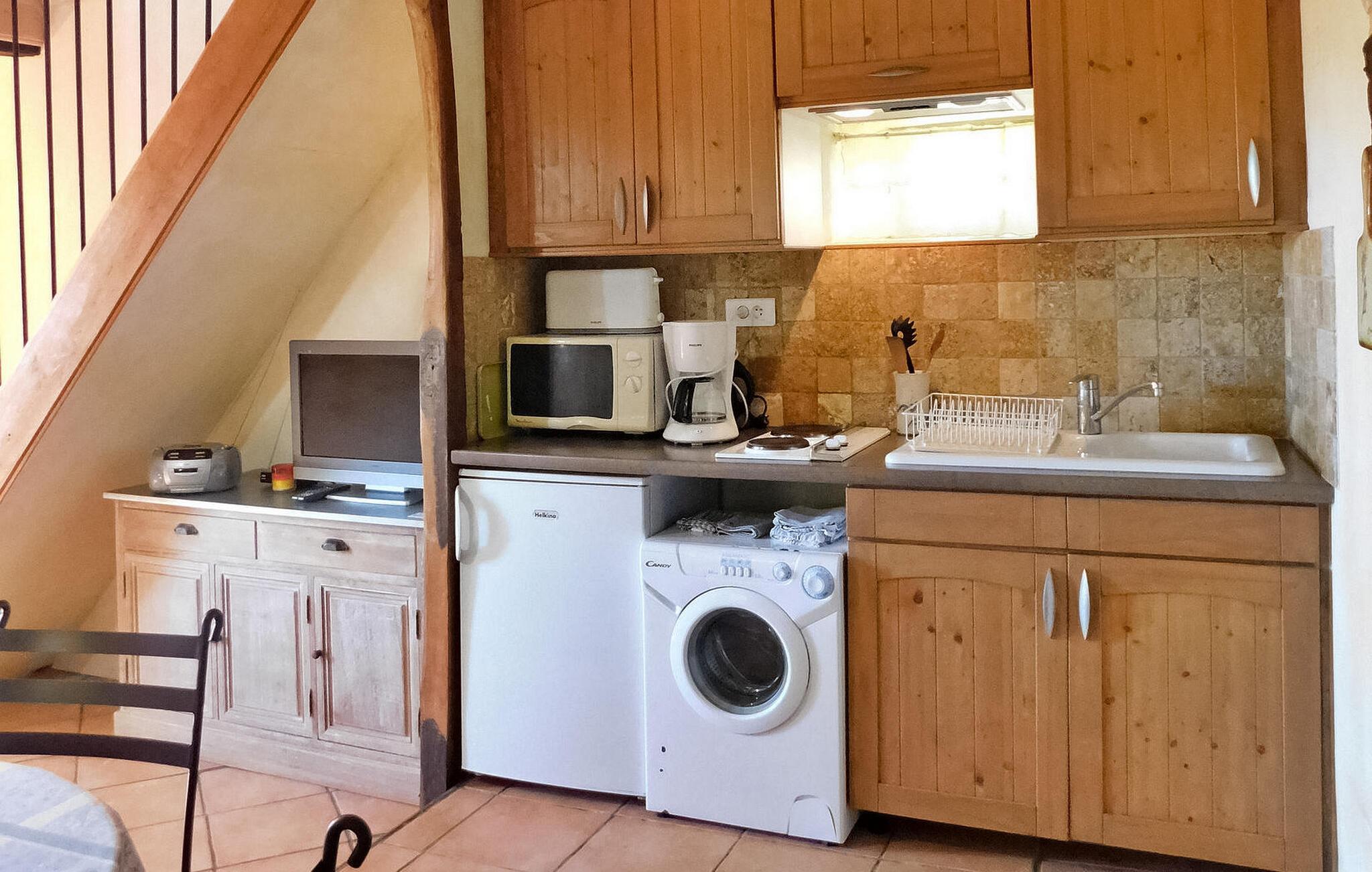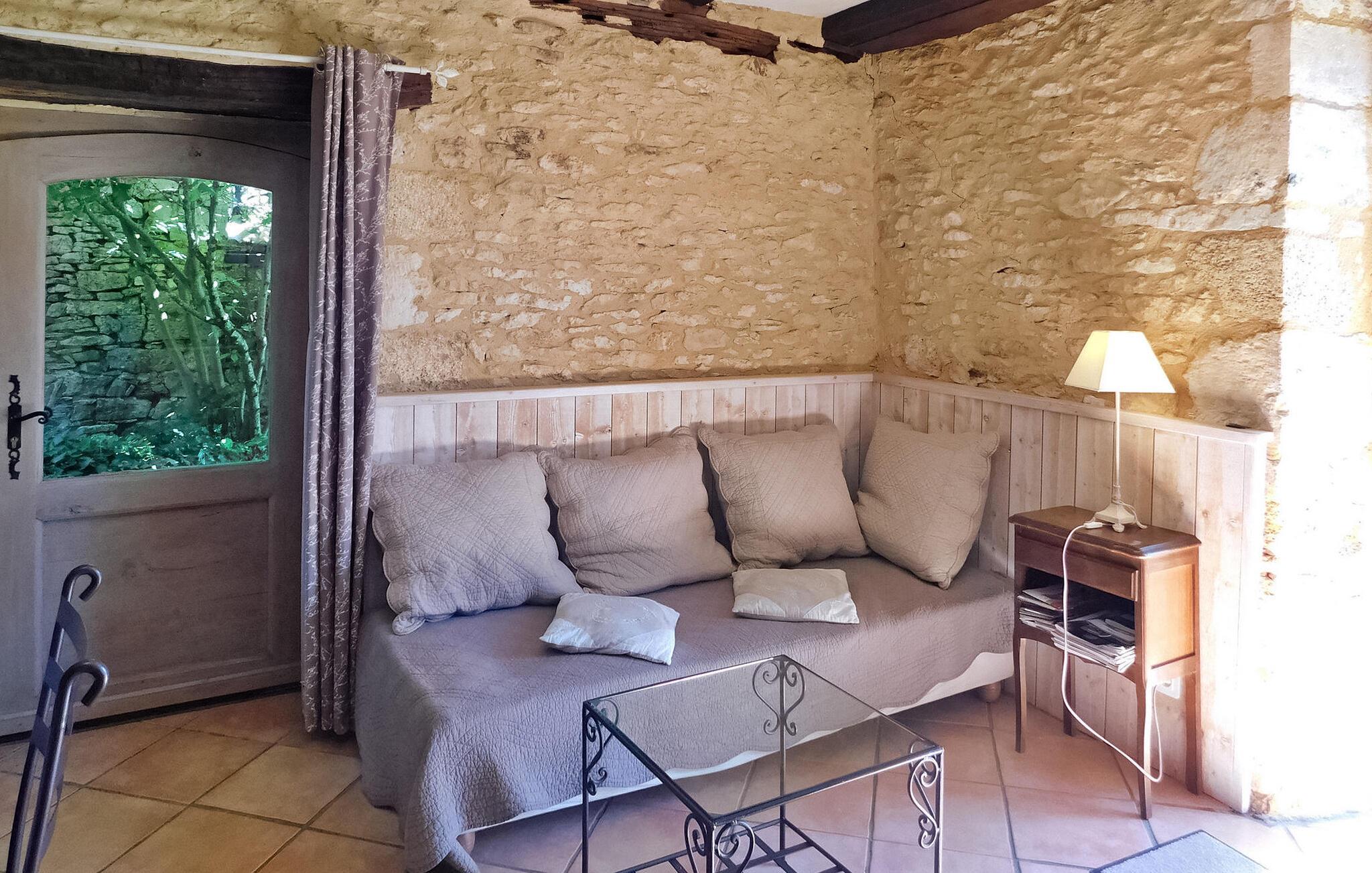 Forkæl dig selv med en romantisk flugt for to i dette fortryllende stenferiehus beliggende i en fredfyldt landsby i Dordogne. Denne charmerende bolig inviterer dig til at fordybe dig i skønheden i Perigord. Inden for et intimt rum har denne hytte et hyggeligt opholdsområde suppleret med en spiseplads ved siden af en antik stenvask. Det åbne tekøkken tilbyder bekvemmelighed for dit ophold. En glasdør afslører en privat terrasse, der tilføjer den romantiske stemning. Gå op ad trappen for at opdage soveværelset ovenpå, prydet med parketgulve og tilhørende bruser for din komfort og bekvemmelighed. Træd udenfor for at omfavne roen i omgivelserne på to stenterrasser - en støder op til indgangen og en anden mere intim knyttet til stuen. Der er praktisk parkering lige foran huset. Beliggende i en fredfyldt landsby deler denne idylliske hytte den fredelige atmosfære med ejerne, så du kan opleve charmen ved Dordogne, mens du nyder en romantisk og intim ferie. Huset ligger i en smuk landsby af stenhuse 1 km fra Saint Cyprien. Nærmeste butikker inden for 3 km.