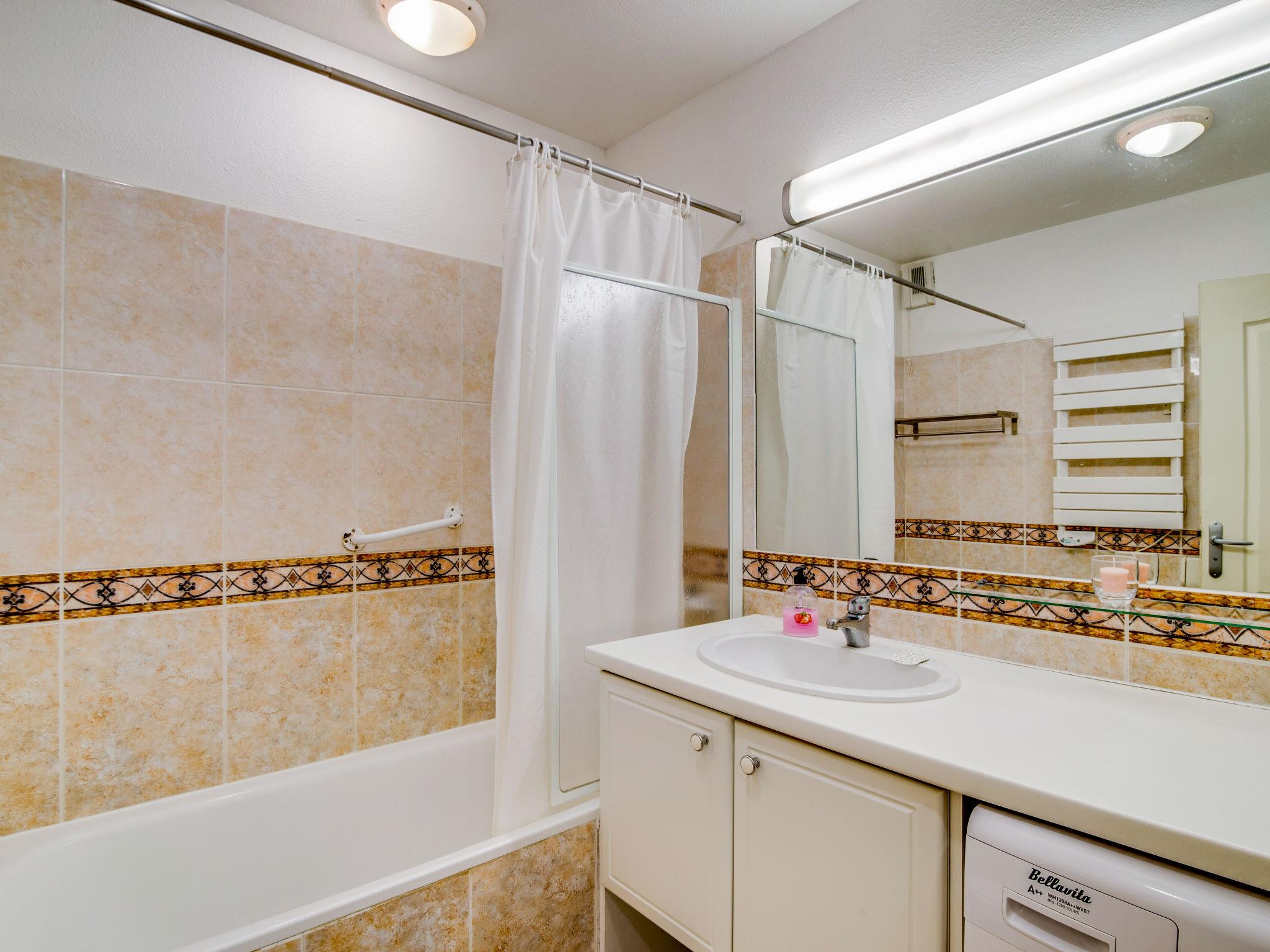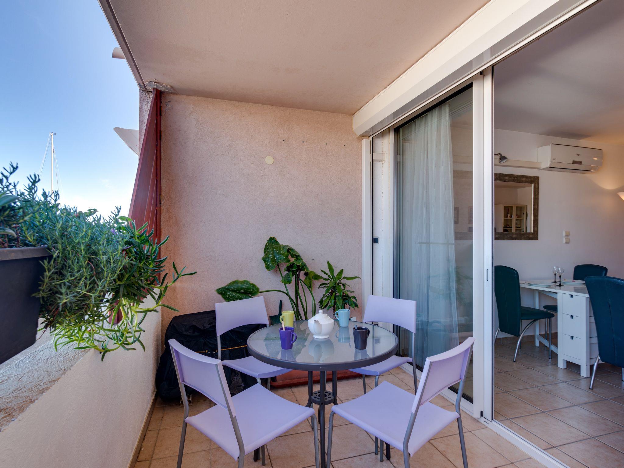 3-room apartment 60 m2, on the upper ground floor. Living/dining room with 1 double sofabed (140 cm, length 190 cm), TV (flat screen), DVD and air conditioning. Exit to the terrace. 1 room with 1 french bed (140 cm, length 190 cm). Exit to the balcony. 1 room with 2 beds (90 cm, length 190 cm). Open kitchen (oven, dishwasher, 4 induction hot plates, kettle, microwave, freezer, electric coffee machine). Bath/WC, shower/WC. Air-conditioning. Balcony 6 m2, terrace 10 m2, roofed. Terrace furniture. Beautiful view of lagoon. Facilities: washing machine, children's high chair, baby cot. Internet (WiFi, free). Parking (fenced). Please note: smoke alarm.