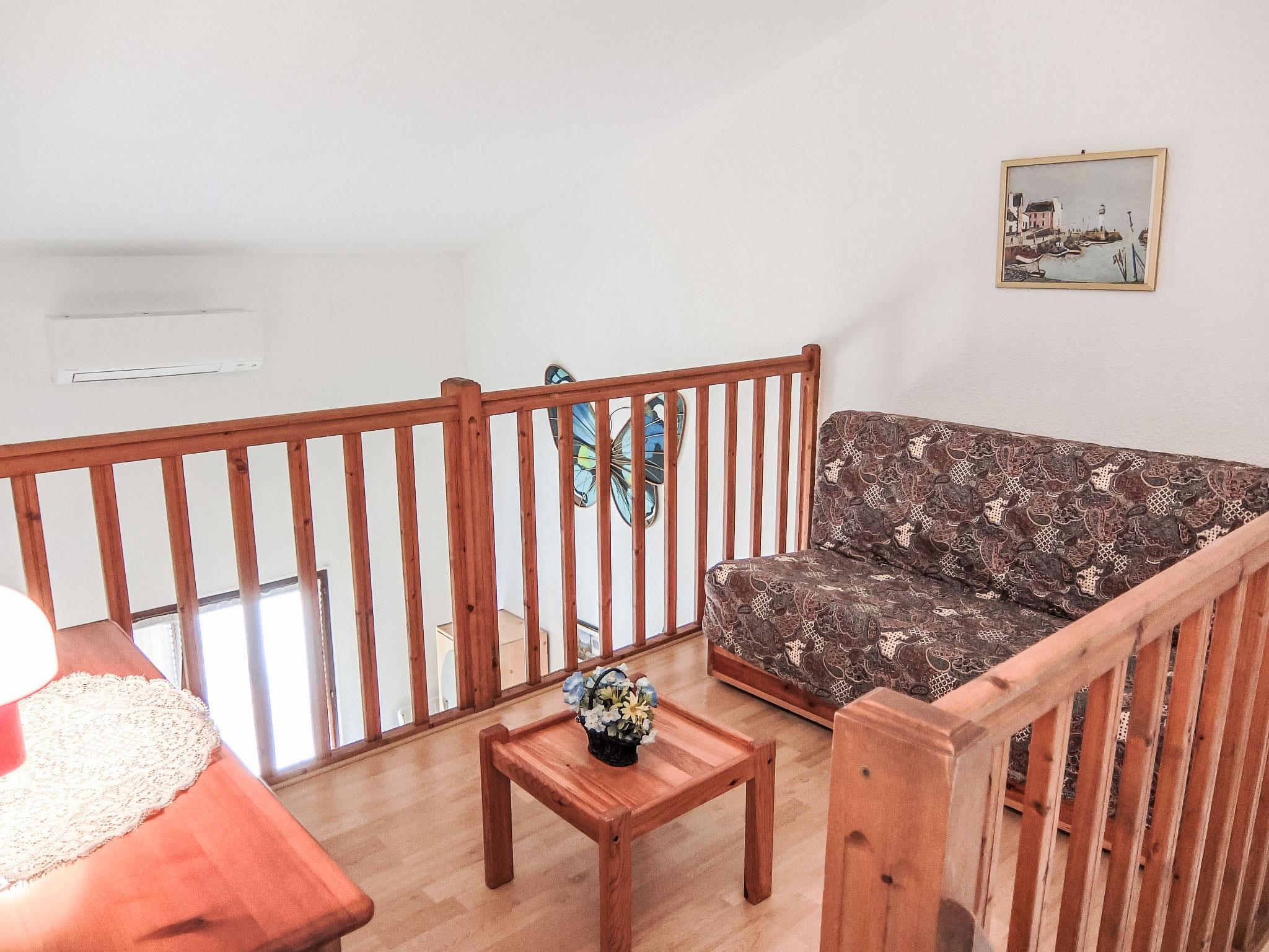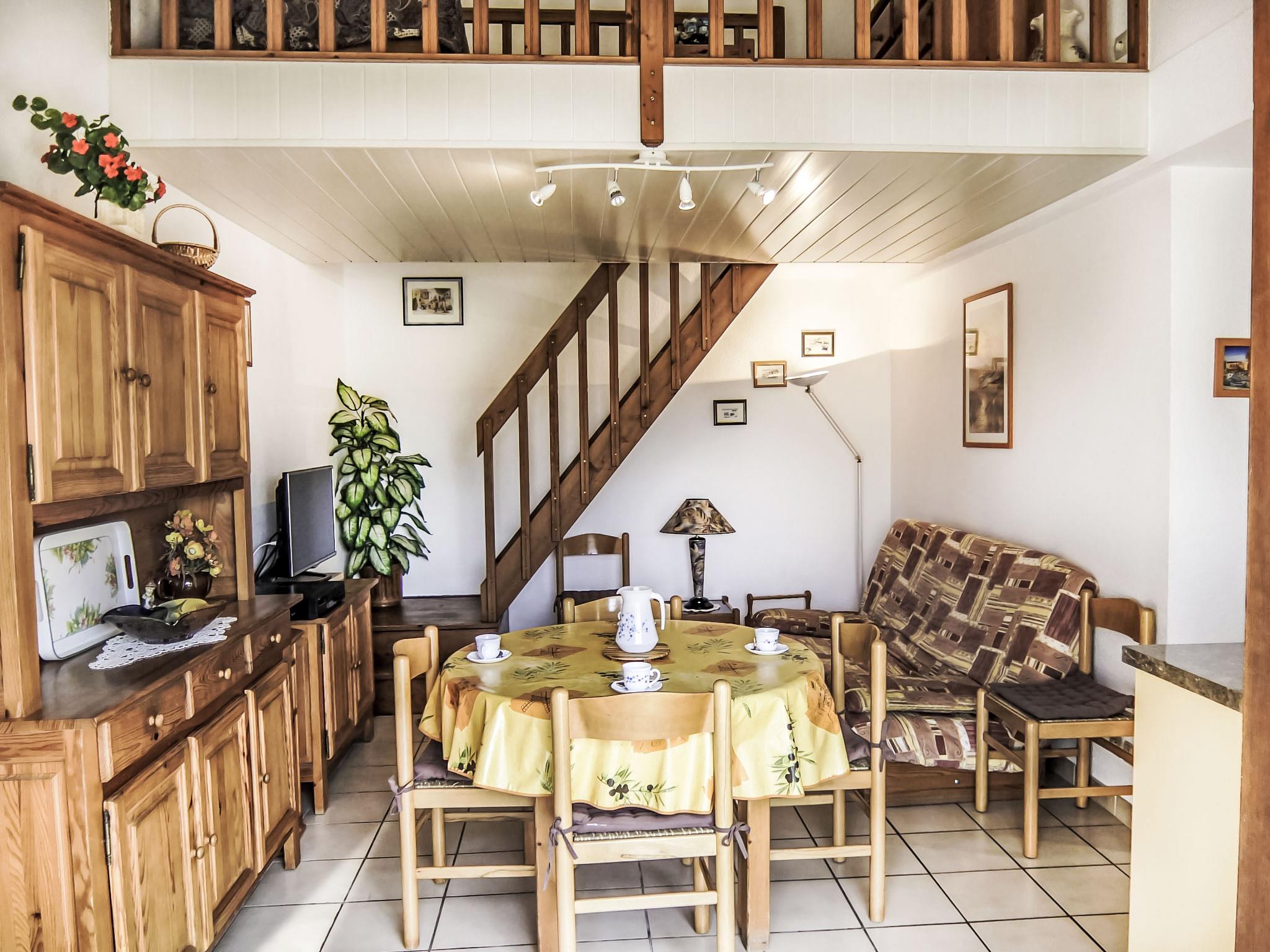 3-room terraced house 58 m2 on 2 levels. Living/dining room with TV and air conditioning. 1 room with 1 french bed. Kitchenette (oven, dishwasher, 2 ceramic glass hob hotplates, electric coffee machine). Bathroom, sep. WC. Upper floor: gallery with 1 double sofabed. 1 room with 2 beds and shower/WC. Terrace 40 m2, west facing position. Terrace furniture, barbecue. Facilities: Internet (WiFi, extra). Parking. Please note: smoke alarm.