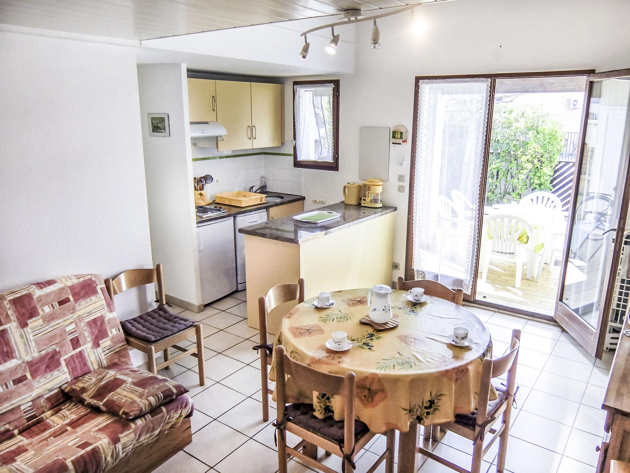 Residence "Les Lauriers Roses". In the centre of Saint Cyprien, 600 m from the sea, 600 m from the beach. Shop 350 m, supermarket 750 m, restaurant, bakery 400 m, bus stop 200 m, railway station "Elne" 8 km, sandy beach "Plage Maillol" 600 m. Sports harbour 750 m, golf course (27 hole) 3 km, sailing school 3.5 km, minigolf 2 km, riding stable 2.5 km, sports centre 3.7 km. Nearby attractions: Aqualand 5 km.