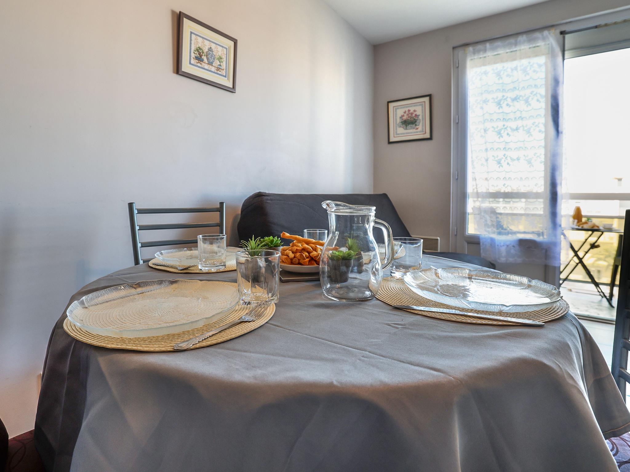 2-room apartment 28 m2 on 4th floor. Living/dining room with 1 double sofabed (140 cm, length 190 cm), TV (flat screen). Exit to the balcony. 1 room with 1 french bed (140 cm, length 190 cm). Kitchenette (oven, 2 induction hot plates, toaster, kettle, microwave, freezer, electric coffee machine). Shower/WC. Electric heating. Small balcony, north-east facing position. Balcony furniture. Side view of the sea. Facilities: washing machine. Internet (WiFi, extra). Parking at 900 m. Please note: smoke alarm. Offer by a private individual according to Art. 155, IV of CGI.