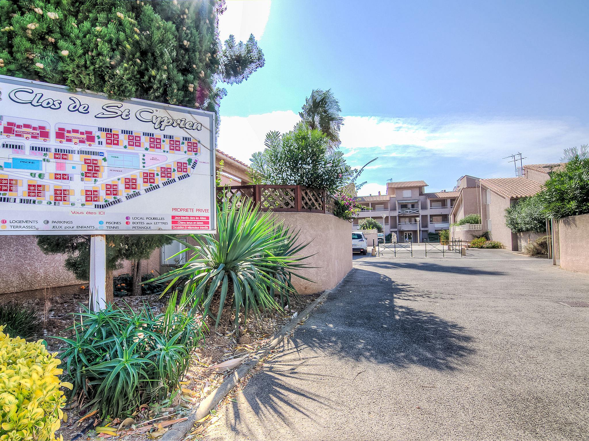 Residence "Le Clos de St Cyprien". In the centre of Saint Cyprien Port, in a central, busy position, 500 m from the sea, 500 m from the beach, on a main road. For shared use: swimming pool (seasonal availability: 15.Jun. - 15.Sep.). Children's pool, tennis, children's playground. Shop 400 m, supermarket 500 m, restaurant 400 m, bus stop 300 m, railway station "Elne" 8.3 km, sandy beach "Plage du Port" 500 m. Sports harbour 400 m, golf course (27 hole) 3.5 km, sailing school 2 km, minigolf 2.2 km, riding stable 1.3 km, sports centre 2.5 km. Nearby attractions: Aqualand 4.4 km.