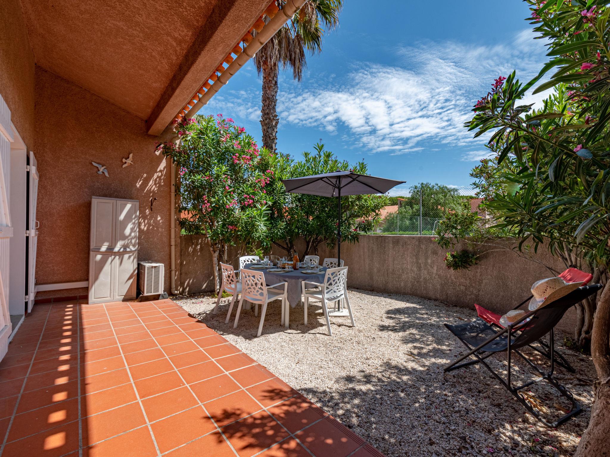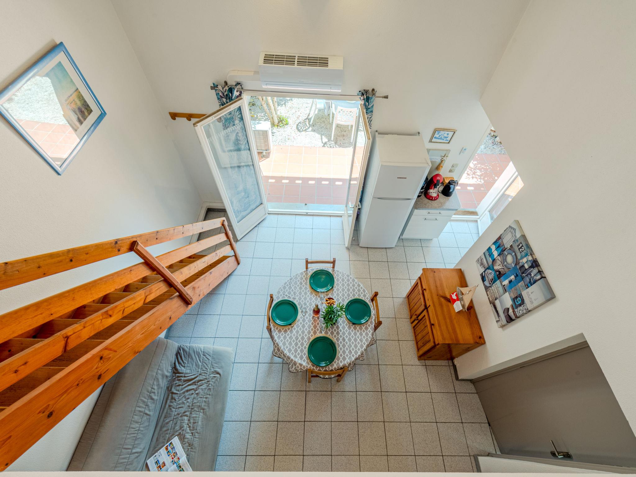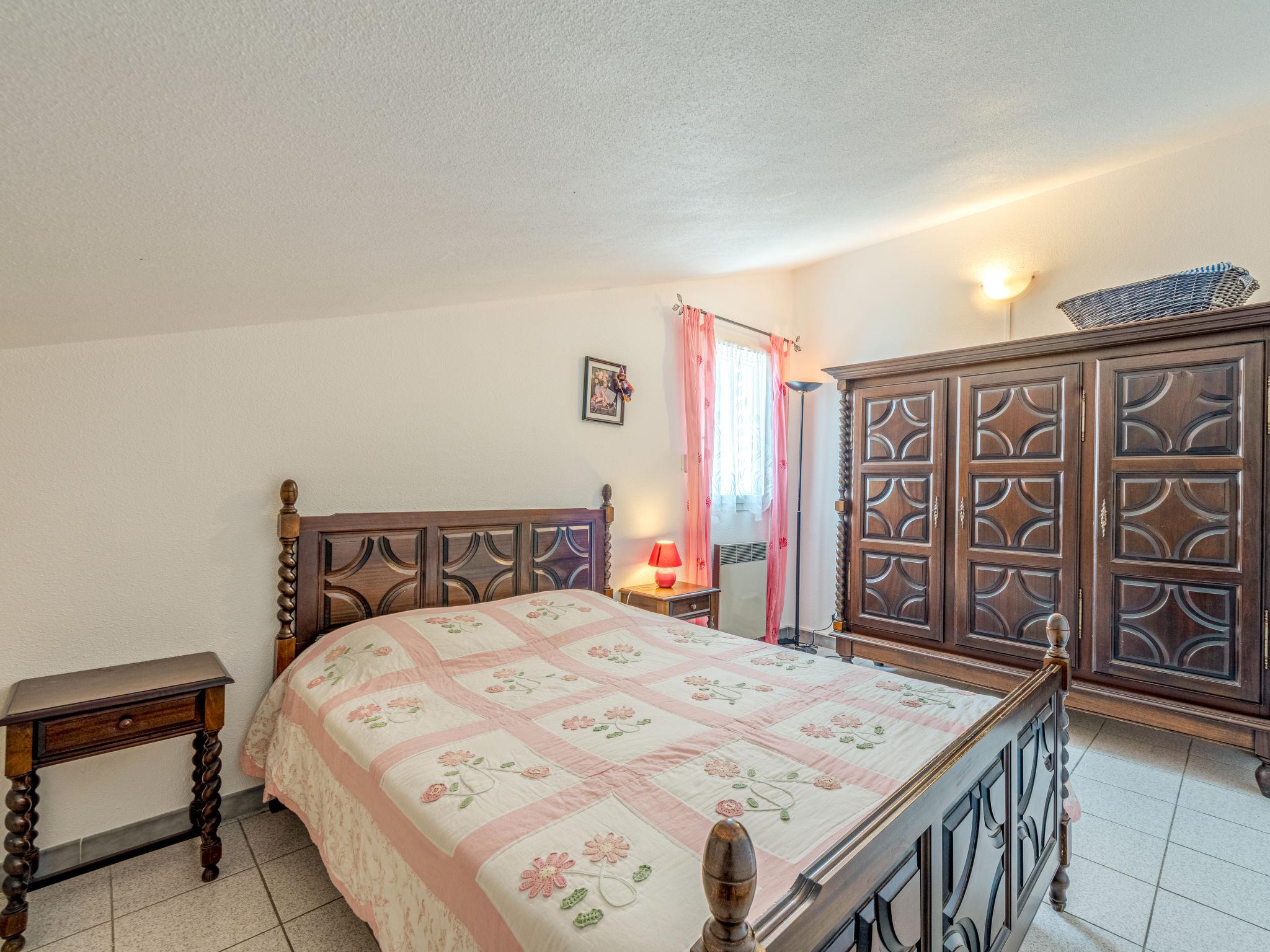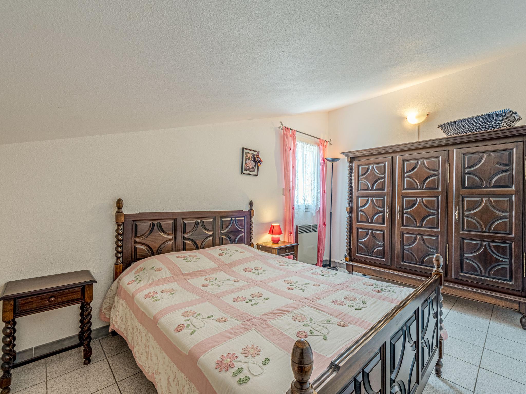 3-room terraced house 50 m2 on 2 levels. Living/dining room with 1 double sofabed. Exit to the garden, to the terrace. 1 room with 1 french bed (140 cm, length 190 cm), fan. Kitchenette (3 hot plates, oven, dishwasher, microwave, freezer). Shower/WC. Air-conditioning. Upper floor: 1 room with 1 french bed (140 cm, length 190 cm), fan. Terrace 12 m2, patio 15 m2. Barbecue. Facilities: washing machine. Internet (WiFi, extra). Parking space n 83 extérieur. Please note: smoke alarm.