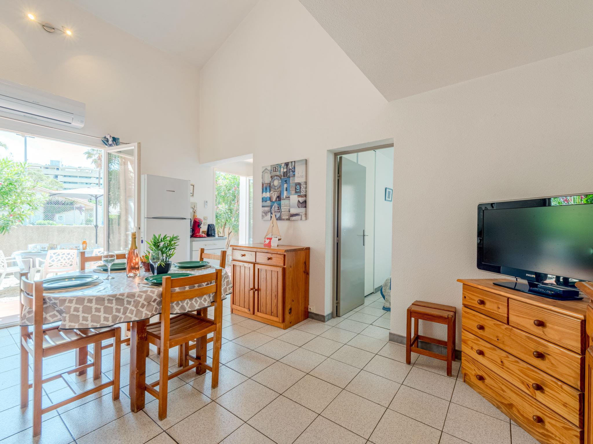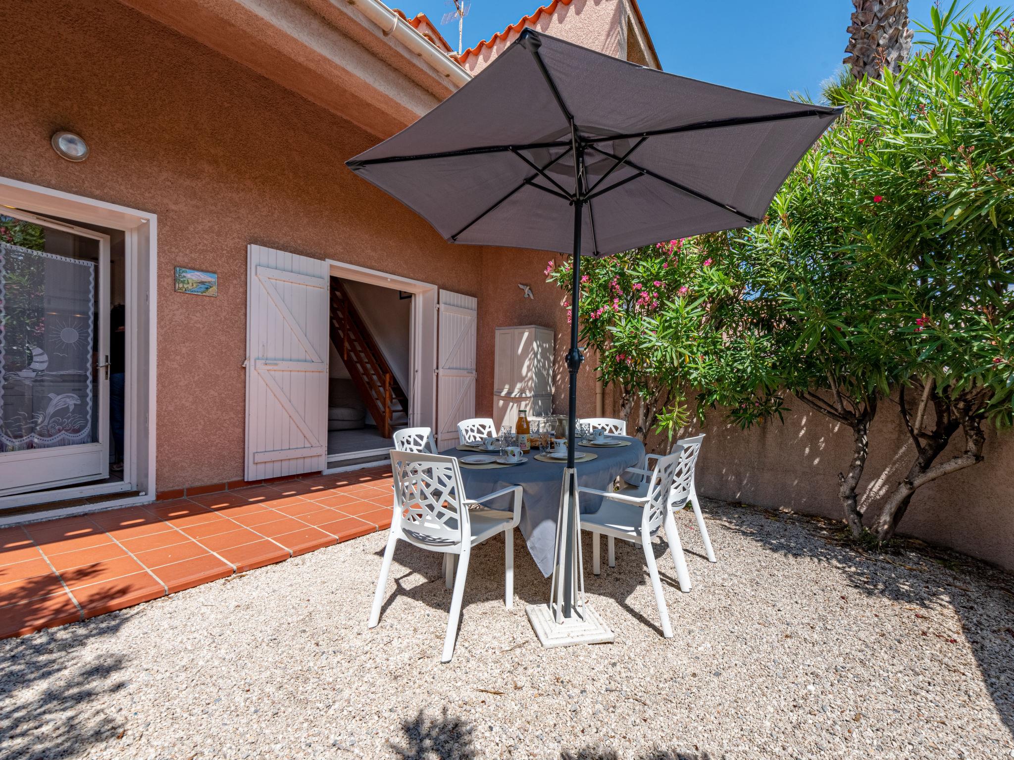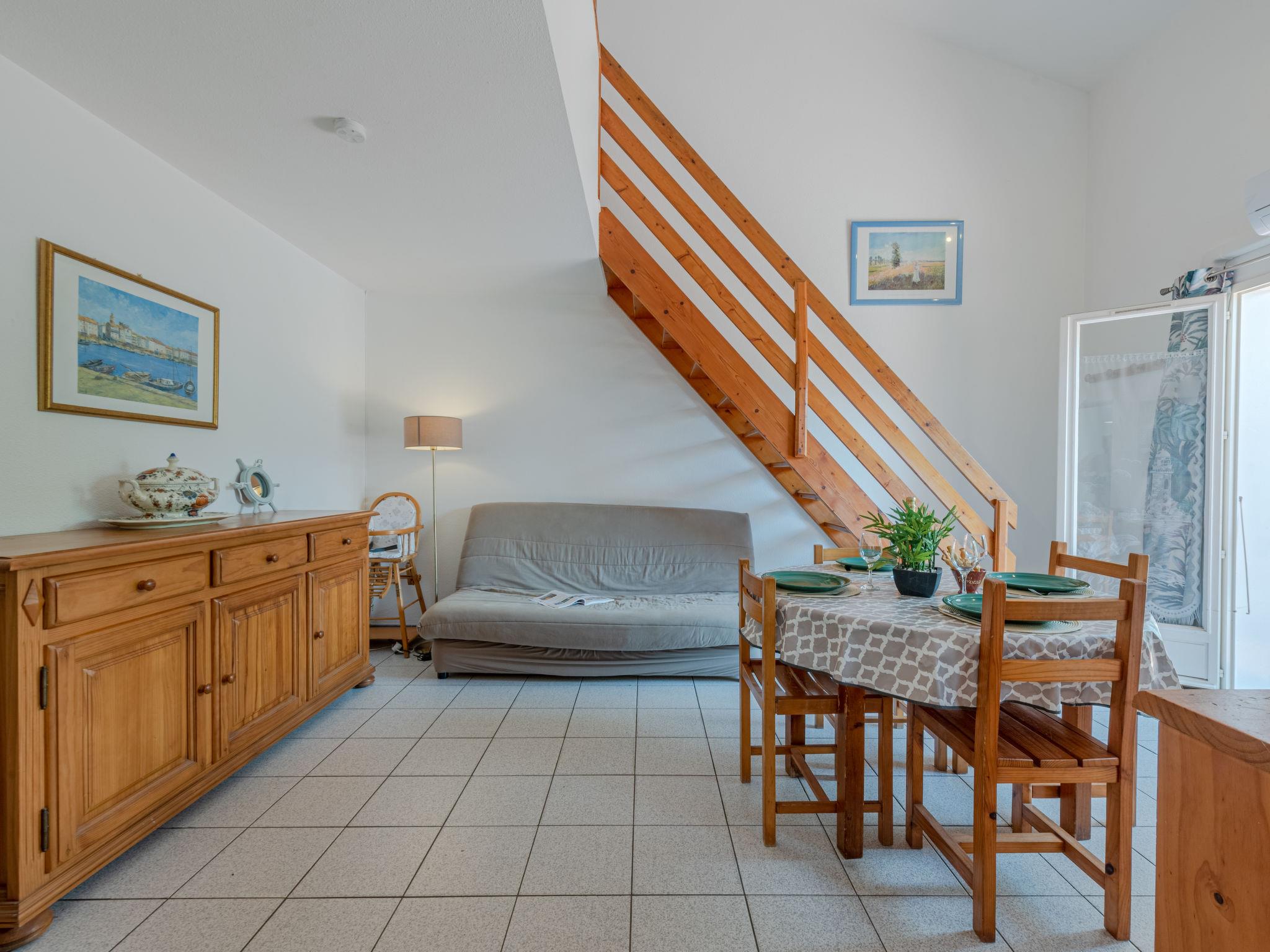 3-room terraced house 50 m2 on 2 levels. Living/dining room with 1 double sofabed. Exit to the garden, to the terrace. 1 room with 1 french bed (140 cm, length 190 cm), fan. Kitchenette (3 hot plates, oven, dishwasher, microwave, freezer). Shower/WC. Air-conditioning. Upper floor: 1 room with 1 french bed (140 cm, length 190 cm), fan. Terrace 12 m2, patio 15 m2. Barbecue. Facilities: washing machine. Internet (WiFi, extra). Parking space n 83 extérieur. Please note: smoke alarm.