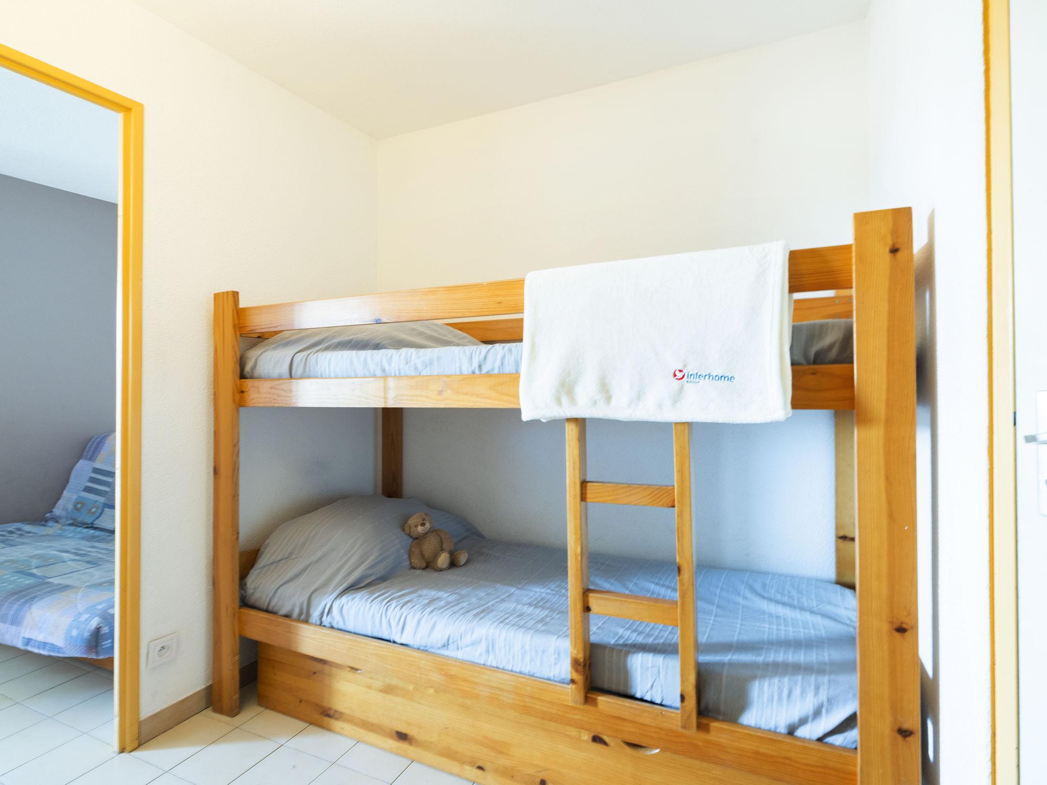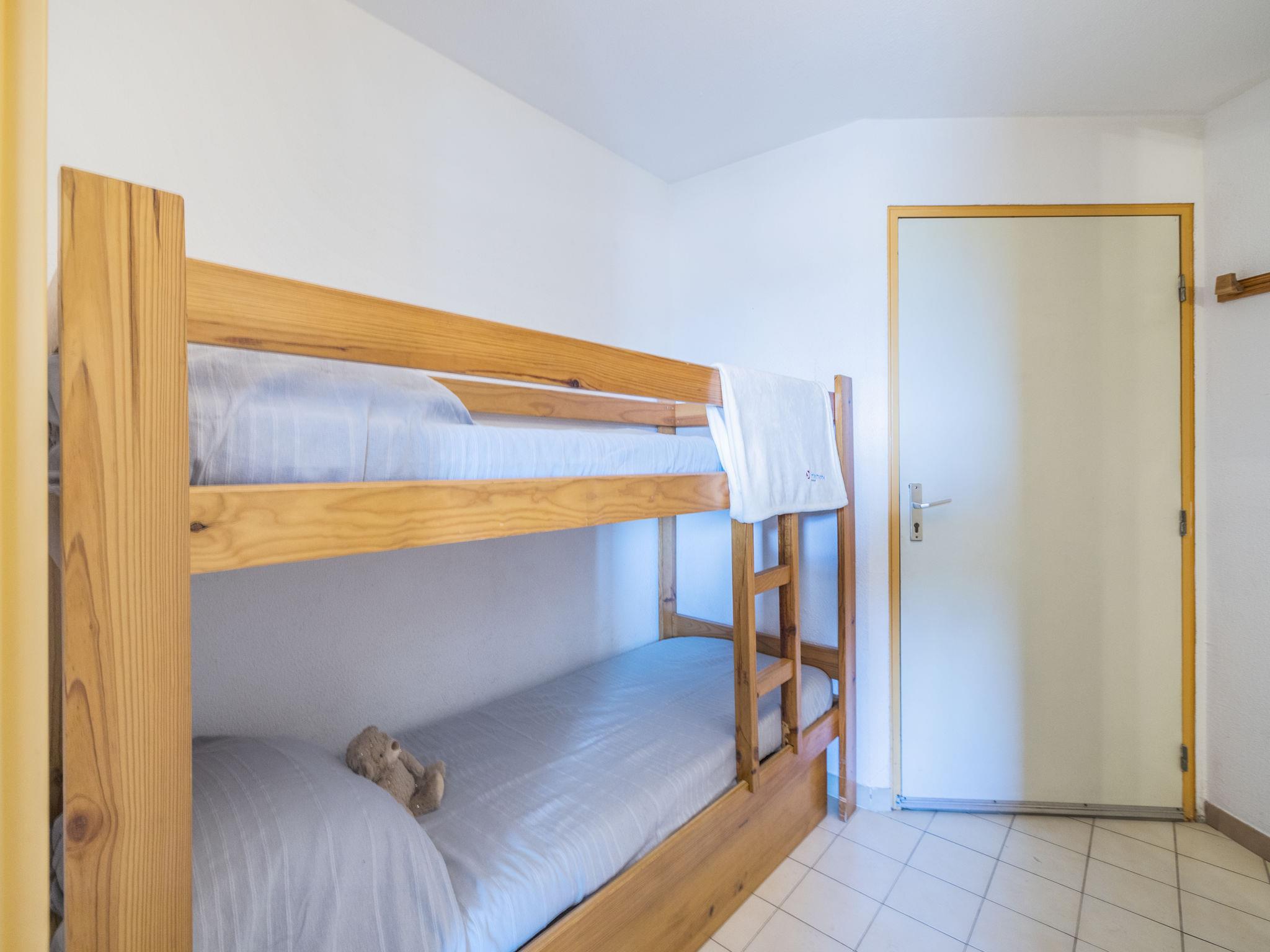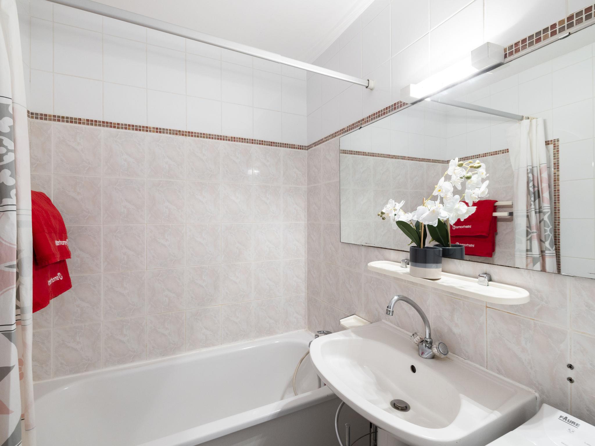 2-room apartment 28 m2 on 3rd floor. Living/dining room with TV (flat screen). Exit to the balcony. 1 small room with 1 french bed (140 cm, length 190 cm). Entrance hall with 1 x 2 bunk beds (70 cm, length 190 cm). Kitchenette (3 hot plates, microwave, electric coffee machine). Bathroom, sep. WC. Electric heating. Balcony, south-west facing position. Balcony furniture. View of the mountains. Facilities: washing machine. Internet (WiFi, extra). Please note: smoke alarm.