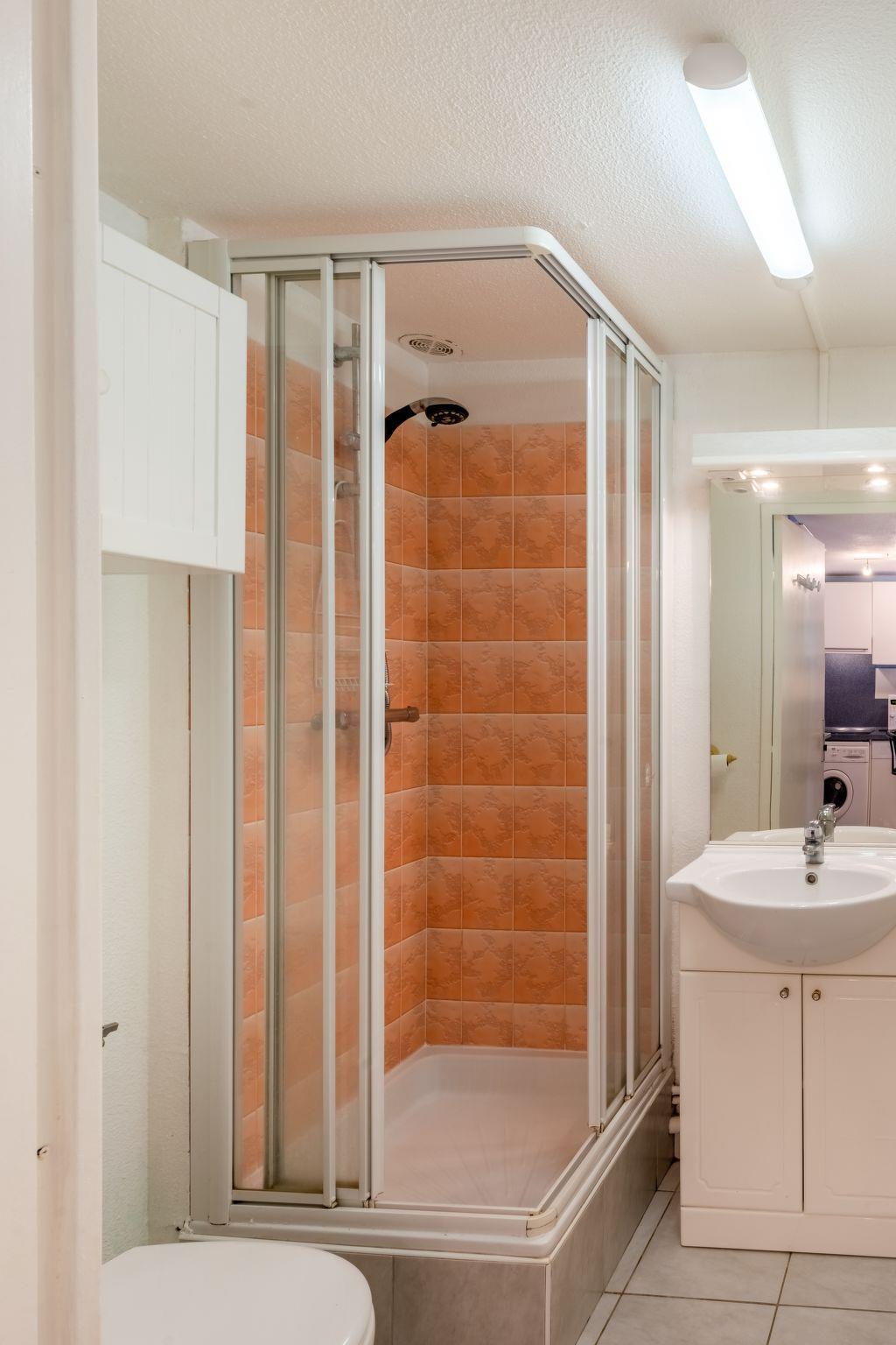 3-room terraced house 40 m2 on 2 levels. Practical and beautiful furnishings: living/dining room with TV (flat screen), air conditioning. Exit to the loggia. 1 room with 1 french bed (140 cm, length 190 cm). Kitchenette (dishwasher, 3 induction hot plates, toaster, microwave, freezer, electric coffee machine, combination microwave). Shower/WC. Upper floor: (steep stair), 1 room with 1 french bed (140 cm, length 190 cm), air conditioning. Electric barbecue, covered balcony. Facilities: washing machine. Internet (WiFi, free). Please note: smoke alarm.
