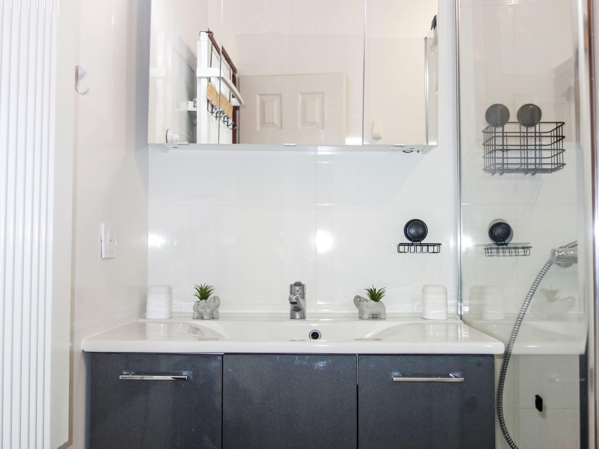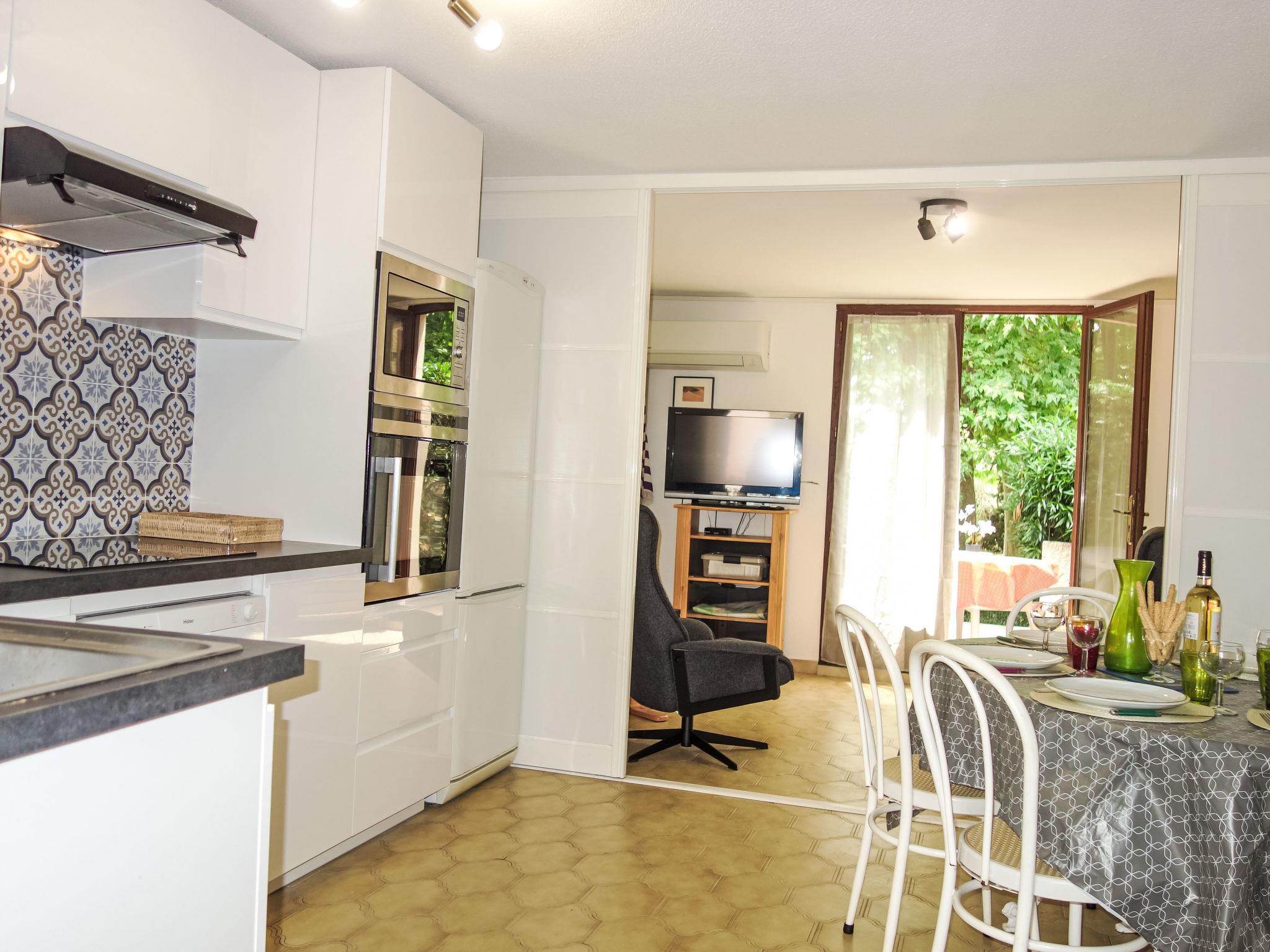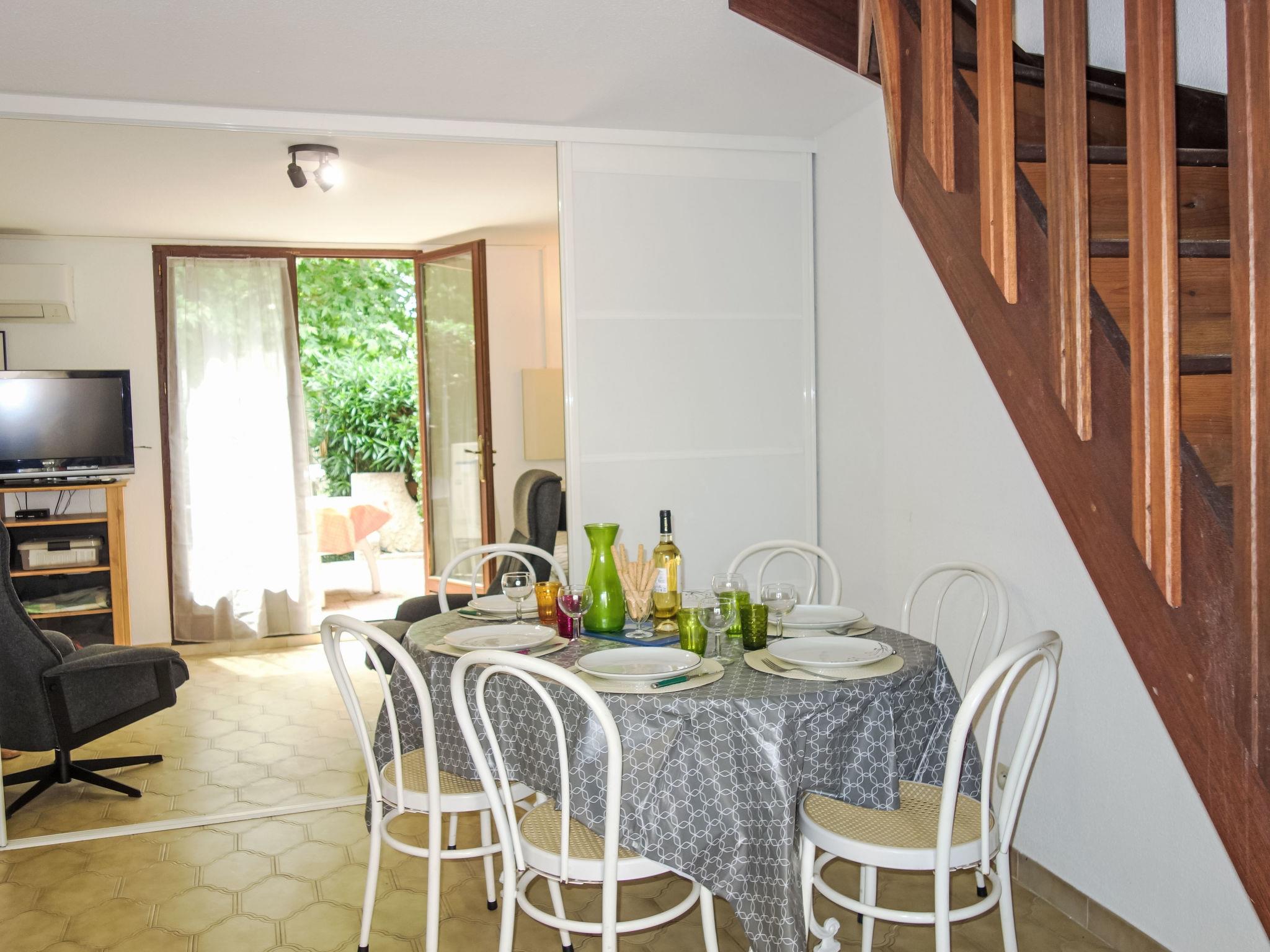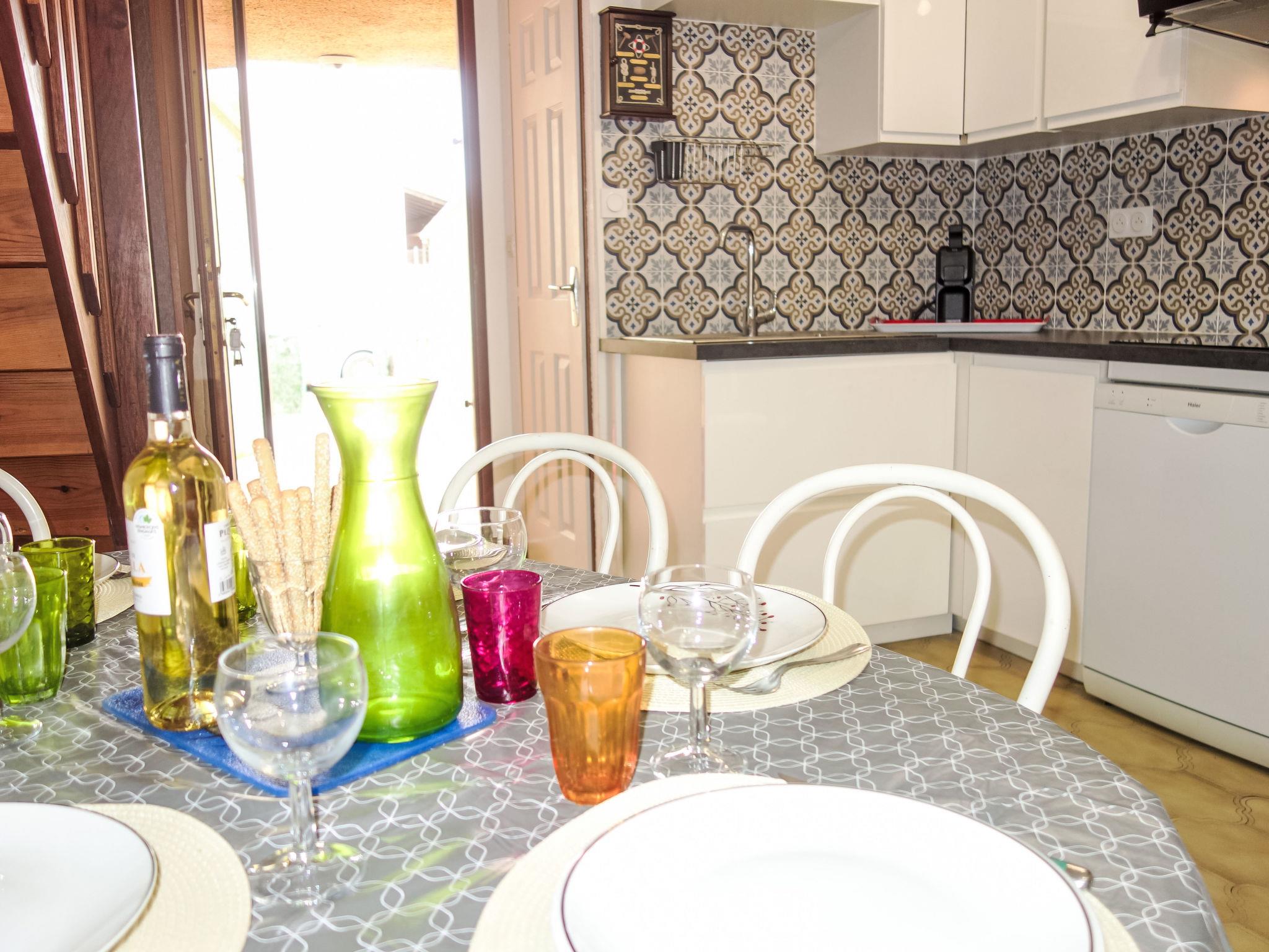 3-room terraced house 50 m2 on 2 levels. Living/dining room with 1 pull-out bed (2 pers. 2 x 80 cm, length 200 cm), TV and air conditioning. Exit to the terrace. Kitchenette (4 hot plates, oven, dishwasher, freezer, electric coffee machine). Sep. WC. Upper floor: 1 room with 1 french bed (160 cm, length 200 cm), air conditioning. Exit to the balcony. 1 room with 2 beds (90 cm, length 190 cm), air conditioning. Shower. Terrace 25 m2, south facing position. Terrace furniture, barbecue. Facilities: washing machine. Internet (WiFi, extra). Please note: smoke alarm. 58