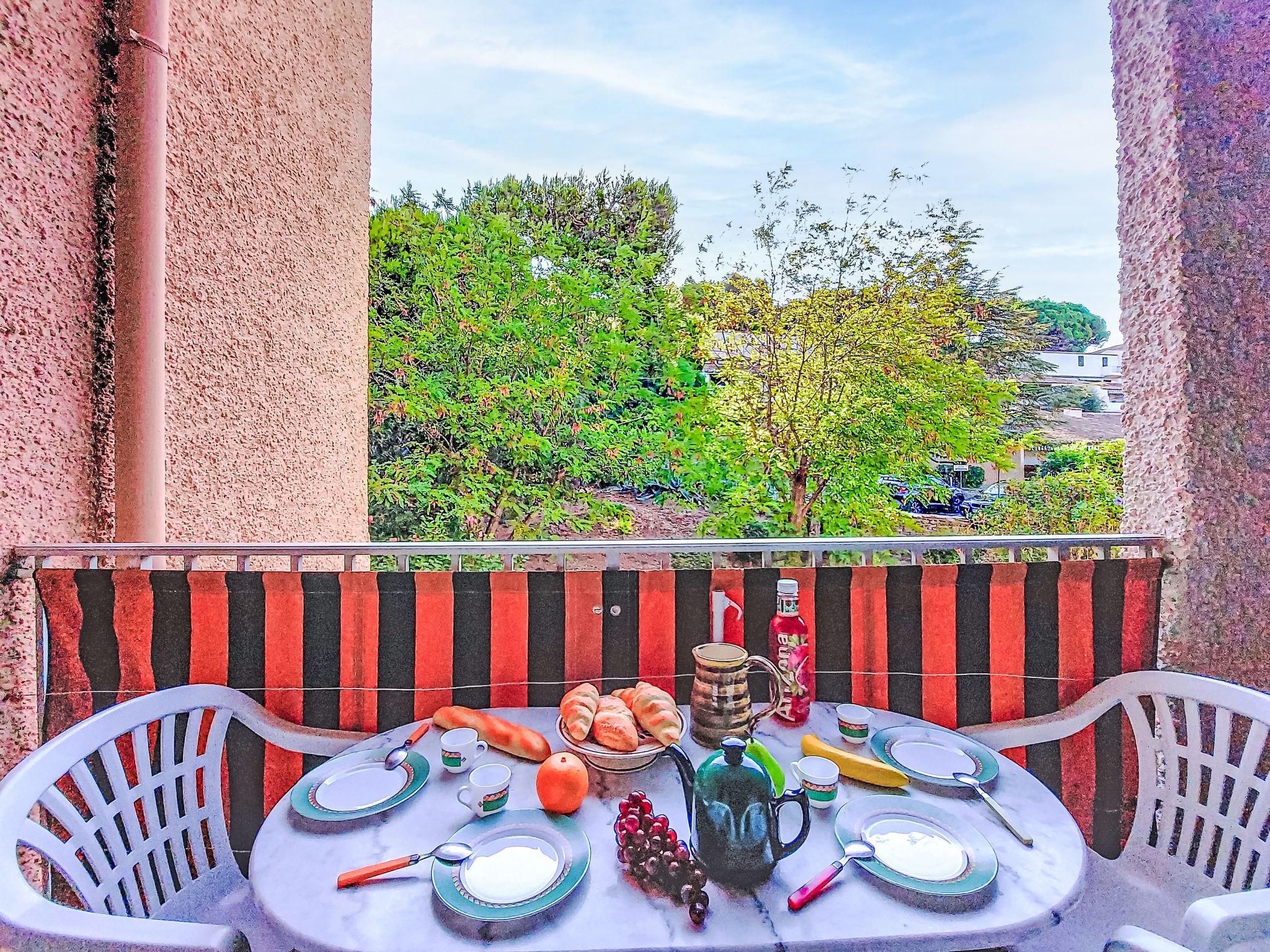 1-room apartment 22 m2 on 1st floor. Living/dining room with 1 double sofabed (140 cm, length 190 cm), TV. Exit to the terrace. Entrance hall, without window with 1 x 2 bunk beds (80 cm, length 190 cm). Kitchenette (2 ceramic glass hob hotplates, toaster, kettle, microwave, electric coffee machine, Capsules for coffee machine (Senséo) extra). Shower/WC. Electric heating. Terrace 5 m2, roofed, east facing position. Terrace furniture. View of the garden. Facilities: Internet (WiFi, extra). Please note: fridge without freezer. Maximum 1 pet/ dog allowed. TV only FR. Smoke alarm. Property for a maximum of 4 adults and a baby. 83112 000278 6H
