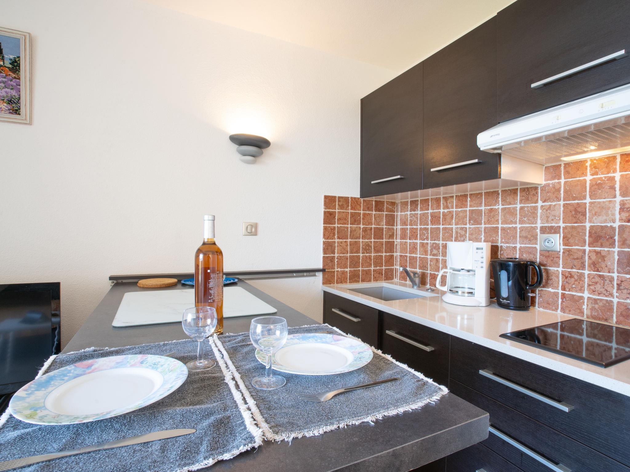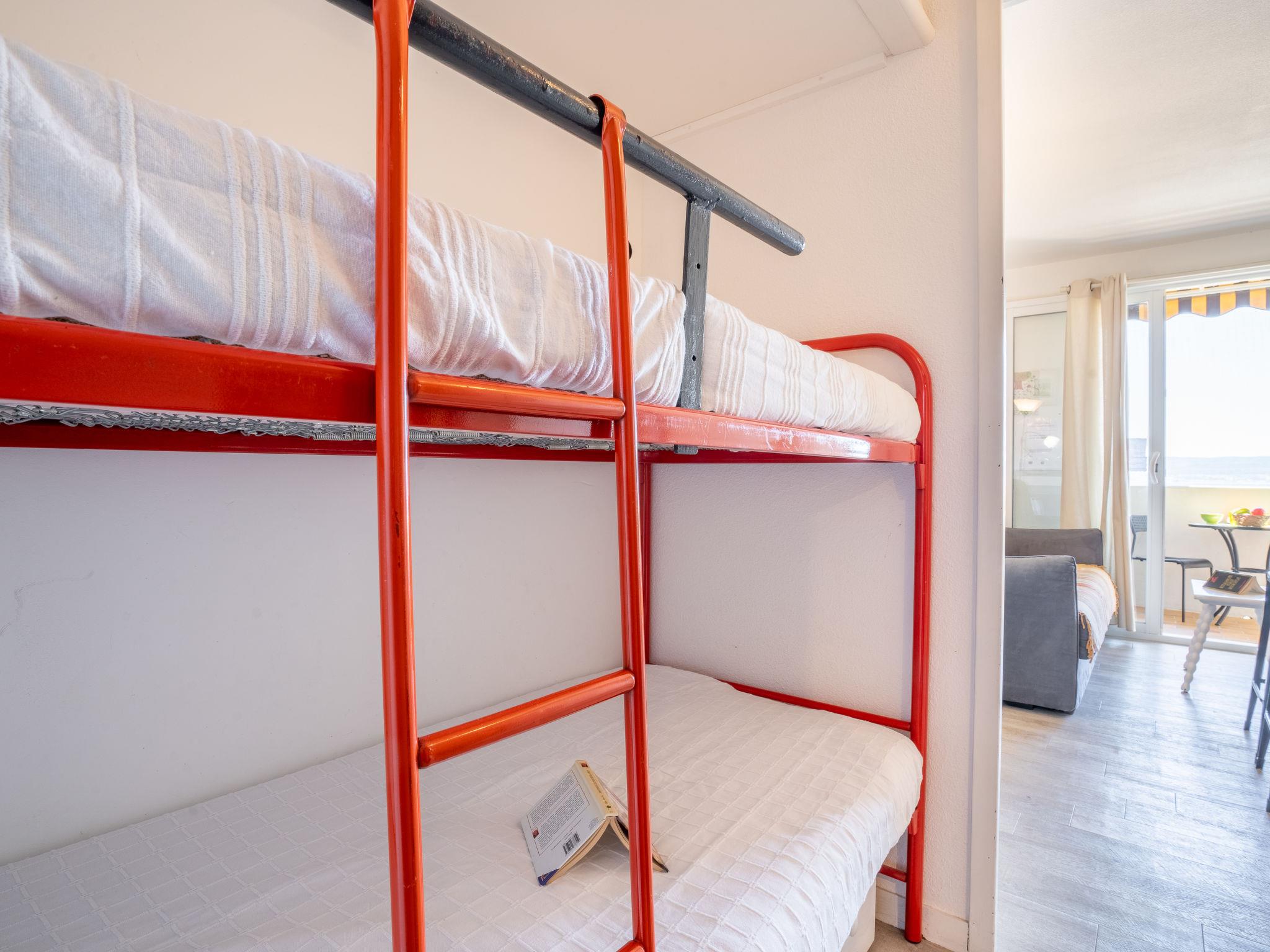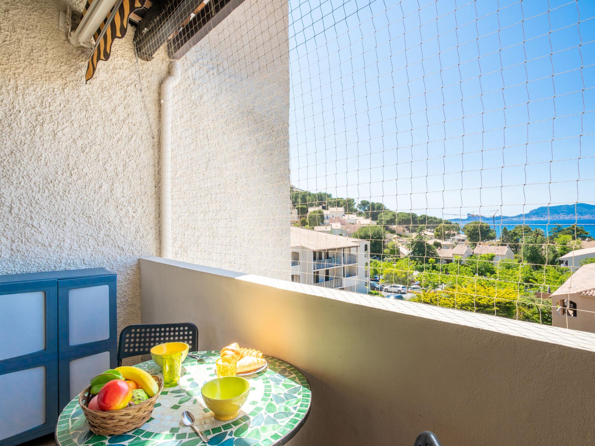 1-room apartment 20 m2 on 2nd floor. Bright, fully renovated in 2018, comfortable and beautiful furnishings: entrance hall, without window with 1 x 2 bunk beds (80 cm, length 190 cm). Living/dining room with 1 double sofabed (140 cm, length 190 cm), TV. Exit to the terrace. Kitchenette (dishwasher, 2 induction hot plates, kettle, microwave, electric coffee machine). Shower/WC. Electric heating. Terrace 6 m2, roofed, south-west facing position. Terrace furniture. View of the sea. Facilities: Internet (WiFi, extra). Parking space n 811. Please note: TV only FR. Smoke alarm. 83112 000212 W1