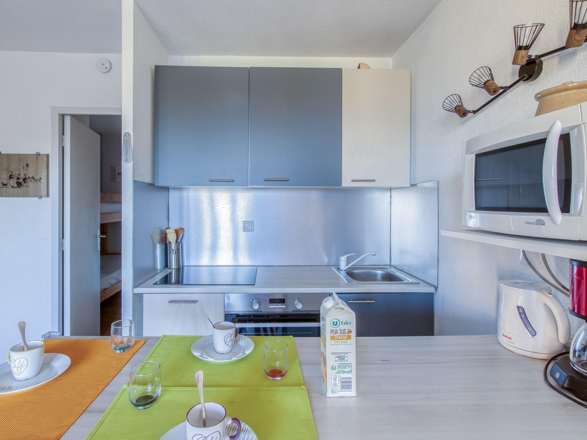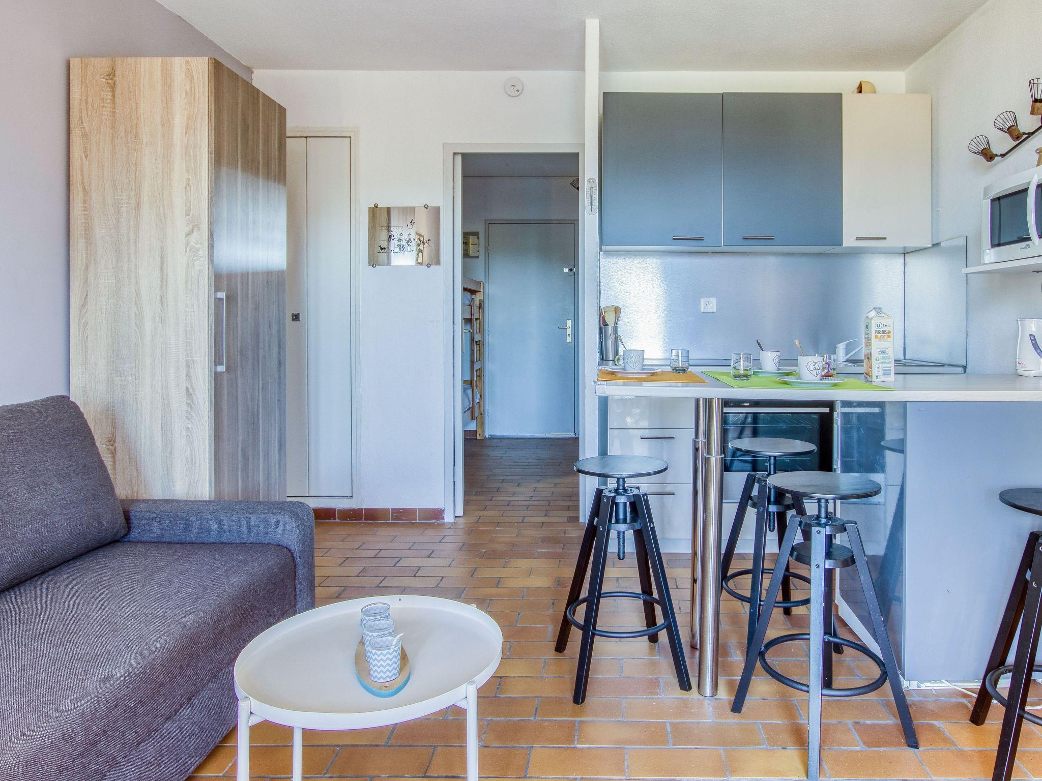 1-room studio 23 m2 on 2nd floor. Object suitable for 2 adults + 2 children. Comfortable and beautiful furnishings: entrance hall, without window with 1 x 2 bunk beds (70 cm, length 190 cm). Living/dining room with 1 double sofabed (1 x 140 cm, length 190 cm), TV (flat screen). Exit to the terrace. Kitchenette (oven, 3 ceramic glass hob hotplates, toaster, kettle, microwave, electric coffee machine). Shower, sep. WC. Electric heating. Terrace 5 m2, west facing position. Terrace furniture. View of the sea. Facilities: washing machine. Internet (WiFi, extra). Please note: TV only FR. Smoke alarm. Please note: access to the shower is via a step of approximately 38cm. Offer by a private individual according to Art. 155, IV of CGI. 831120014458G