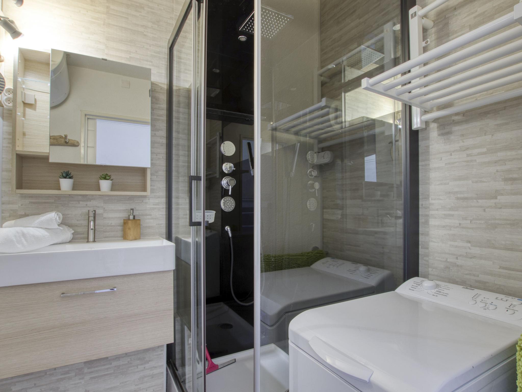 2-room apartment 32 m2 on 2nd floor. Renovated in 2021, comfortable and beautiful furnishings: entrance hall, without window with 1 x 2 bunk beds (80 cm, length 190 cm). Living room with TV (flat screen), air conditioning. Exit to the terrace. 1 room with 1 french bed (140 cm, length 190 cm). Exit to the terrace. Kitchenette (dishwasher, 2 induction hot plates, toaster, kettle, microwave, electric coffee machine, Capsules for coffee machine (Dolce Gusto) extra). Shower/WC. Floor heating. Terrace 11 m2, west facing position. Terrace furniture, electric barbecue. Beautiful view of the sea. Facilities: washing machine. Internet (WiFi, free). Garage space n 993 (petite voiture) (1 car), height 183 cm, width 220 cm. Please note: non-smokers only. Maximum 1 pet/ dog allowed. TV only FR. Smoke alarm. Offer by a private individual according to Art. 155, IV of CGI. 83112000713FW