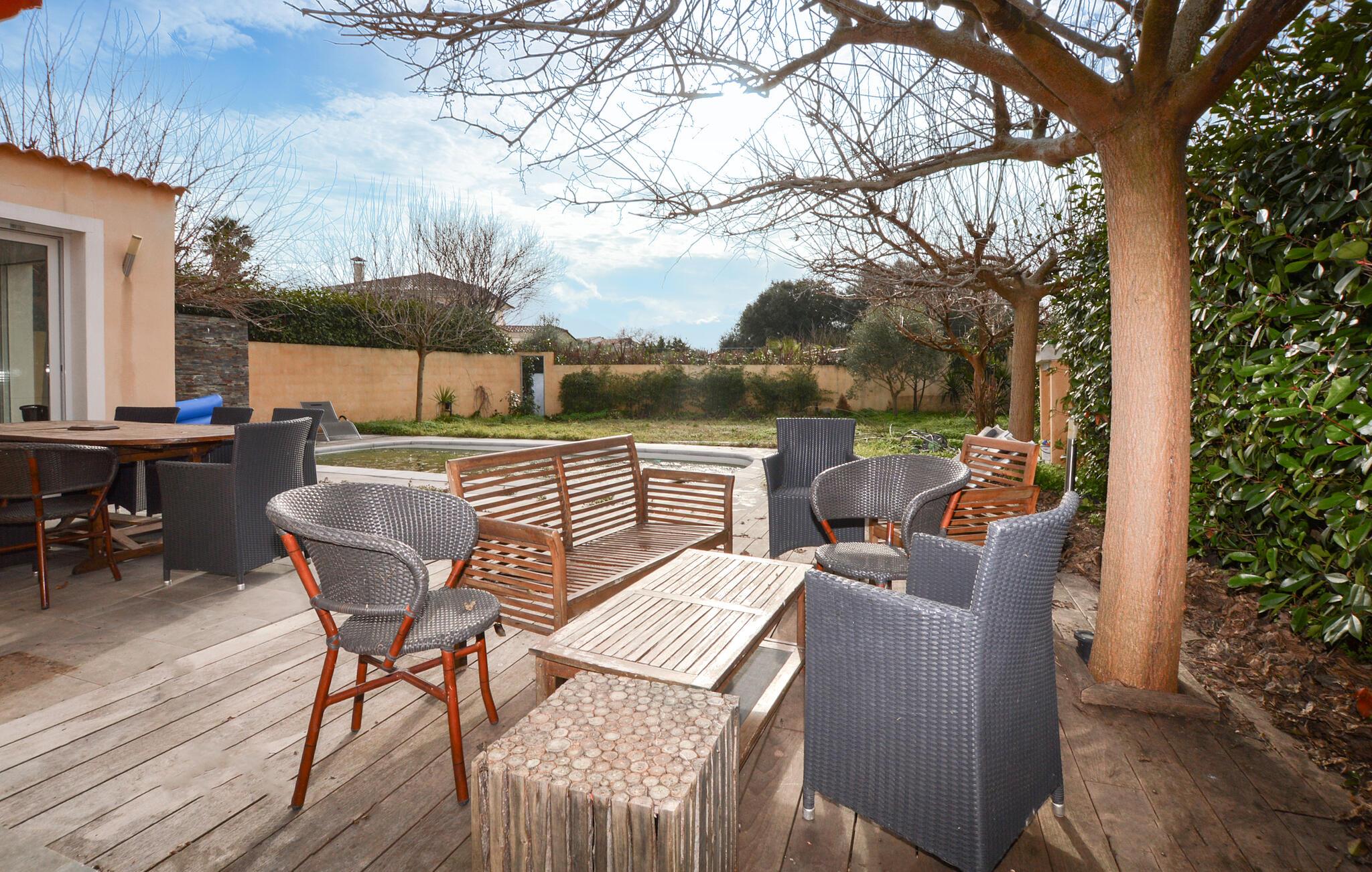Svøm i den private pool, omgivet af en velholdt terrasse. Slap af i liggestolene og nyd roen på den afsondrede grund. find sammen omkring spisebordet uden for huset, og tilbring lange aftener udendørs. Brug terrassen til samtale, læsning eller blot afslapning.