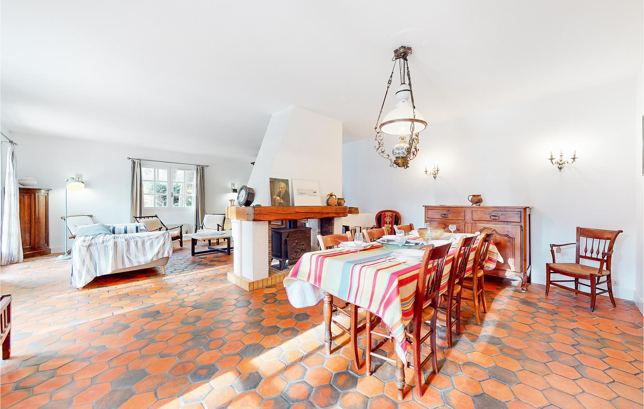 I dette charmerende hus får I den ideelle bolig til en ferie med jeres udvidede familie eller en gruppe venner. Her venter jer en indbydende indretning og en fantastisk atmosfære i de store rum. I vil hurtigt føle jer hjemme, og om aftenen kan I sludre til langt ud på natten foran brændeovnen. Fra stuen kan I gå ud på den store terrasse, der er omkranset af høje træer og skaber et privat og omgængeligt område, hvor I kan spille spil og bare slappe af sammen.