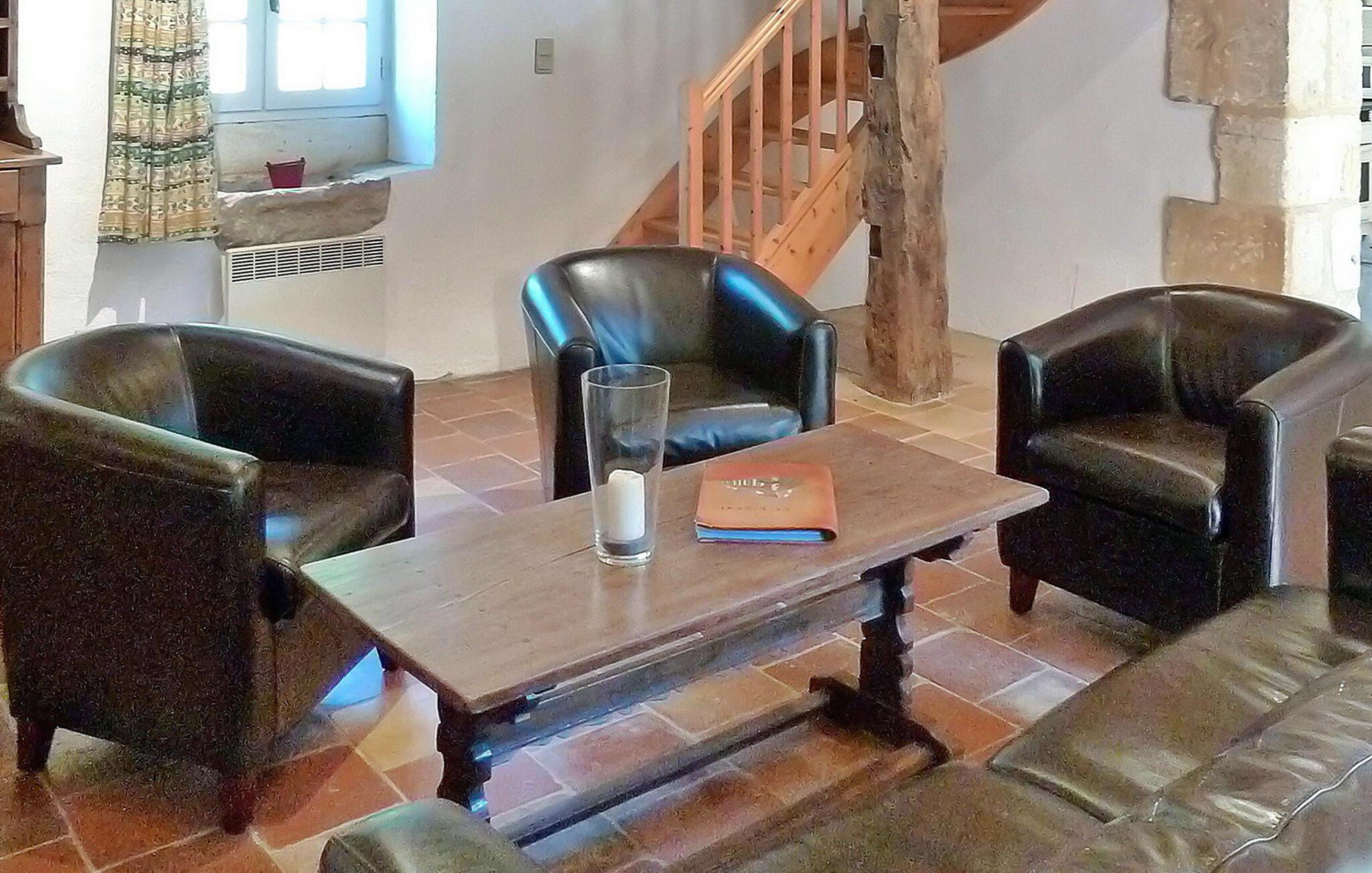 Beliggende i det fredfyldte Perigord-landskab tilbyder dette charmerende stenbondehus et idyllisk feriested. Stuehuset emmer af rustik charme og komfort. Stueetagen byder dig velkommen med et indbydende opholdsrum, et veludstyret køkken og et hyggeligt soveværelse. Ovenpå kan du opdage yderligere tre soveværelser og et åbent soveværelse, alle med komfortable møbler. Udenfor kan du udforske maleriske landområder, herunder en stenterrasse til udendørs spisning og en privat pool indhegnet for sikkerhed. Gæsterne kan nyde en gratis halv stere træ til ovnen om vinteren og afslappede gåture på tværs af 600 hektar skov og damme. Bemærk at tre andre selvstændige huse deler ejendommen. Ekstra tjenester, såsom brunch ved dammene og morgenmad, er tilgængelige mod et ekstra gebyr. Wi-Fi-adgang tilbydes i domænets reception. Stuehuset er beliggende på landet, nærmeste butikker i SAINT GEORGES DE MONTCLAR (2 km). Nyd din ferie i en lade i Dordogne i Quercy - Périgord.