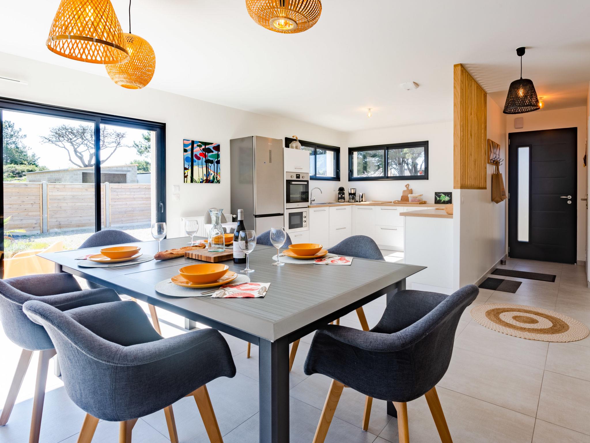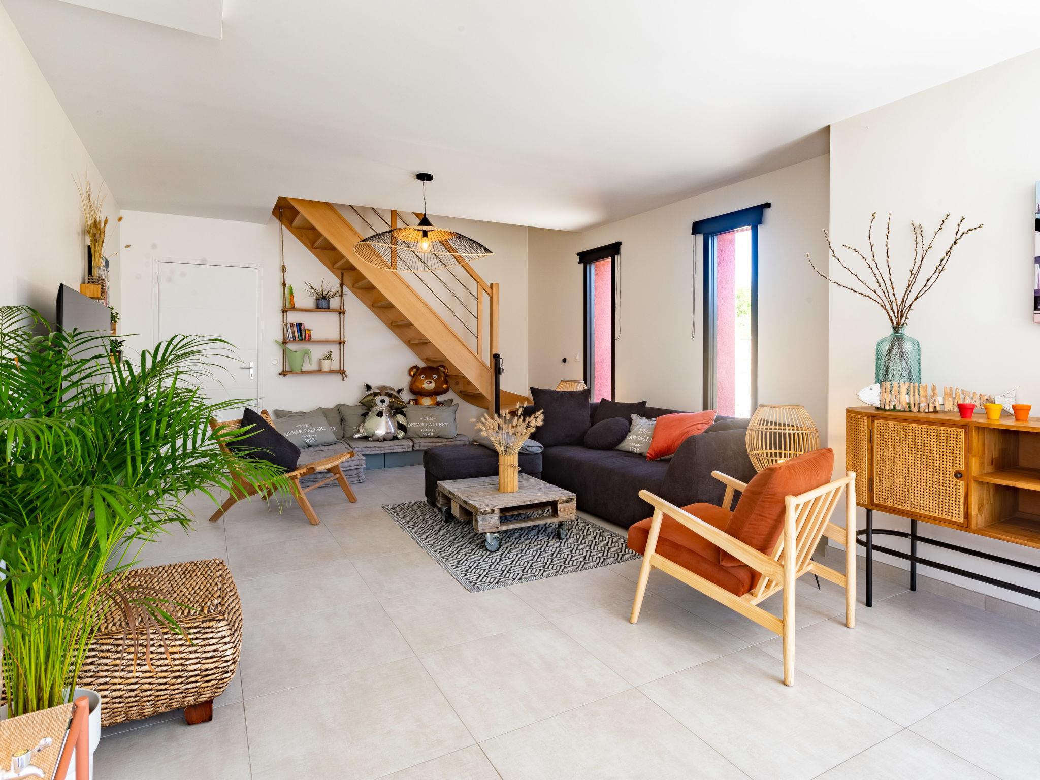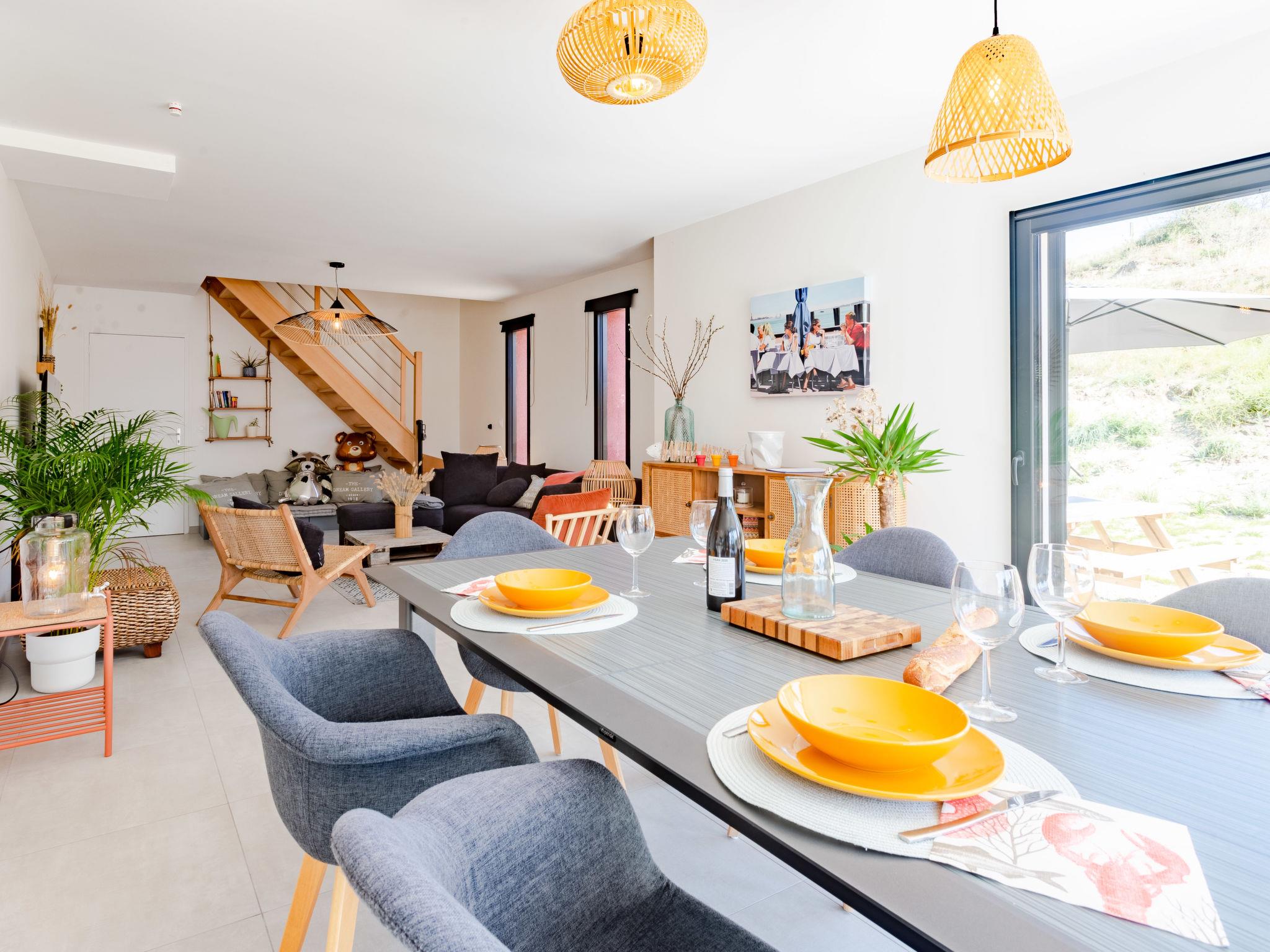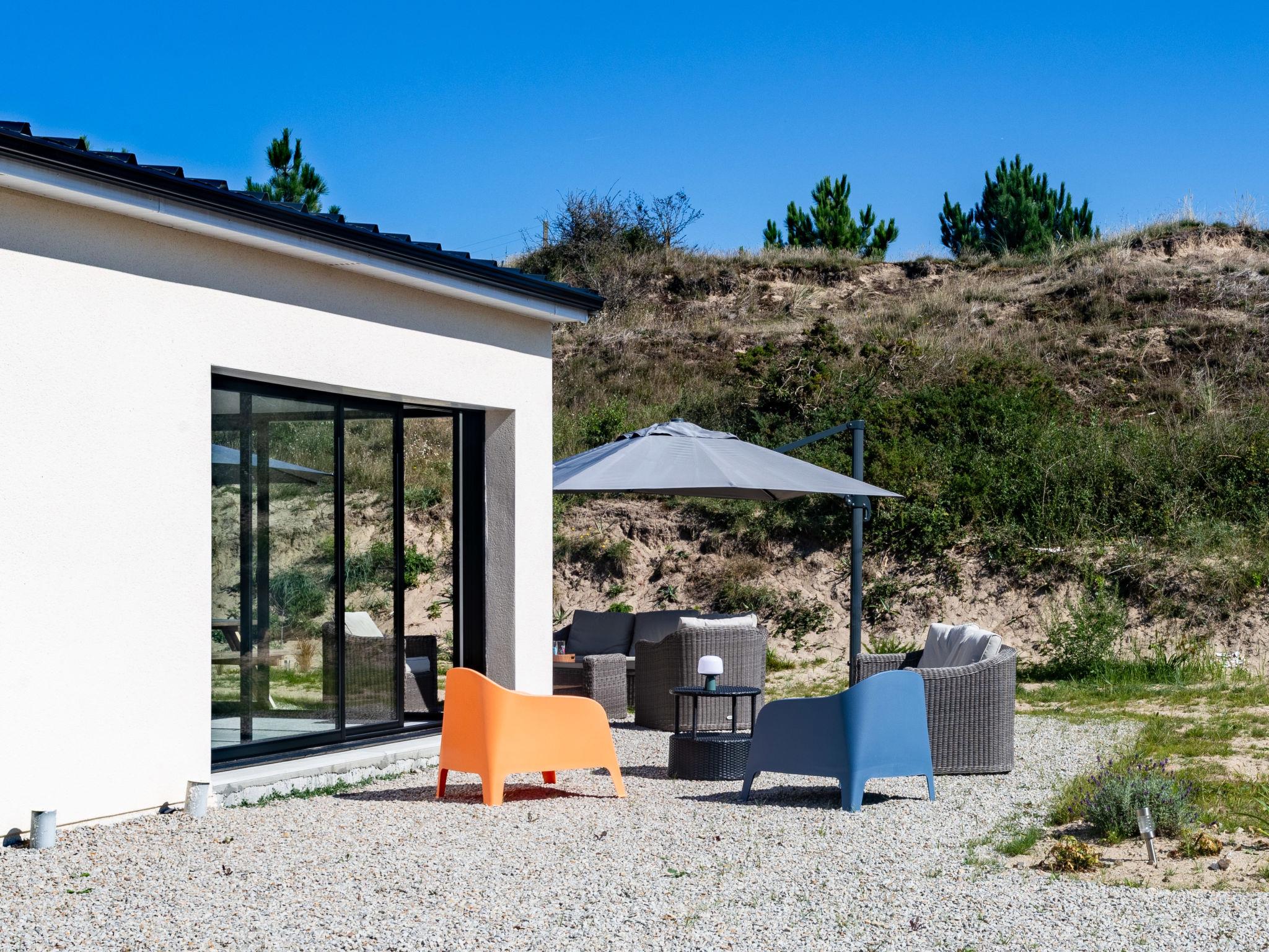 "La Dune", 3-room house 100 m2. Beautiful and modern furnishings: living/dining room. Exit to the garden, to the terrace. Lounge. Open kitchen (oven, dishwasher, 1 induction hot plates, 4 gas rings, toaster, kettle, microwave, electric coffee machine, Capsules for coffee machine (Tassimo)). Sep. WC. Underfloor heating. Upper floor: 1 room with 1 french bed (1 x 140 cm, length 190 cm). 1 room with 1 french bed (160 cm, length 200 cm). Shower/WC. Terrace furniture, barbecue, deck chairs (4). Facilities: washing machine, dryer, baby cot for up to 2 year olds, hair dryer. Internet (WiFi, free). Parking (fenced 2 cars), garage. Please note: smoke alarm. Offer by a private individual according to Art. 155, IV of CGI. FR68770