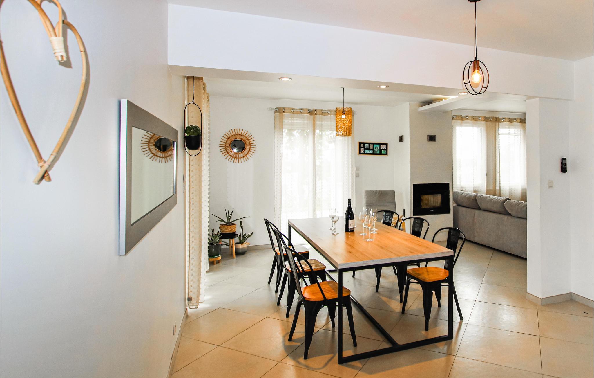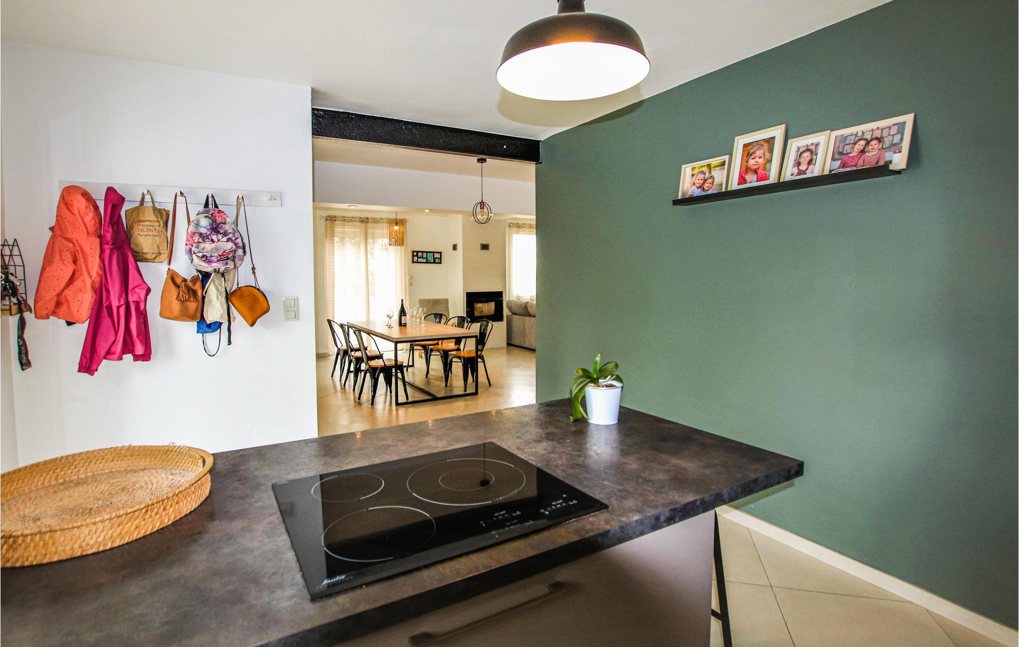 Det enkle interiør skaber en behagelig atmosfære, hvor det er nemt at slappe af. Kvaliteten af ??materialerne og lysstyrken bidrager til velvære, så snart I træder ind ad døren. Den store solterrasse og sommerkøkkenet med grill lægger op til at tilbringe hyggelige timer med familie eller venner i Provences skønne klima. I kan også se frem til den indbydende pool med solterrasse. Der er også gode rammer til jeres børn, som finder en privat legeplads i haven.