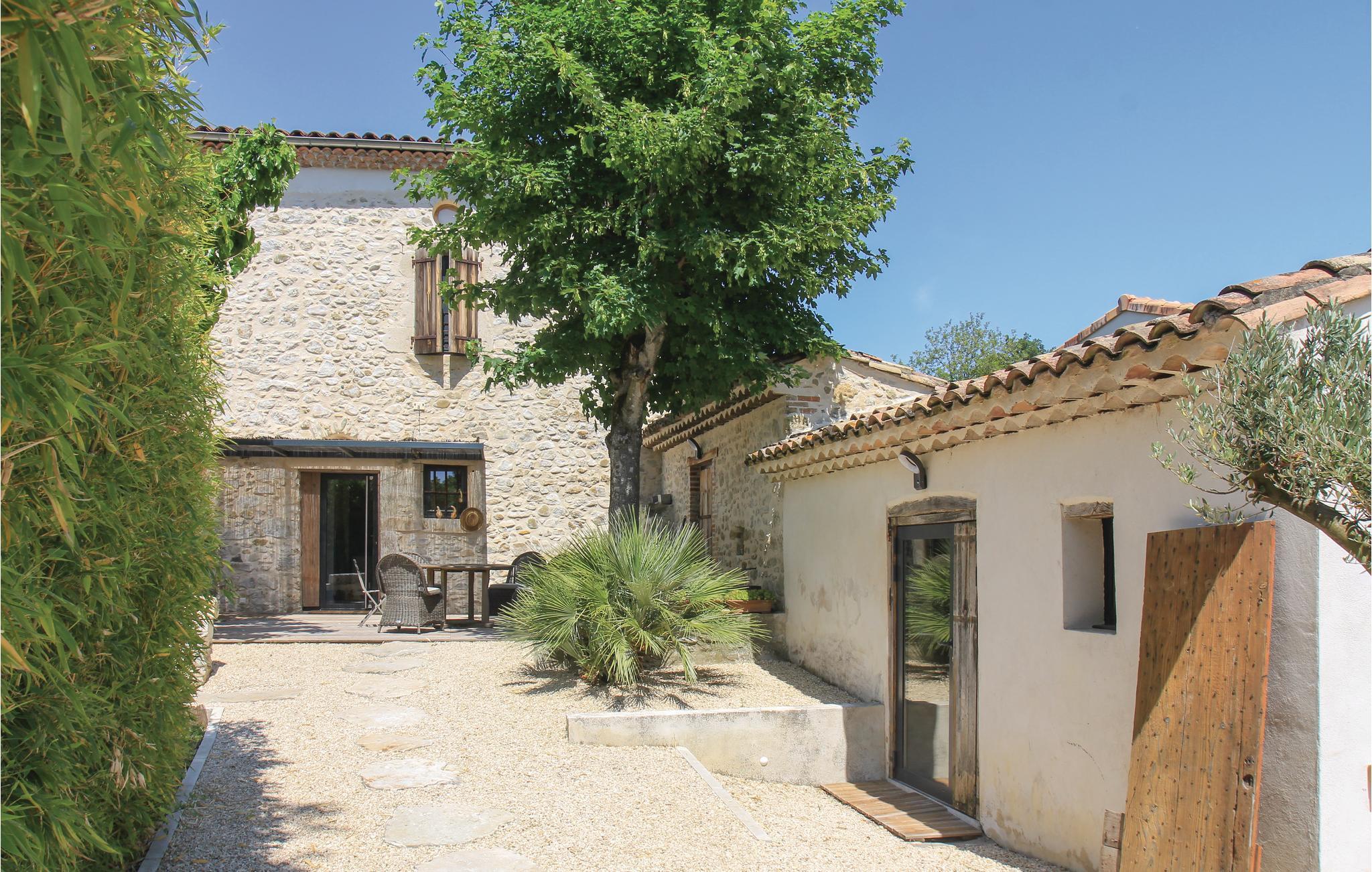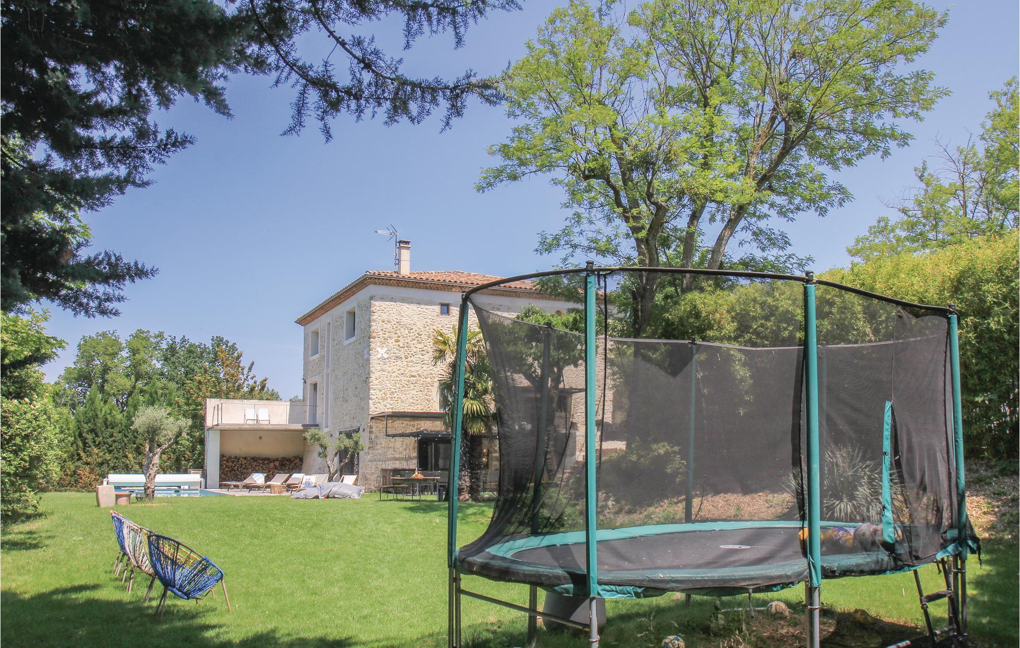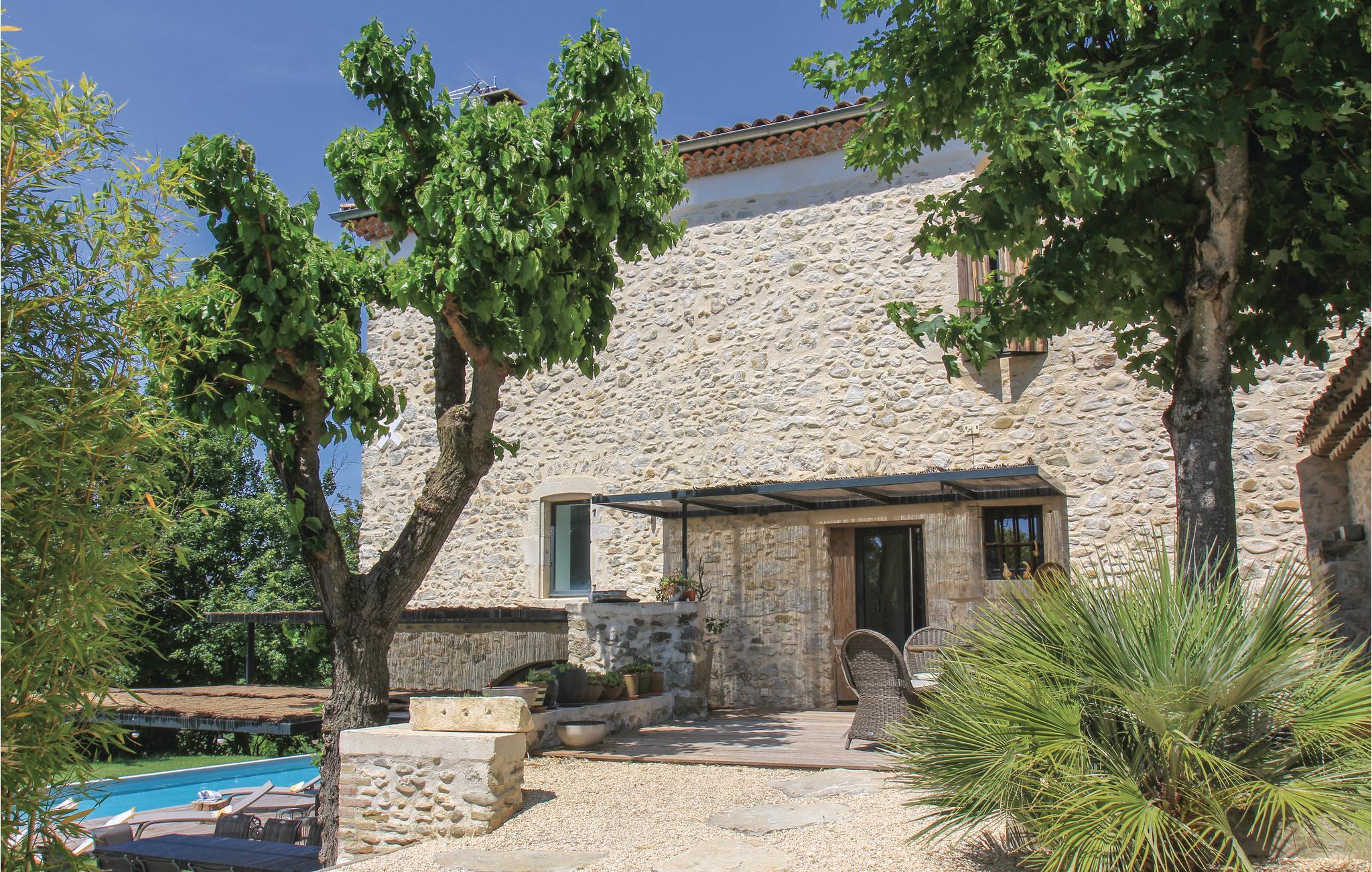 Her er udsigt til masser af badesjov. Det charmerende feriehus bygget i sten er nemlig udstyrret med en afskærmet opvarmet pool. Feriehuset ligger desuden kun 12 km fra Montélimar, og udmærker sig ved en dejlig grøn have og en stor terrasse med grill og 'sommerkøkken' hvor I kan tilberede jeres måltider under åben himmel. Indenfor kan I se frem til en original byggestil og afslappet atmosfære, hvor I nok skal kunne slappe af. For dem der efterspørger privatliv ligger soveværelset nr. 5 separat på den ene side af terrassen. Det har egen badeværelse med WC.