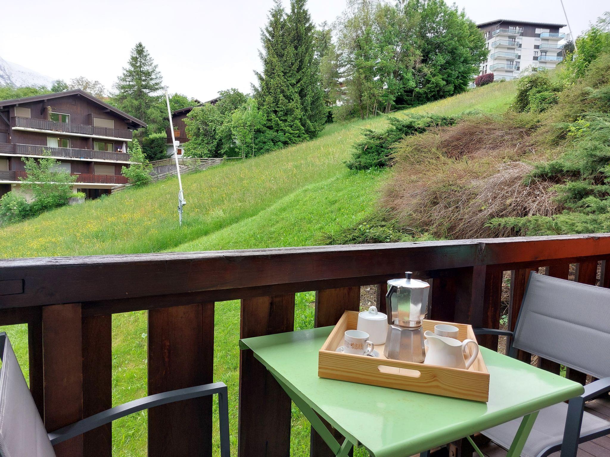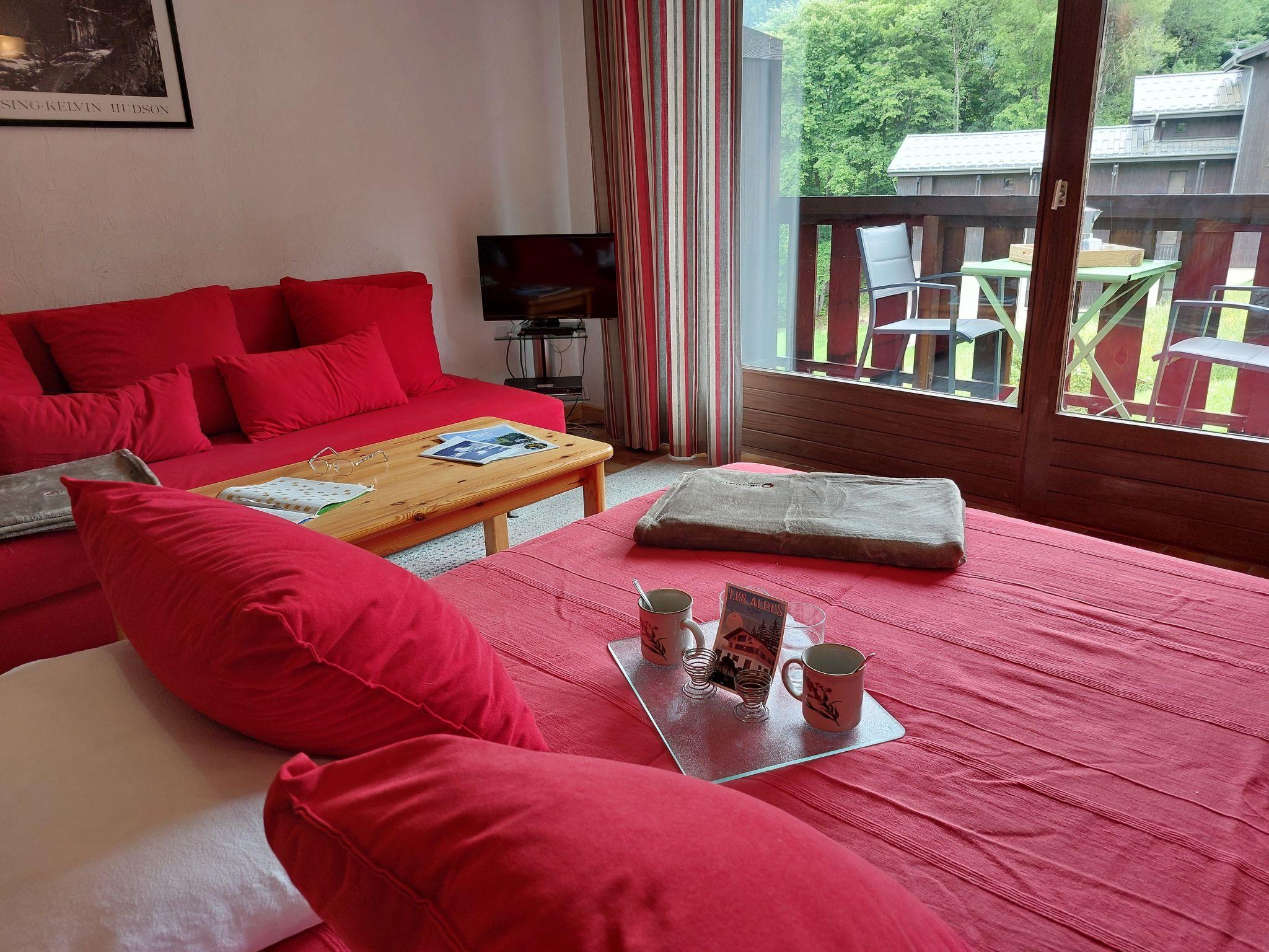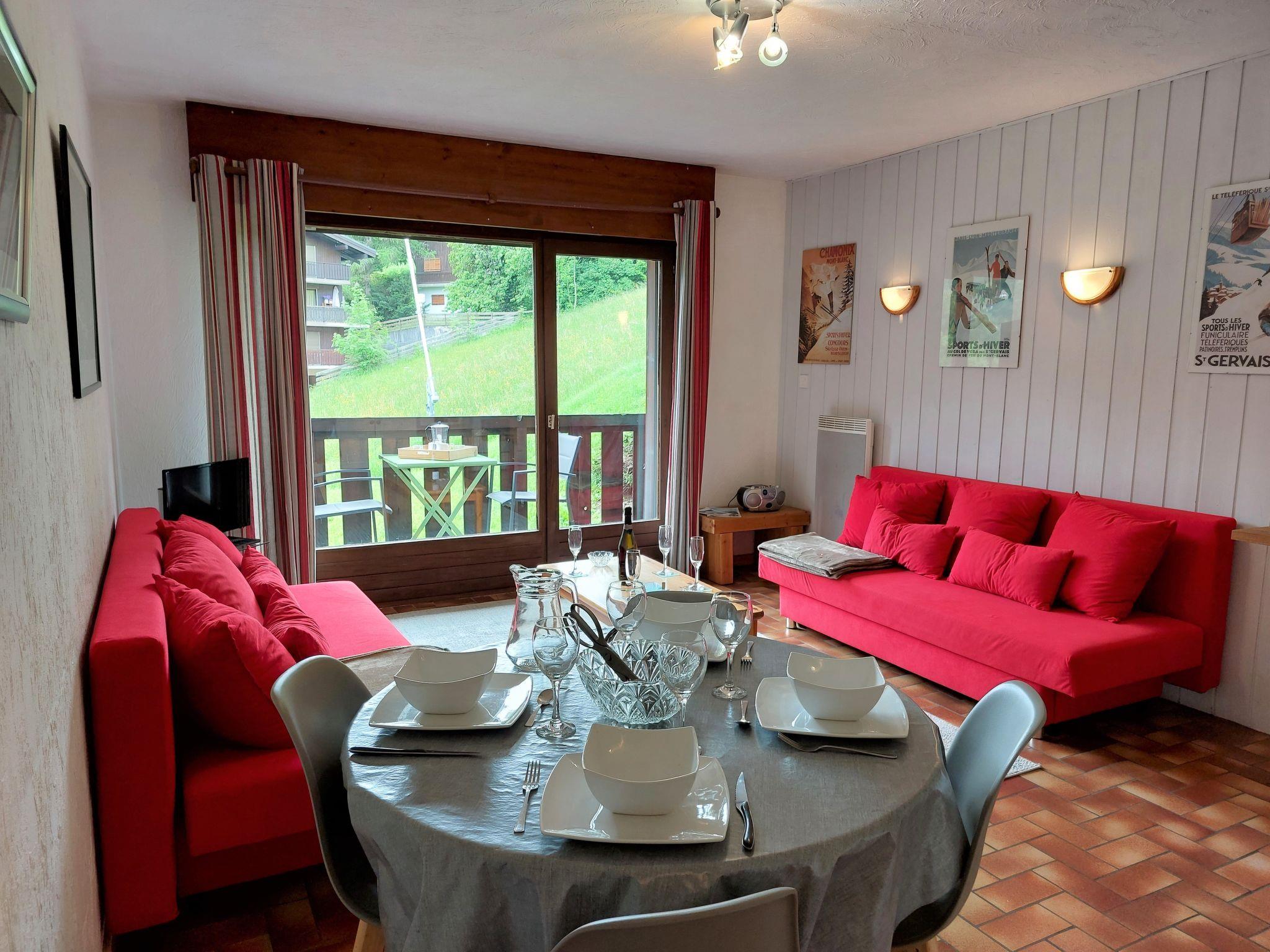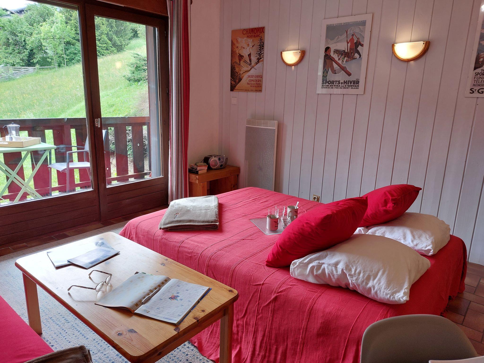 "Les G'rets", 2-room apartment 42 m2, on the ground floor. Entrance hall. Living/dining room with 1 double sofabed (140 cm), TV, flat screen, radio, CD-player and DVD. 1 room with 2 beds (80 cm). Exit to the terrace, south facing position and east facing position. Kitchenette (4 hot plates, oven, toaster, kettle, microwave, electric coffee machine). Bathroom, sep. WC. Electric heating. Balcony 4 m2, east facing position. Balcony furniture. Very beautiful panoramic view of the mountains and the resort. Facilities: washing machine. Internet (WiFi, extra). Parking. Please note: non-smokers only. TV only FR. Smoke alarm.