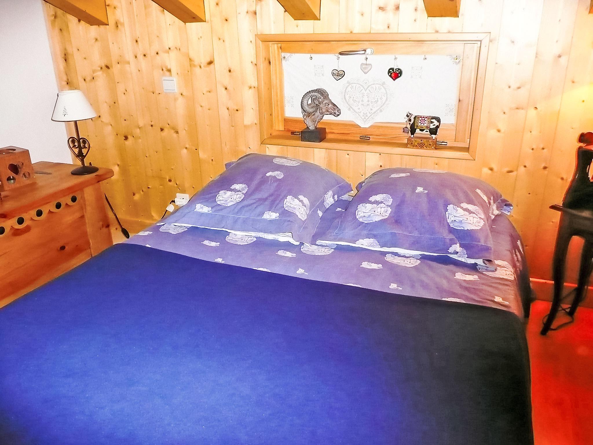 5-room chalet 130 m2 on 3 levels, south-east facing position. Comfortable and beautiful furnishings: living/dining room with TV, radio, CD-player and wood-burning stove. Exit to the terrace. Open kitchen (oven, dishwasher, 4 ceramic glass hob hotplates, toaster, kettle, microwave, electric coffee machine). Sep. WC. On the lower ground floor: 1 room with 1 x 2 bunk beds. 1 room with 1 french bed (1 x 140 cm). 1 room with 2 beds (80 cm). Bath/shower/WC. Upper floor: 1 room with 1 french bed (1 x 160 cm). Exit to the balcony. Shower/WC. Electric heating. Terrace 30 m2, south-east facing position. Terrace furniture, barbecue, deck chairs. Beautiful view of the mountains. Facilities: washing machine, iron, children's high chair, hair dryer. Internet (WiFi, free). Please note: suitable for families. Non-smokers only. TV only FR. Smoke alarm.