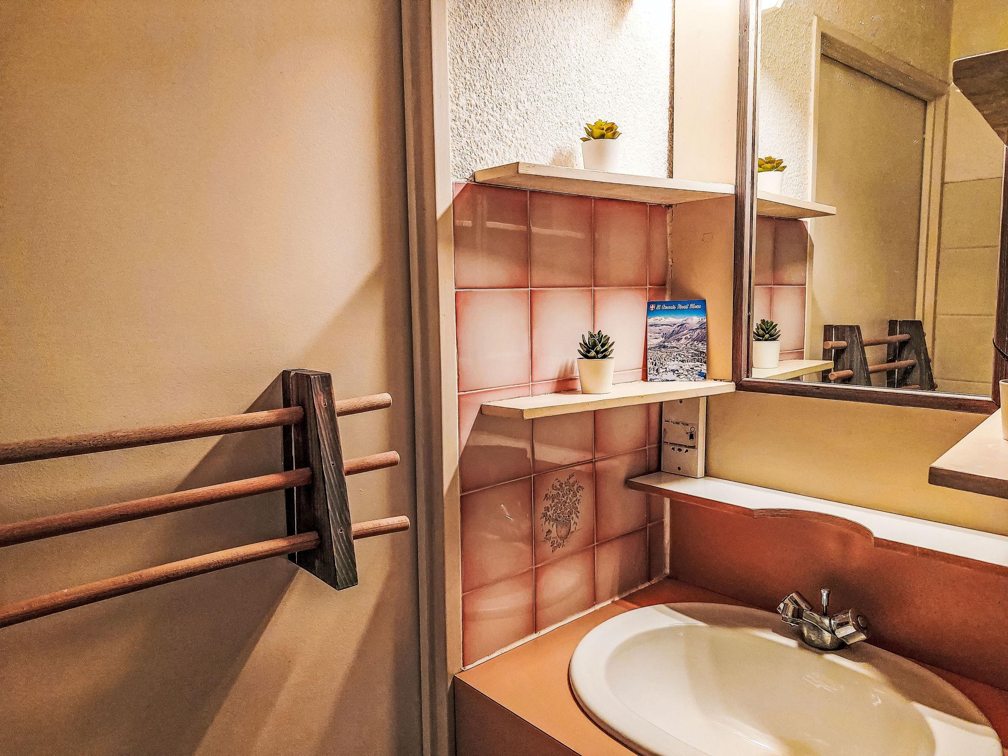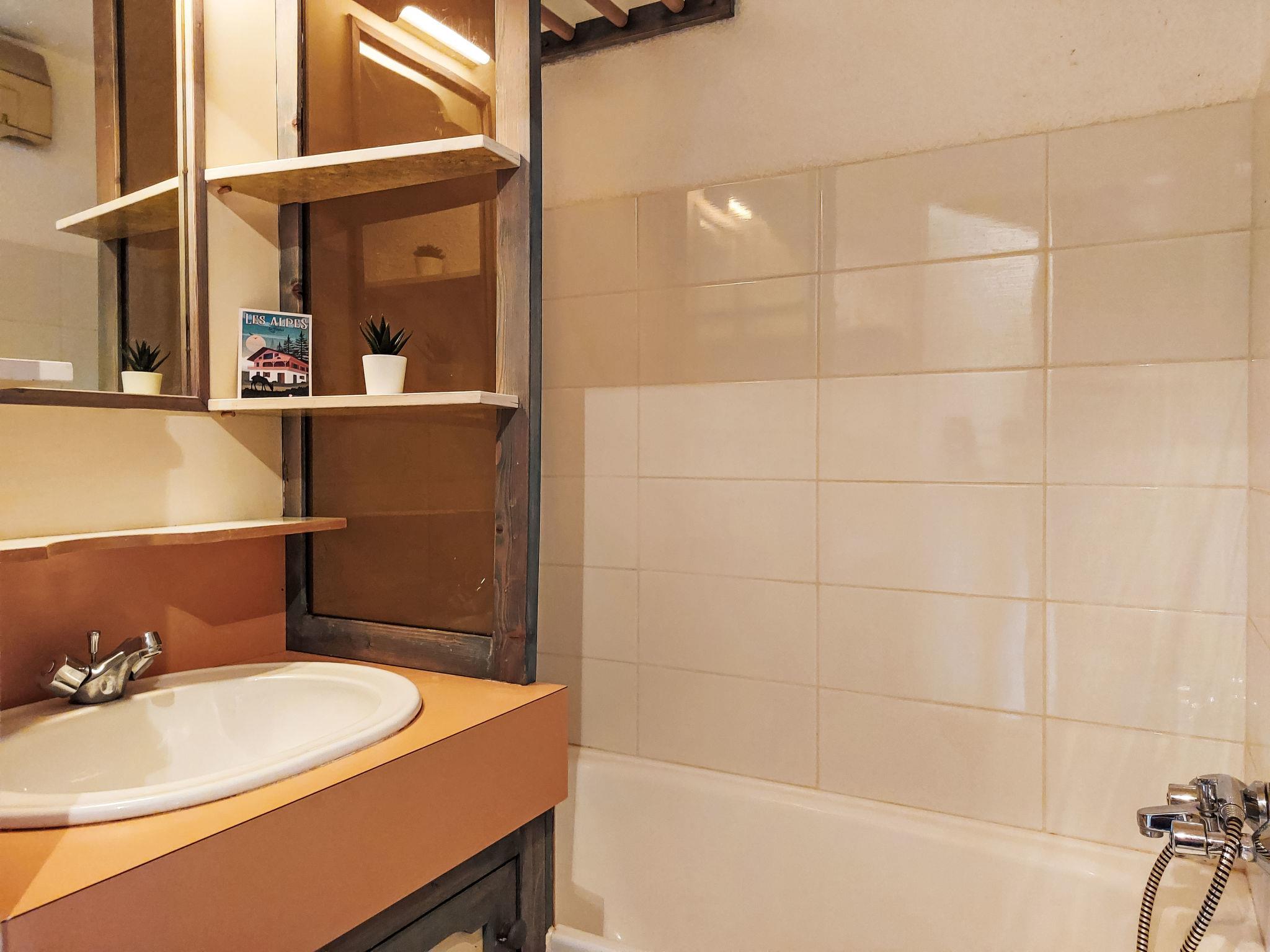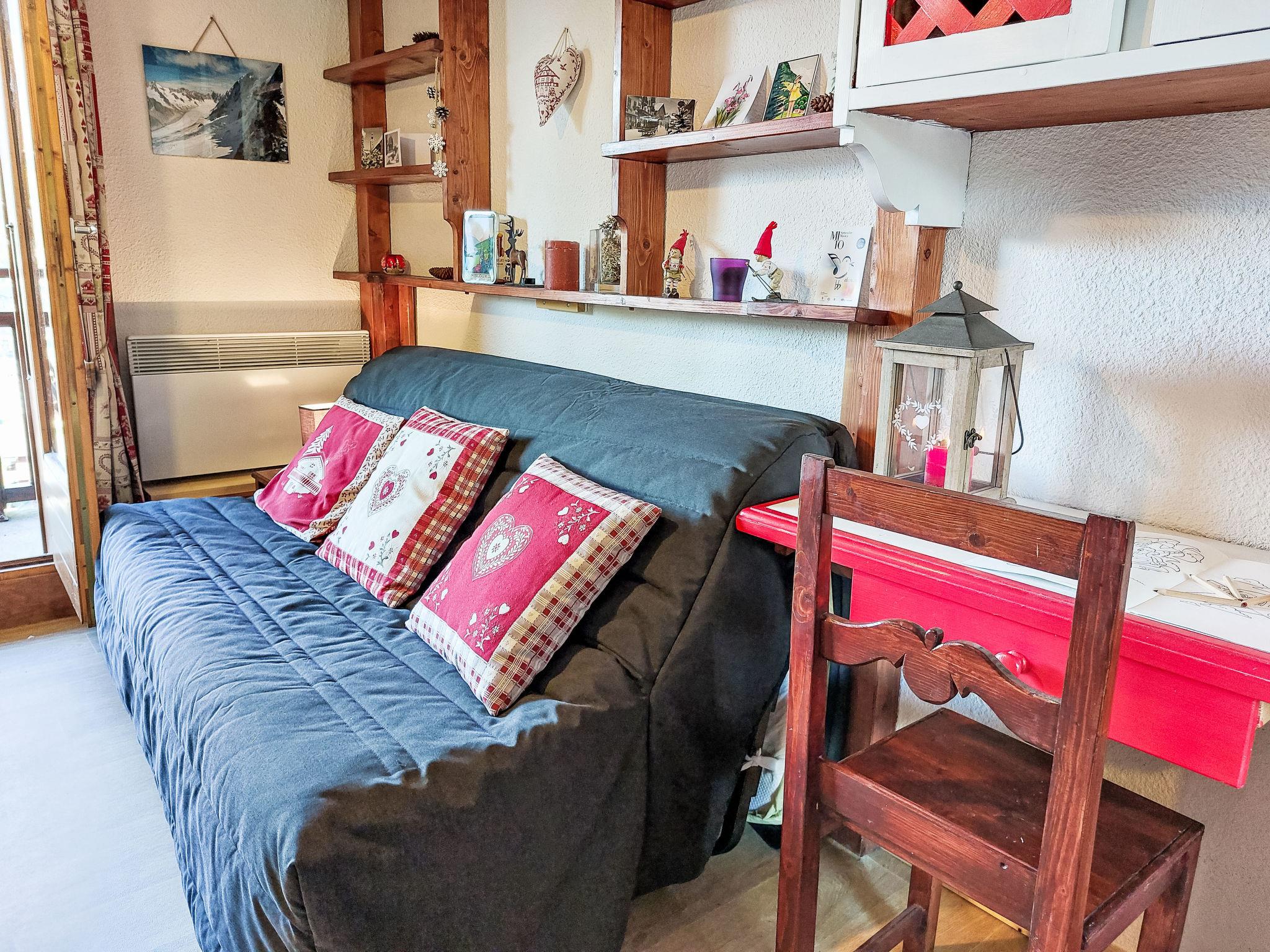 1-room studio 20 m2 on 1st floor. Entrance hall with 1 x 2 bunk beds (80 cm, length 190 cm). Living/dining room with 1 double sofabed (140 cm, length 190 cm). Kitchenette (2 hot plates, toaster, kettle, electric coffee machine, combination microwave). Bathroom, sep. WC. Electric heating. Small balcony 4 m2, east facing position. Beautiful view of the mountains. Facilities: Internet (WiFi, extra). Parking at 150 m. Please note: non-smokers only. 1 small pet/ dog allowed. TV only FR. Smoke alarm, no lift. Offer by a private individual according to Art. 155, IV of CGI.