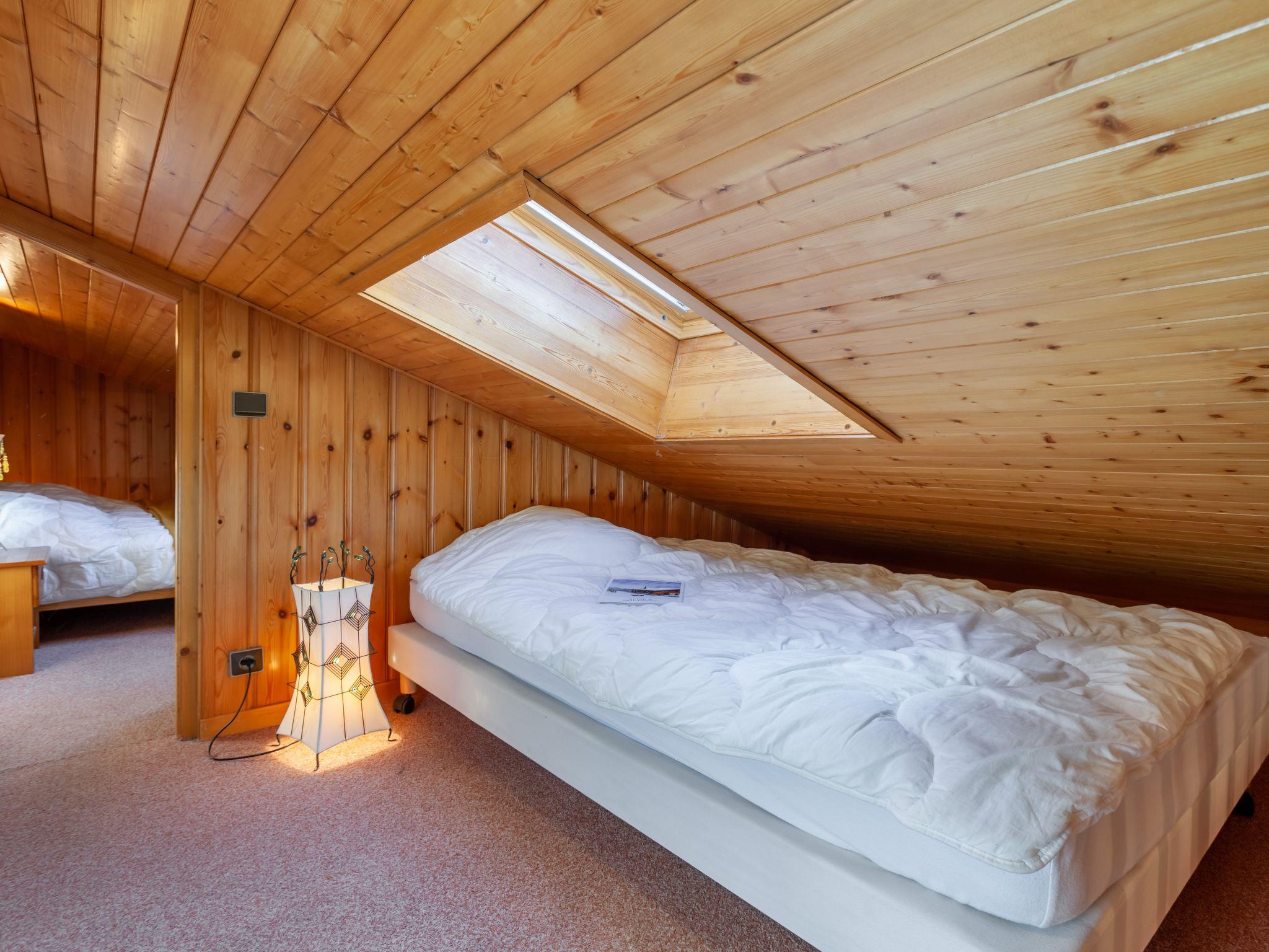 1-room studio 35 m2 on 2 levels on 3rd floor. Living/dining room with TV. Exit to the balcony. Sleeping alcove with 1 x 2 bunk beds (80 cm, length 190 cm). Open kitchen (4 hot plates, oven, dishwasher, toaster, kettle, electric coffee machine, Capsules for coffee machine (senseo) extra, raclette grill). Bathroom, sep. WC. Electric heating, boiler. Upper floor: open interconnecting room with sloping ceilings, Low door height 130 cm ceiling height 50 - 130 cm with 1 french bed (140 cm, length 190 cm). Interconnecting room with sloping ceilings, ceiling height 50 - 130 cm with 2 beds (80 cm, length 190 cm). Balcony 9 m2, west facing position. Balcony furniture. Beautiful view of the mountains and the valley. Facilities: washing machine. Internet (WiFi, extra). Parking. Please note: TV only FR. No lift. Instead of an enclosed bedroom, some sleeping areas are located in an open-plan area (gallery, alcove, etc.). Offer by a private individual according to Art. 155, IV of CGI.