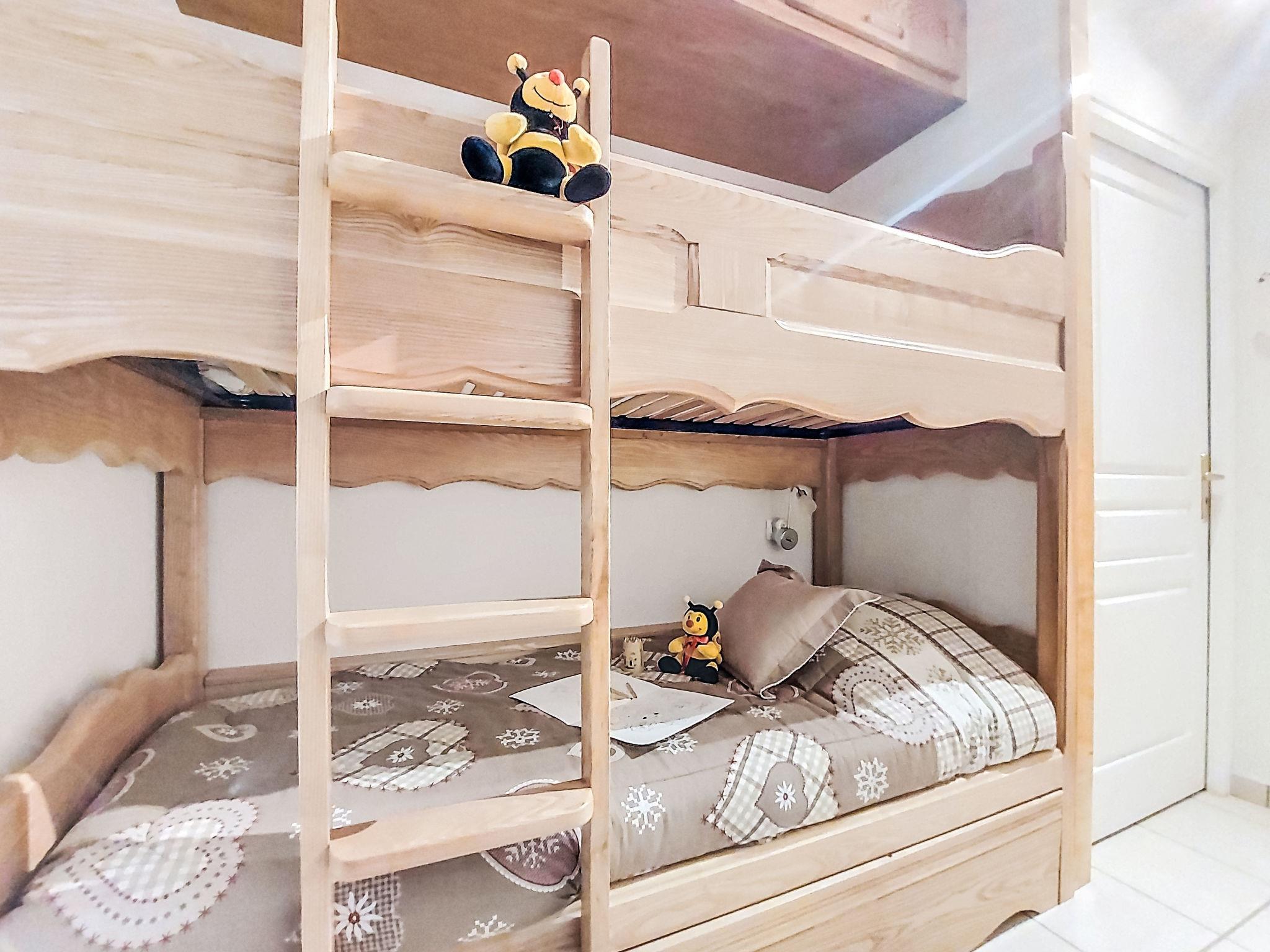 "Domaine de Crespin", 2-room apartment 51 m2 on 2nd floor. Entrance hall with 1 x 2 bunk beds (80 cm, length 190 cm). Large living/dining room. Exit to the balcony. 1 room with 1 french bed (140 cm, length 190 cm). Exit to the balcony. Open kitchen (oven, dishwasher, 4 induction hot plates, kettle, microwave, electric coffee machine, raclette grill). Shower, sep. WC. Heating. 2 small balconies 3 m2, west facing position and south-west facing position. Very beautiful view of the mountains. Facilities: washing machine. Internet (WiFi, free). Garage space n 19 (1 car). Please note: non-smokers only. TV only FR. Smoke alarm. Offer by a private individual according to Art. 155, IV of CGI.