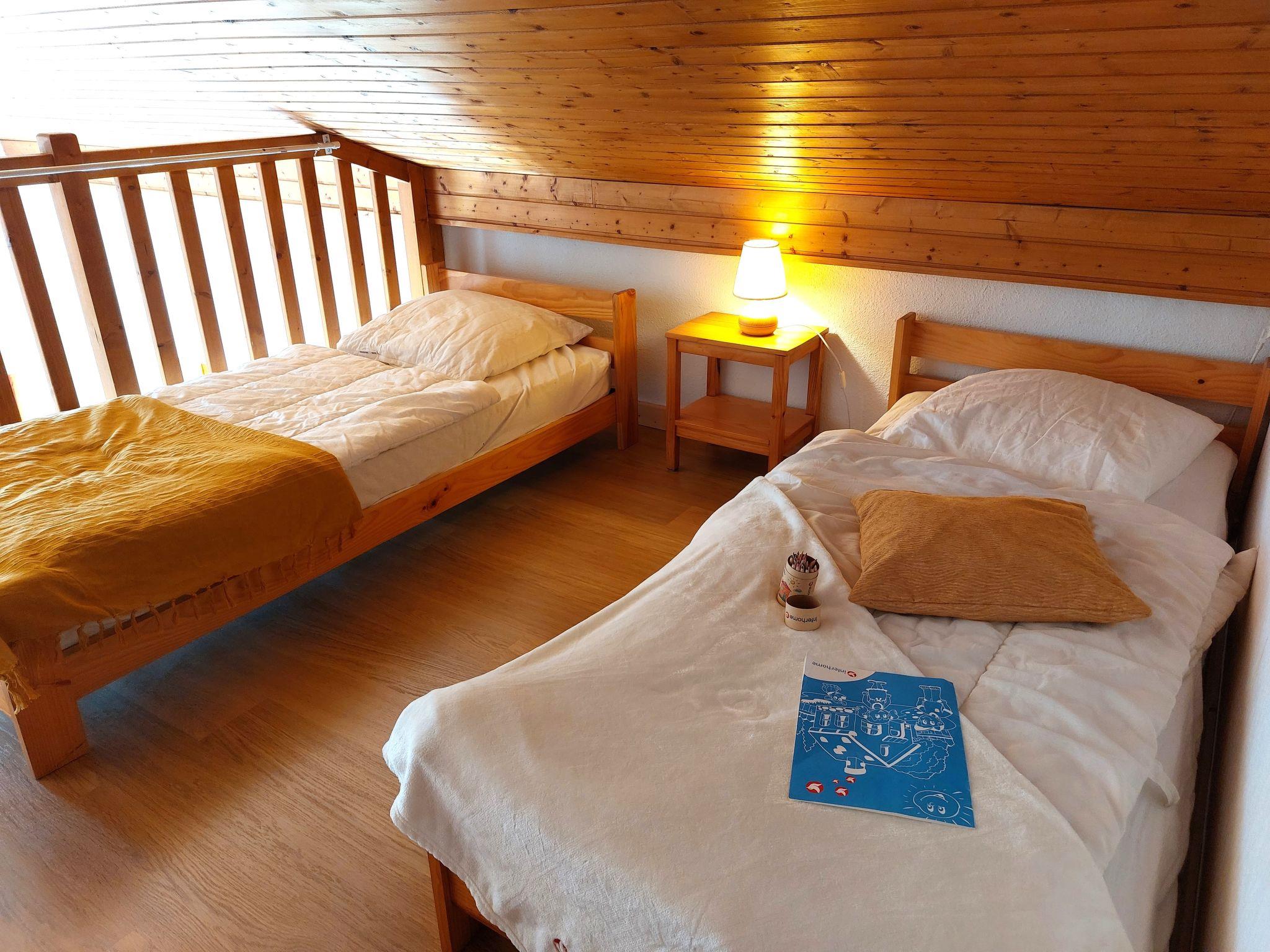 "Martagon", 4-room maisonette 80 m2 on 2nd floor. Comfortable furnishings: living/dining room with TV, flat screen and DVD. Exit to the balcony. 1 room with 1 french bed (140 cm). 1 room with 1 x 2 bunk beds (90 cm). Open kitchen (4 hot plates, mini-oven, dishwasher, toaster, kettle, electric coffee machine, raclette grill, fondue Set (cheese)). Bathroom, shower/WC, sep. WC. Electric heating. Upper floor: gallery with sloping ceilings, - 180 cm with 2 beds (90 cm). 1 room with 1 french bed (140 cm, length 180 cm). Large balcony 10 m2. Deck chairs (2). Beautiful view of the mountains. Facilities: washing machine. Internet (WiFi, free). Please note: non-smokers only. TV only FR. Smoke alarm. Area of 20 m2 has a ceiling height of under 1.80 m. Instead of an enclosed bedroom, some sleeping areas are located in an open-plan area (gallery, alcove, etc.). ?