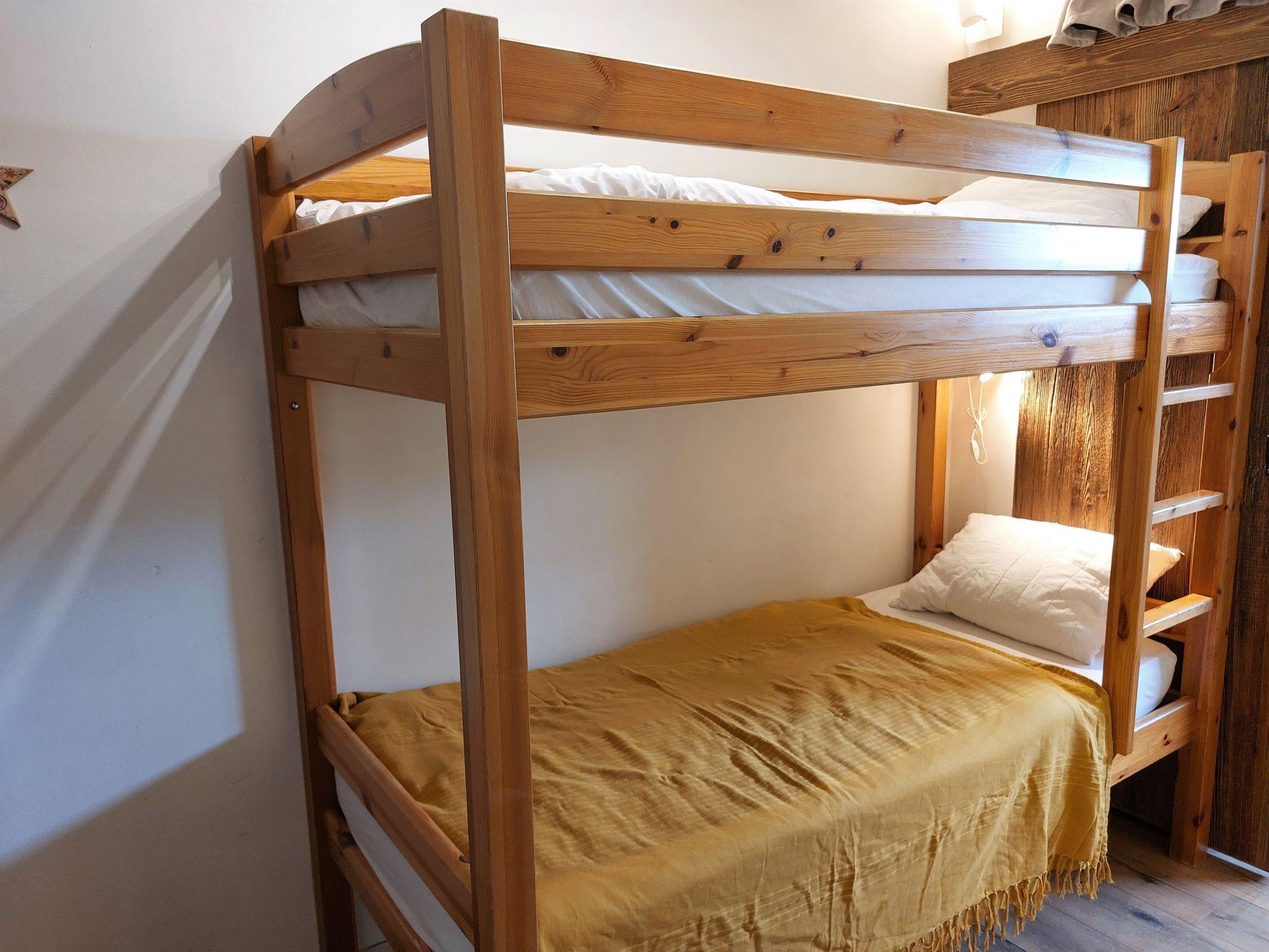 "Castel des roches", 1-room studio 25 m2 on 3rd floor. Living/dining room with 1 double sofabed (140 cm, length 190 cm), dining table, TV and flat screen. Exit to the balcony. Entrance hall with 1 x 2 bunk beds (90 cm). Open kitchen (4 hot plates, dishwasher, kettle, microwave, electric coffee machine, raclette grill). Shower/WC. Oil heating. Small balcony, south-east facing position. Balcony furniture. Beautiful view of the mountains. Facilities: washing machine. Internet (WiFi, extra). Parking. Please note: non-smokers only. TV only FR. Smoke alarm. Offer by a private individual according to Art. 155, IV of CGI.
