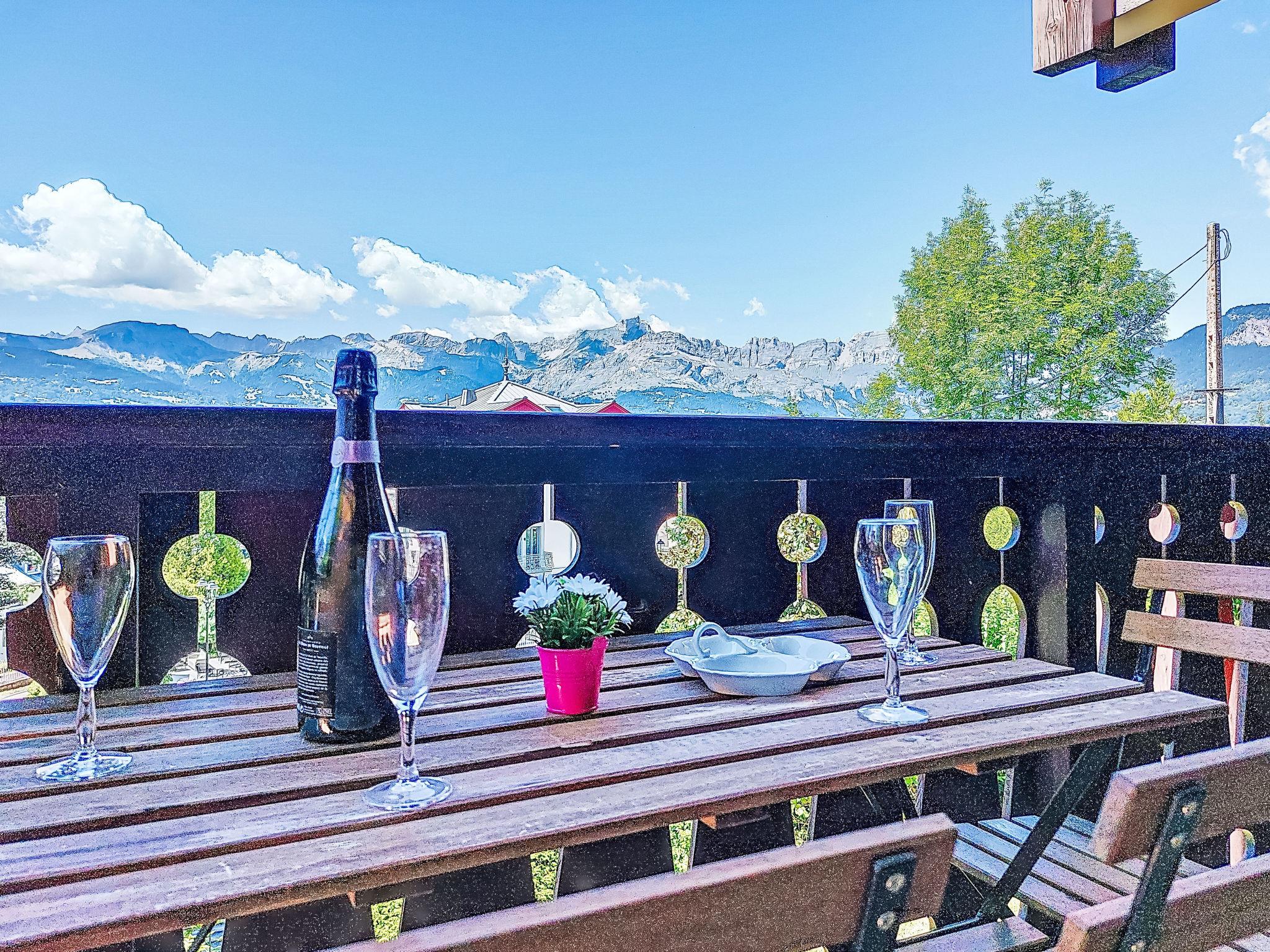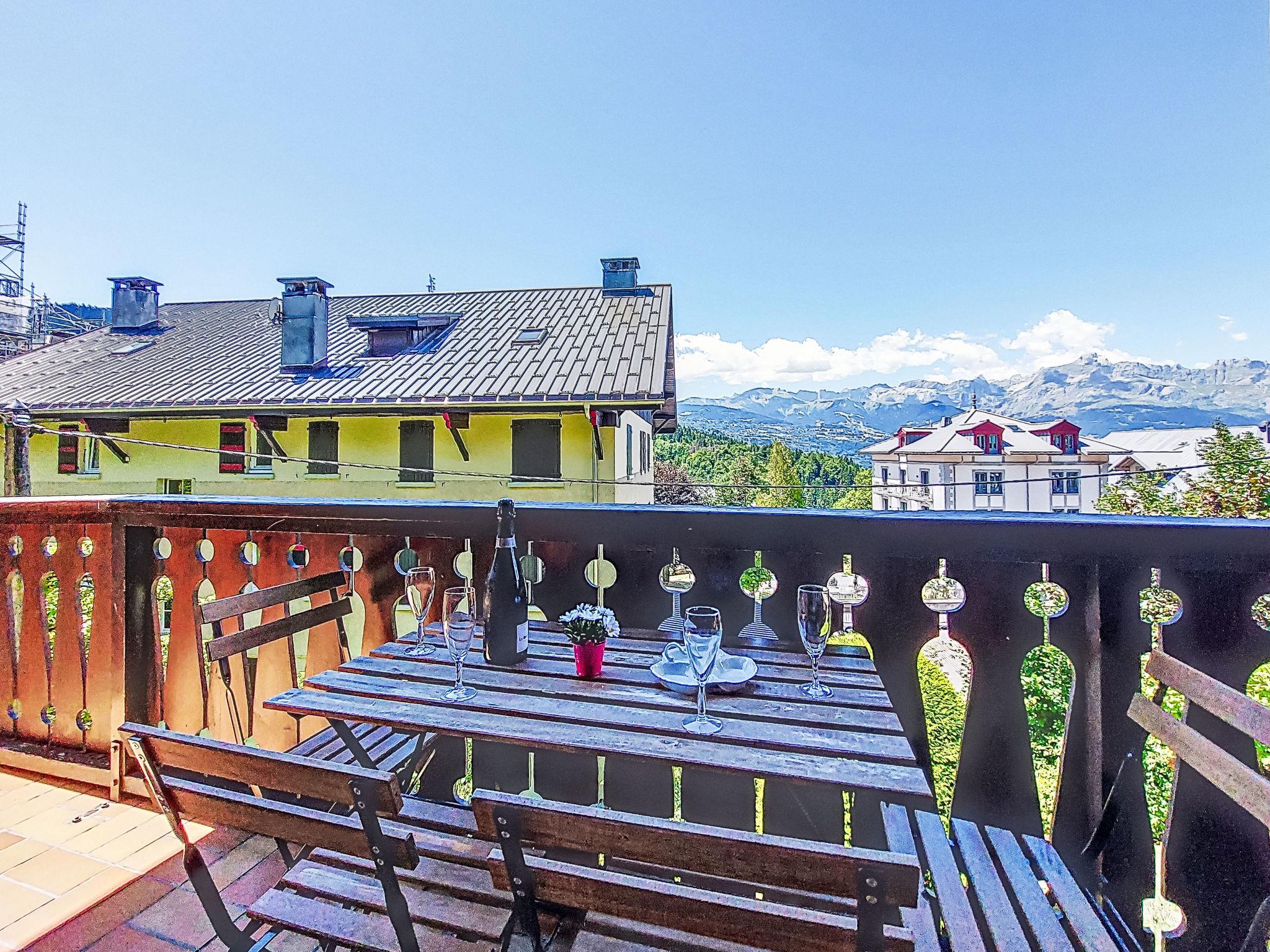 "Pointe des aravis B13", 2-room apartment 29 m2 on 1st floor. Living/dining room with TV. Exit to the balcony. Entrance hall with 2 wall-trunk beds (80 cm, length 190 cm). 1 room with 1 french bed (140 cm, length 190 cm). Kitchenette (4 hot plates, oven, dishwasher, toaster, kettle, electric coffee machine). Bathroom, sep. WC. Electric heating. Balcony, west facing position. Balcony furniture. Beautiful view of the mountains. Facilities: washing machine. Internet (WiFi, free). Parking. Please note: non-smokers only. 1 small pet/ dog allowed. TV only FR. Smoke alarm.