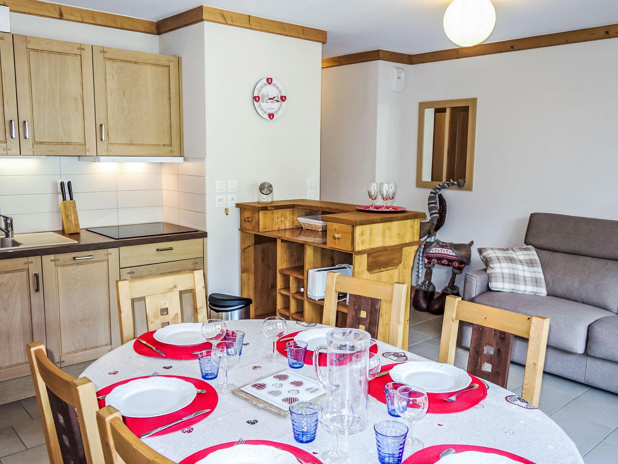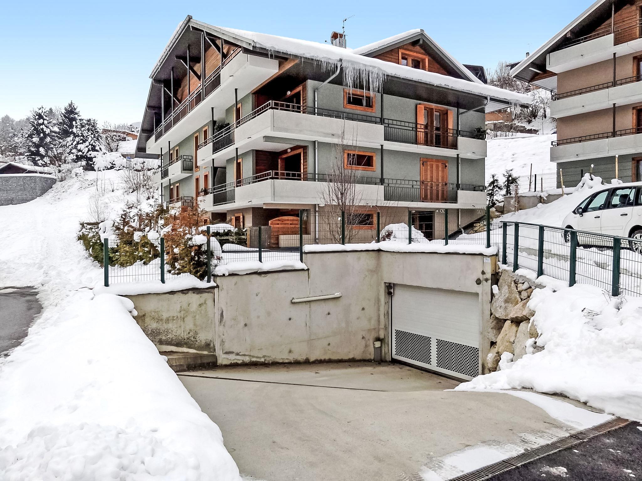 "Clos de la Fontaine 1", 3-room apartment 44 m2 on 1st floor. Entrance hall. Exit to the balcony. Living/dining room with 1 double sofabed (140 cm), dining table, TV and flat screen. Exit to the balcony. 1 room with 1 x 2 bunk beds (90 cm, length 190 cm). 1 room with 1 french bed (140 cm, length 190 cm). Exit to the balcony. Kitchen (dishwasher, 4 induction hot plates, toaster, kettle, microwave, electric coffee machine, Capsules for coffee machine (senseo) extra, raclette grill). Bathroom, sep. WC. Electric heating. Balcony 6 m2. View of the mountains and the resort. Facilities: washing machine. Internet (WiFi, extra). Parking space n 4 (roofed). Please note: non-smokers only. TV only FR. Smoke alarm.