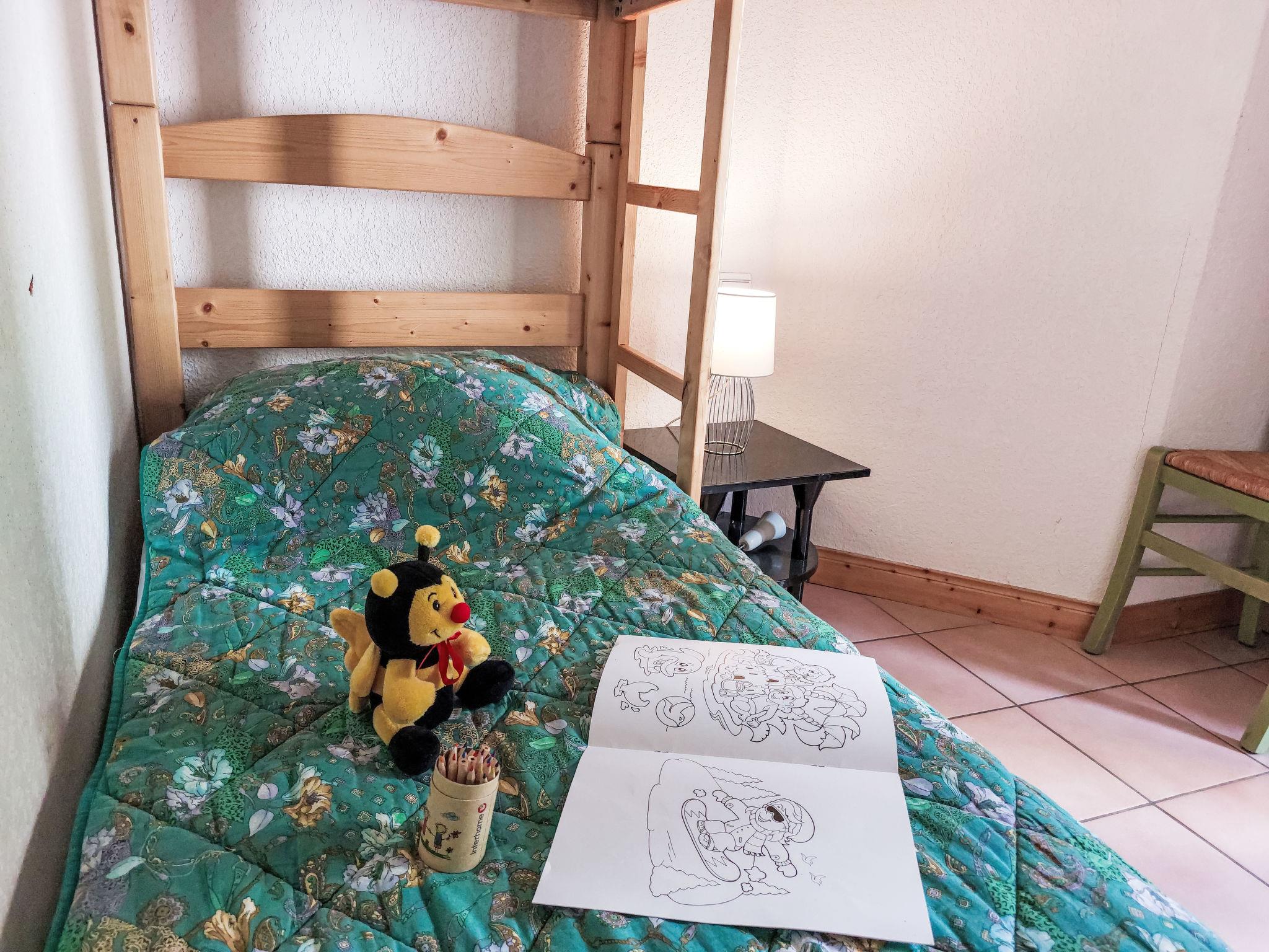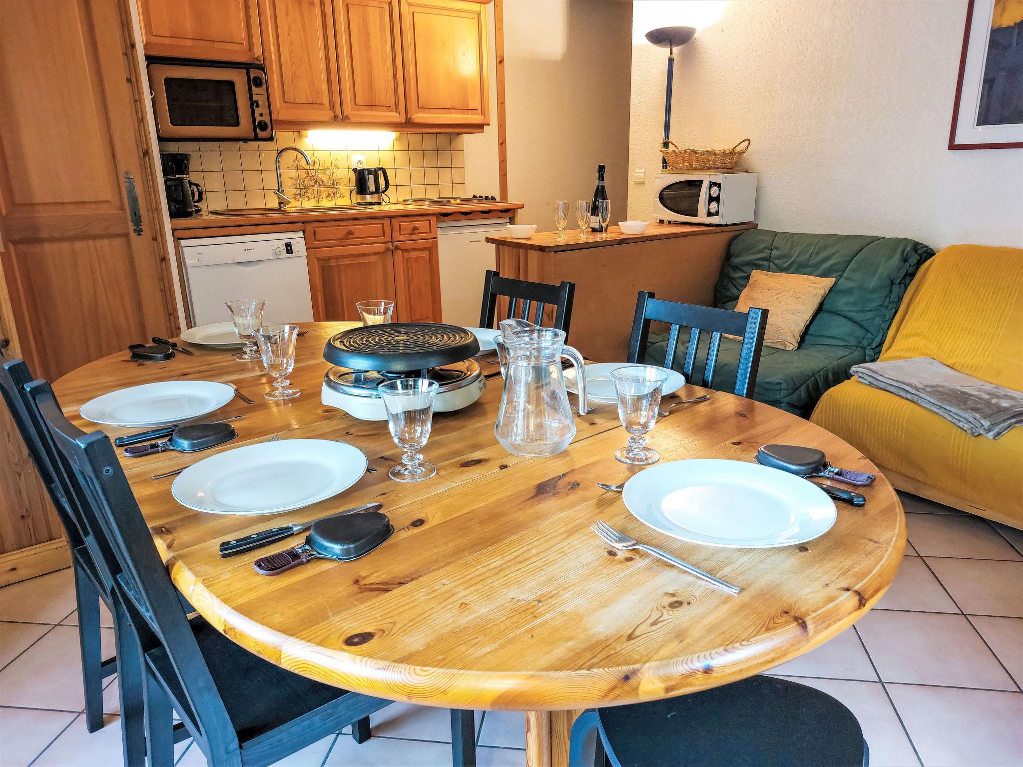 "Jardins Alpins 8", 3-room apartment 53 m2 on 1st floor. Living/dining room with 1 double sofabed (140 cm), TV. Exit to the balcony, to the terrace, south facing position and west facing position. 1 small room with 1 x 2 bunk beds (90 cm). Exit to the terrace. 1 room with 1 french bed (2 x 80 cm). Exit to the terrace. Open kitchen (4 hot plates, oven, dishwasher, toaster, kettle, electric coffee machine, raclette grill, combination microwave, fondue Set (cheese)). Bathroom, sep. WC. Electric heating. Small balcony, large terrace, patio. View of the mountains. Facilities: Internet (WiFi, extra). Please note: non-smokers only. Maximum 1 pet/ dog allowed. TV only FR. Smoke alarm.