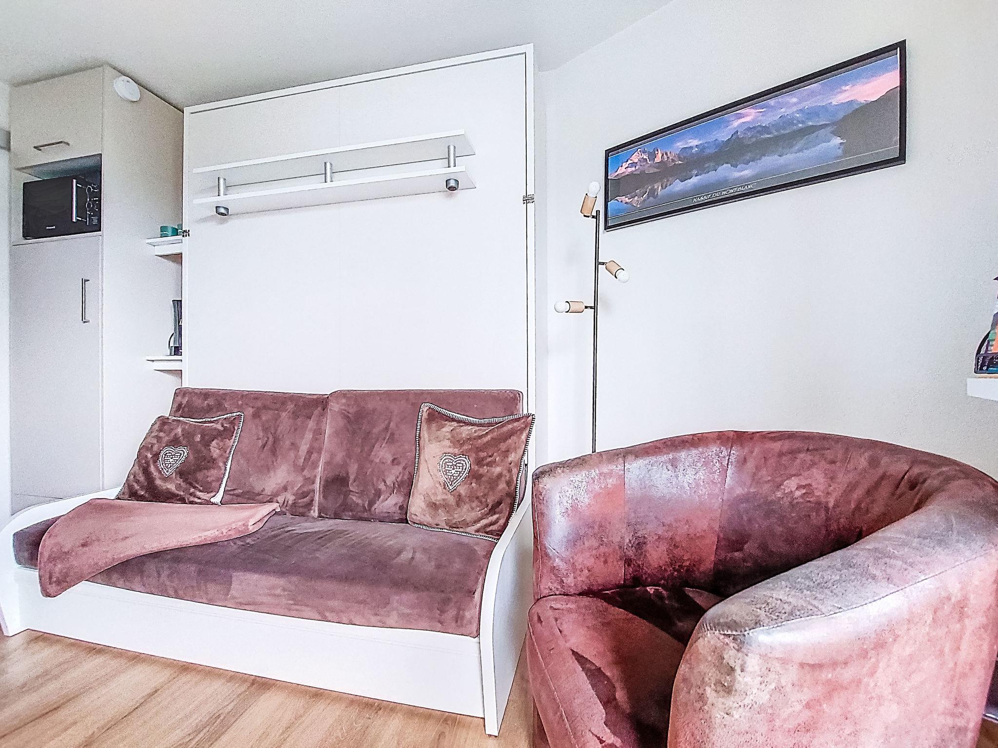 "L'Aiguille Noire", 1-room studio 24 m2 on 2nd floor. Living/dining room with 1 wall-trunk bed (160 cm, length 200 cm). Exit to the balcony. Alcove with 2 beds (80 cm, length 190 cm), 1 x 1 bunk beds (90 cm, length 190 cm). Kitchenette (dishwasher, 2 induction hot plates, toaster, kettle, microwave, electric coffee machine, Capsules for coffee machine (Senseo) extra, fondue Set (cheese)). Shower, sep. WC. Small balcony 3 m2, east facing position and south-east facing position. Very beautiful panoramic view of the mountains. Facilities: Internet (WiFi, extra). Please note: non-smokers only. Maximum 1 pet/ dog allowed. TV only FR. Smoke alarm, no lift. Offer by a private individual according to Art. 155, IV of CGI.