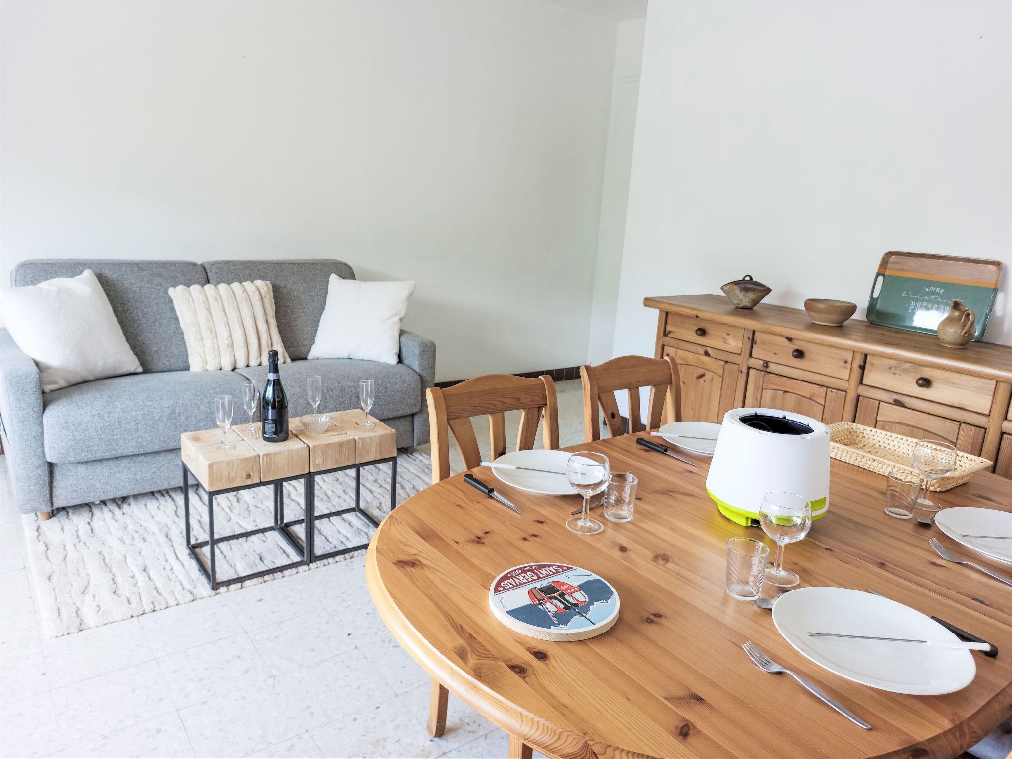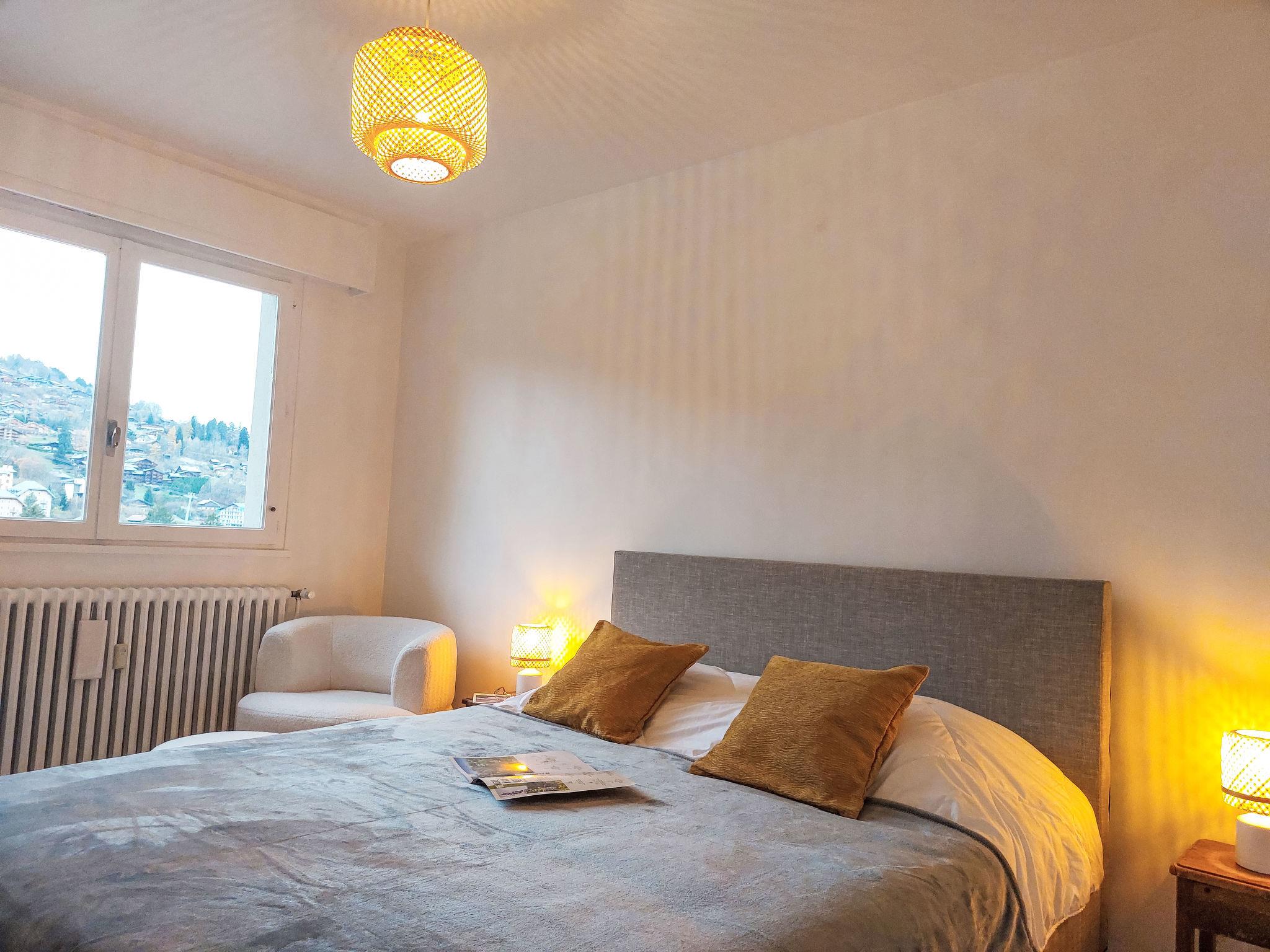 "La côte du Parc", 2-room apartment 52 m2 on 1st floor. Living/dining room with 1 double sofabed (140 cm, length 190 cm), TV (flat screen). Exit to the balcony. 1 room with 1 french bed (160 cm, length 190 cm). Kitchen (oven, 4 gas rings, toaster, kettle, microwave, electric coffee machine, Capsules for coffee machine (Tassimo) extra). Exit to the balcony. Shower, sep. WC. Oil heating. Large balcony 6 m2, west facing position, small balcony 2 m2, east facing position. Beautiful view of the mountains. Facilities: washing machine. Internet (WiFi, extra). Parking (1 car). Please note: non-smokers only. TV only FR. Smoke alarm, no lift. Offer by a private individual according to Art. 155, IV of CGI.