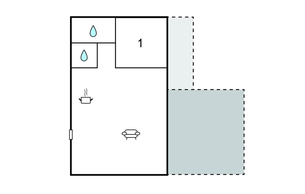 Komb. spisestue/køkken 20m2 - 1 Soveplads. (Sofa, madras eller lignende).