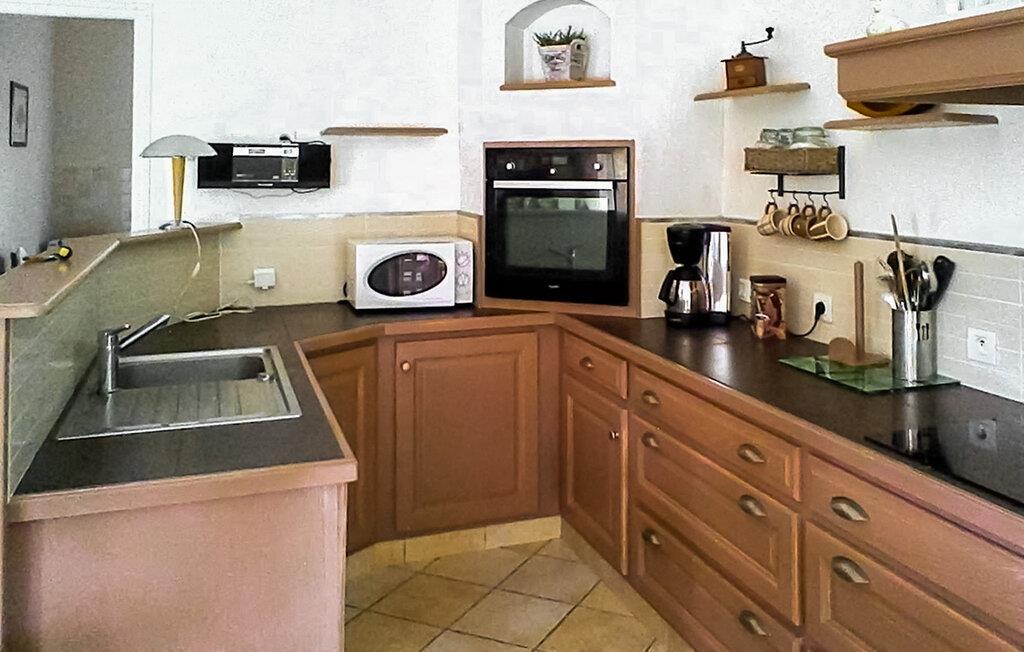 Dette hus byder jer velkommen med en lys og indbydende atmosfære, hvor store lænestole og en komfortabel sofa straks indbyder til at slappe af med en kop kaffe. Tilbered et lækkert måltid i køkkenet og nyd det derefter sammen med udsigten over den smukke have. Reflekter over jeres ferieoplevelser, og skål for en fin fransk vin.