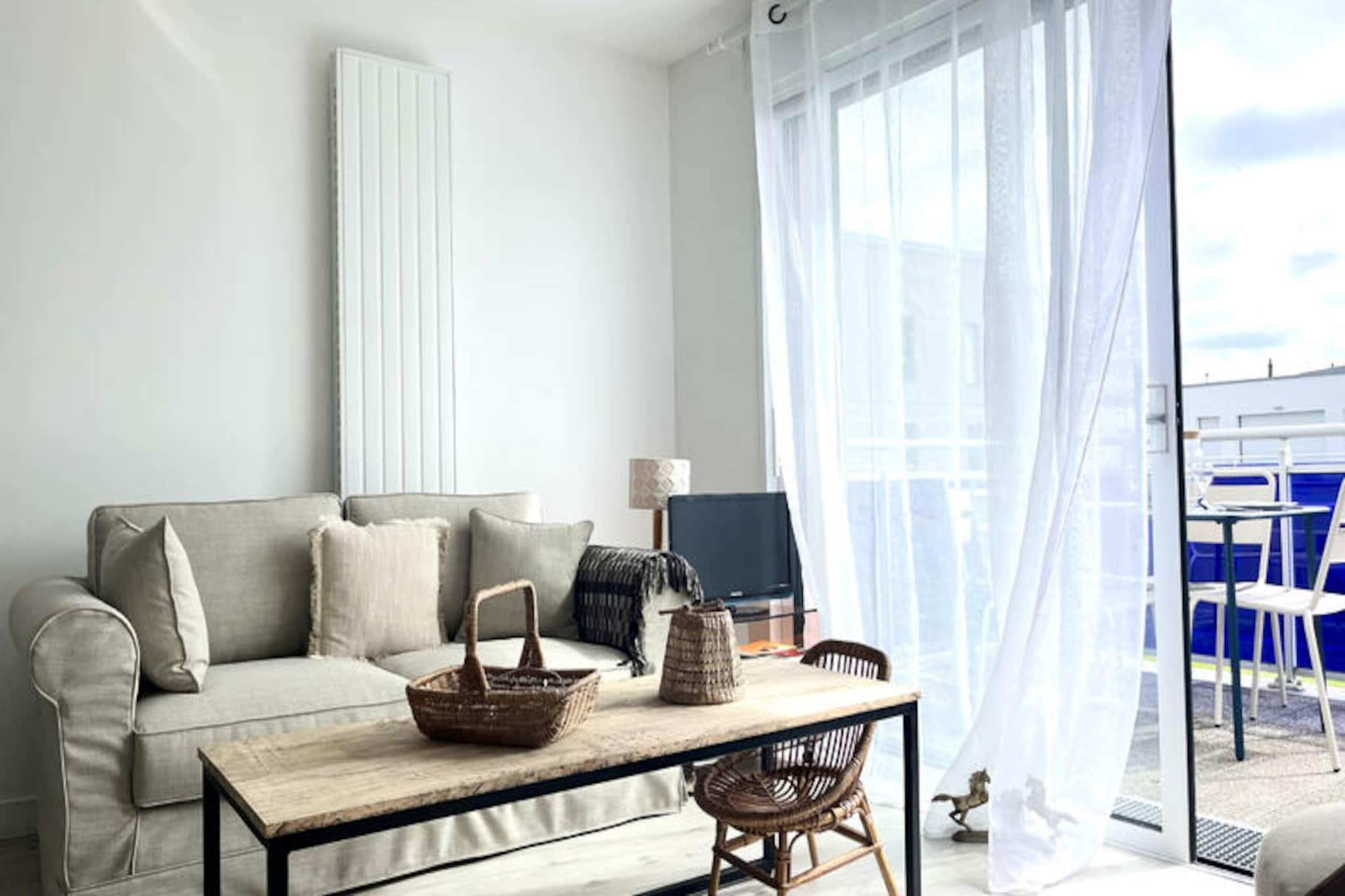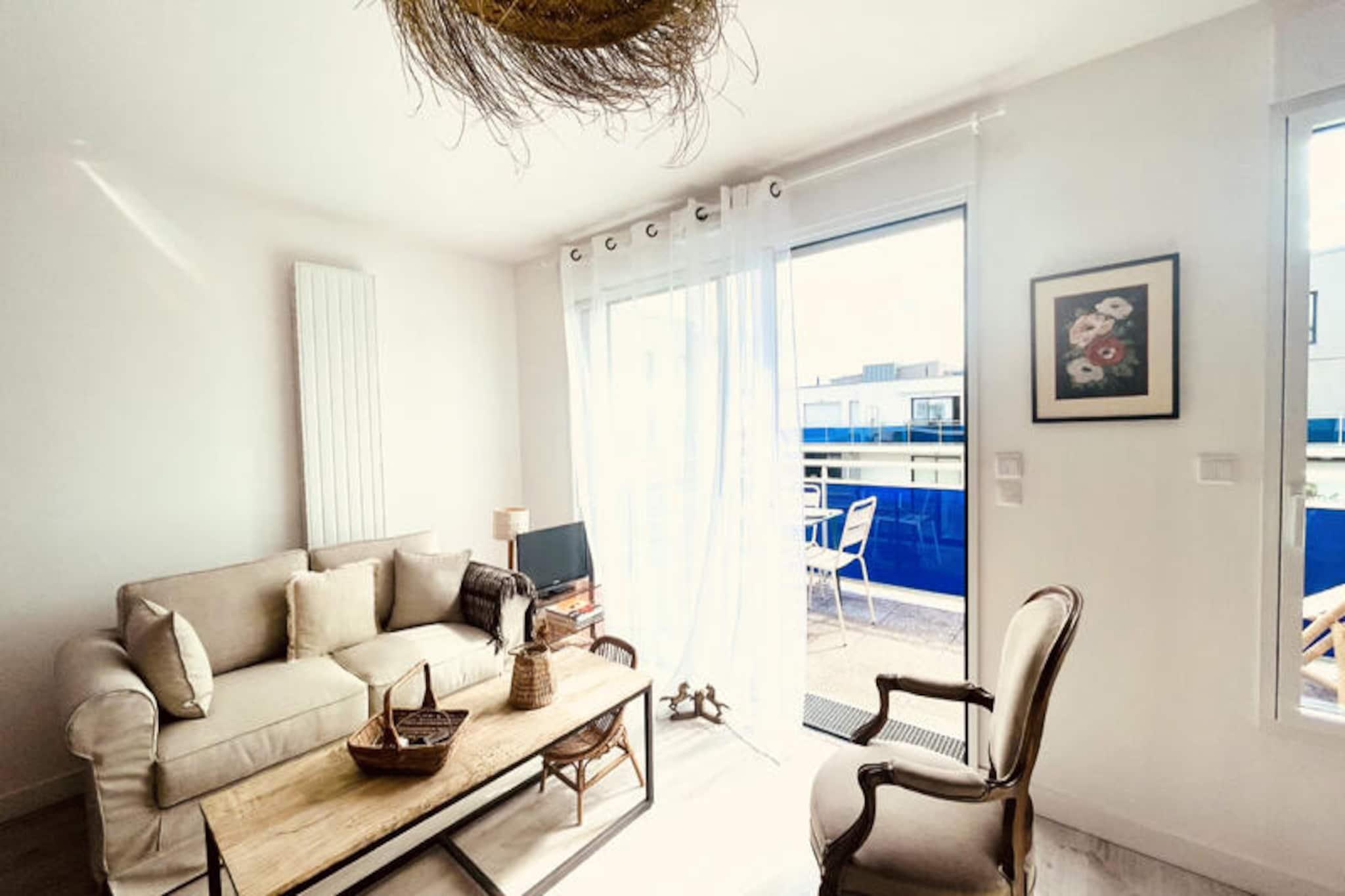 I det charmerende hjerte af Croix de Vie tilbyder denne elegante lejlighed på første sal et roligt tilflugtssted for dem, der søger en blanding af komfort og kystcharme. Badet i naturligt lys inviterer opholdsstuen dig til at slappe af med sit åbne design, der byder på et fuldt udstyret køkken, en hyggelig opholdsstue og en enkeltseng for ekstra bekvemmelighed. Soveværelset, der er udsmykket med en luksuriøs queensize-seng (200 x 200), lover afslappende nætter, mens det moderne badeværelse sikrer alle hjemmets bekvemmeligheder. Gå ud på den rummelige balkon for at nyde din morgenkaffe eller en aftenaperitif, mens du nyder den rolige atmosfære i denne maleriske kystby. Denne lejlighed på 46 m² er perfekt egnet til op til tre gæster og er omhyggeligt designet til at imødekomme alle dine behov. Ved ophold på seks nætter eller mere er sengelinned inkluderet, hvilket sikrer en problemfri oplevelse. Yderligere faciliteter inkluderer en sikker garage i kælderen, ideel til opbevaring af dit køretøj eller strandudstyr. Valgfrie tjenester såsom slutrengøring og leje af sengelinned er tilgængelige for at forbedre dit ophold, mens en WiFi-boks kan reserveres for problemfri forbindelse under hele dit besøg. Beliggende kun få øjeblikke fra den pulserende havn, sandstrande og charmerende lokale markeder, placerer denne ejendom dig i hjertet af Croix de Vies livlige, men afslappede atmosfære. Udforsk de nærliggende kyststier, nyd frisk fisk og skaldyr på restauranter ved vandet, eller sol dig blot langs den uberørte kystlinje. Uanset om du er her for en romantisk ferie eller en fredelig flugt, tilbyder denne lejlighed den perfekte base for at opleve det bedste af Vendée-regionen. Med sin førsteklasses beliggenhed, moderne komfort og indbydende atmosfære er denne lejlighed mere end bare et sted at bo - det er en port til uforglemmelige minder ved havet. Lad tidevandets rytme og Croix de Vies charme sætte tonen for din perfekte ferie.