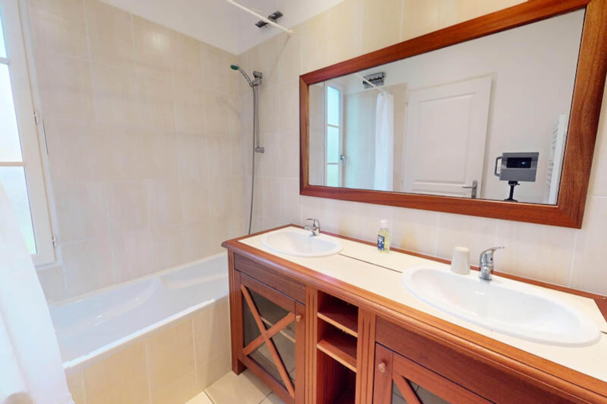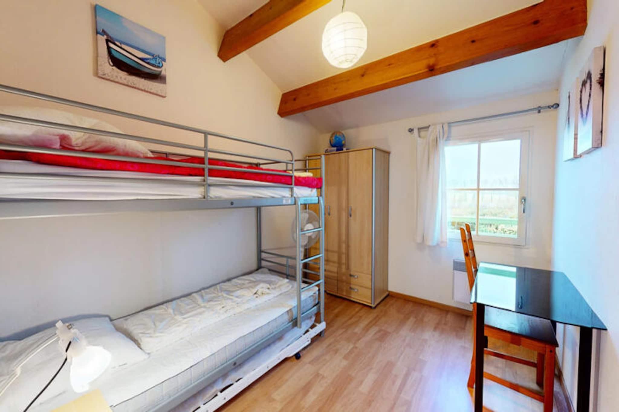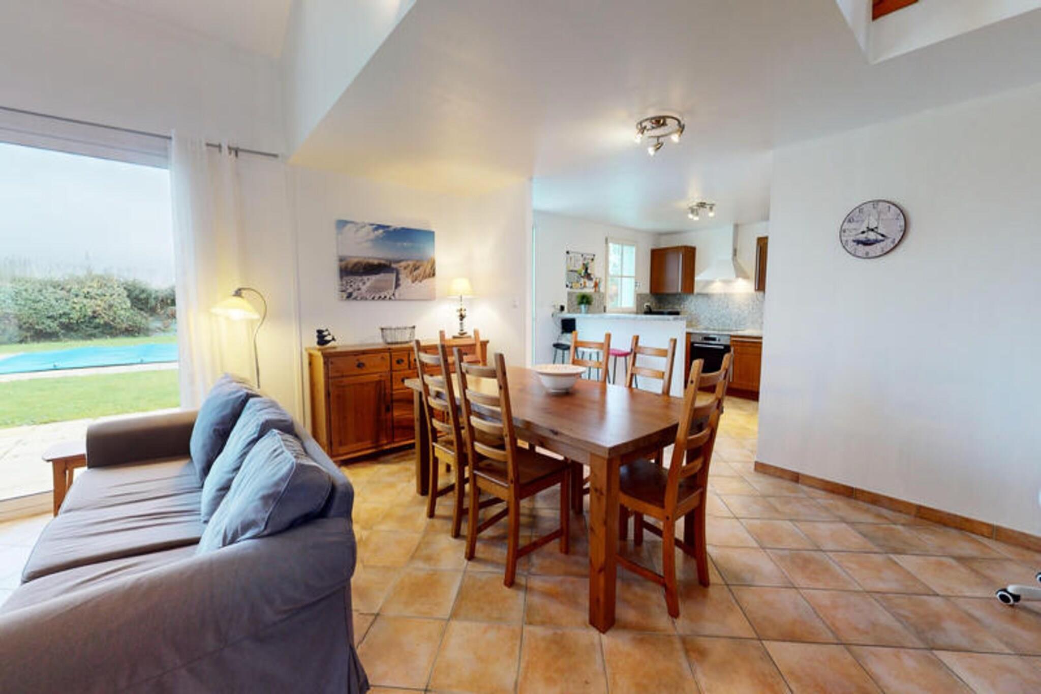 I det fredfyldte hjerte af Domaine des Fontenelles tilbyder Villa Coraline - Golf & Beach en perfekt blanding af ro og eventyr. Omgivet af frodig grønne omgivelser og kun få skridt fra den berømte Golf des Fontenelles er denne villa et paradis for både afslapning og udendørsentusiaster. Med de uberørte strande i Saint-Gilles-Croix-de-Vie kun 12 km væk kan dine dage fyldes med kystens charme og forfriskende havbrise. Denne rummelige og solrige villa er designet til uforglemmelige øjeblikke med familie eller venner. Stueetagen byder dig velkommen med en stor, åben stue, der går direkte over i en terrasse med udsigt over den private opvarmede pool. Et fuldt udstyret køkken indbyder til at tilberede lækre måltider, mens to hyggelige soveværelser, et badeværelse med badekar og et separat toilet sørger for komfort og bekvemmelighed. Ovenpå tilbyder to ekstra soveværelser, herunder et med køjesenge og et andet med en dobbeltseng, en malerisk udsigt over haven. Et andet badeværelse med brusebad og toilet fuldender denne etage. Underholdning er lige ved hånden med et poolbord, bordtennisbord og en 1.000 m² stor have med grill og skyggefuld terrasse. Uden for villaen venter Vendée-regionen med sine mange forskellige attraktioner. Golf des Fontenelles ligger kun 100 m væk, mens den livlige by Coex med sine butikker og supermarked ligger kun 3,9 km væk. For dem, der søger spænding, ligger Le Grand Défi eventyrpark kun 14 km væk. Uanset om du udforsker kysten, nyder en runde golf eller smager på lokale delikatesser, placerer Villa Coraline dig i centrum af det hele. Med Wi-Fi, valgfri linned-service og en privat pool, der er åben fra januar til september, sikrer Villa Coraline et problemfrit og mindeværdigt ophold. Book nu og fordyb dig i Vendées skønhed og charme!