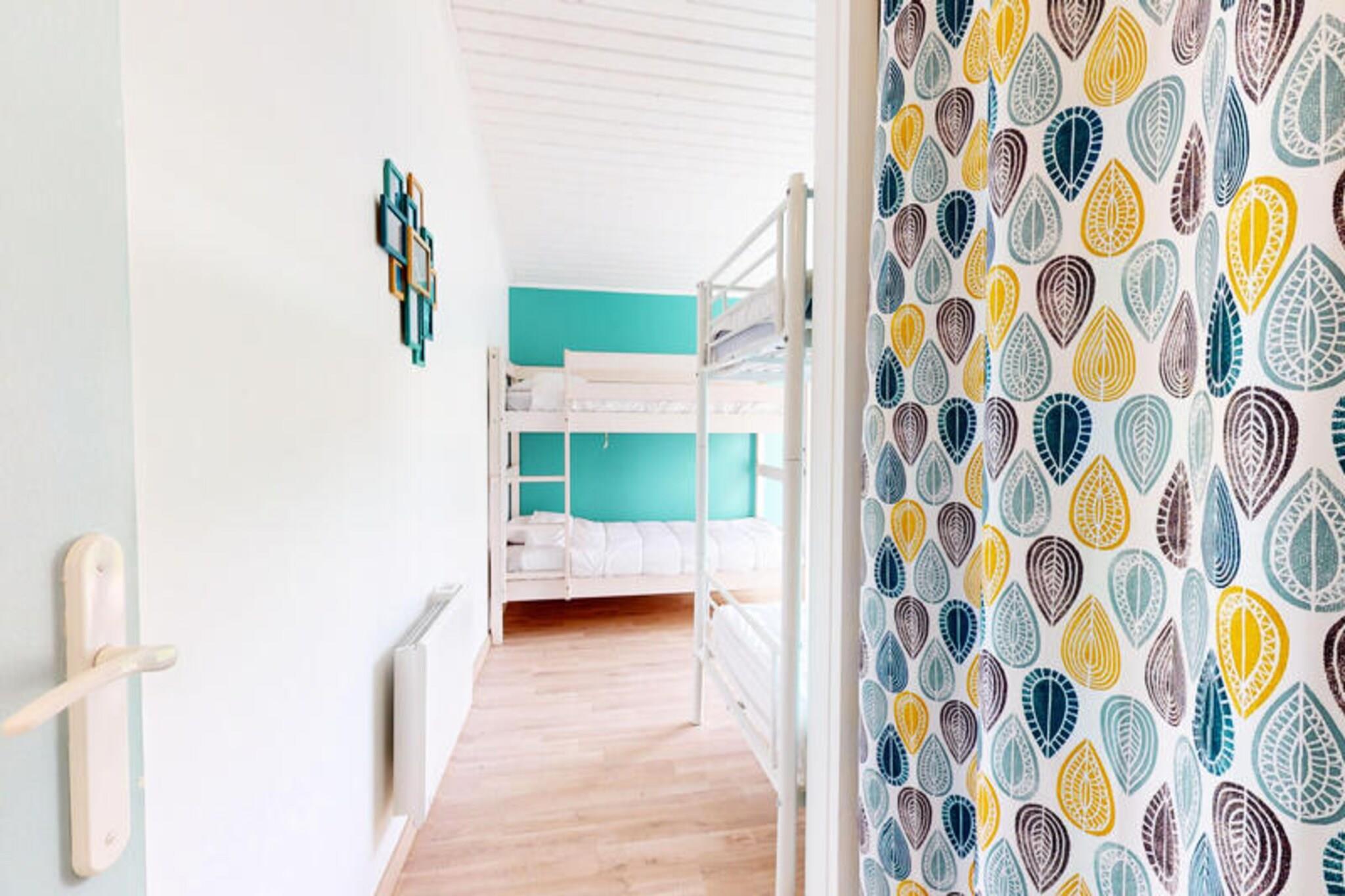 Forestil dig at vågne op til den beroligende lyd af bølger og duften af salt havluft på Villa Le Chant des Vagues i Saint-Jean-de-Monts. Kun 300 meter fra Atlanterhavets gyldne sandstrande ligger denne charmerende villa fra 1950'erne, som er fuldstændig renoveret og tilbyder den perfekte blanding af vintage charme og moderne komfort. Uanset om du planlægger en ferie med familien eller en gruppe venner, kan dette rummelige fristed rumme op til 15 gæster, så alle har plads til at slappe af og koble af. Villaen er omhyggeligt opdelt i to boliger. Stueetagen har en lys og luftig stue med et fuldt udstyret åbent køkken, der er perfekt til at tilberede måltider, som kan nydes på den store terrasse. Tre hyggelige soveværelser, herunder et med køjesenge, gør det ideelt for familier. Ovenpå har den anden bolig en separat indgang, en solrig veranda og et veludstyret køkken. Med to ekstra soveværelser og en sovesofa i stuen tilbyder dette rum både privatliv og komfort. Udenfor inviterer en 700 m² stor privat have dig til at nyde solen, spise måltider i det fri eller bare slappe af, mens børnene leger. Den nærliggende cykelsti gør det nemt at udforske de maleriske omgivelser, mens gratis Wi-Fi sikrer, at du kan holde kontakten. Kæledyr er velkomne, så ingen i familien bliver efterladt. Villa Le Chant des Vagues ligger kun få skridt fra stranden og en kort gåtur fra lokale butikker, bagerier og det travle marked og er perfekt placeret til en bilfri ferie. Uanset om du nyder friske skaldyr, cykler langs kyststierne eller blot nyder solen, lover denne villa en uforglemmelig ferie ved havet. Book dit ophold i dag, og lad bølgernes rytme sætte tonen for din perfekte ferie.