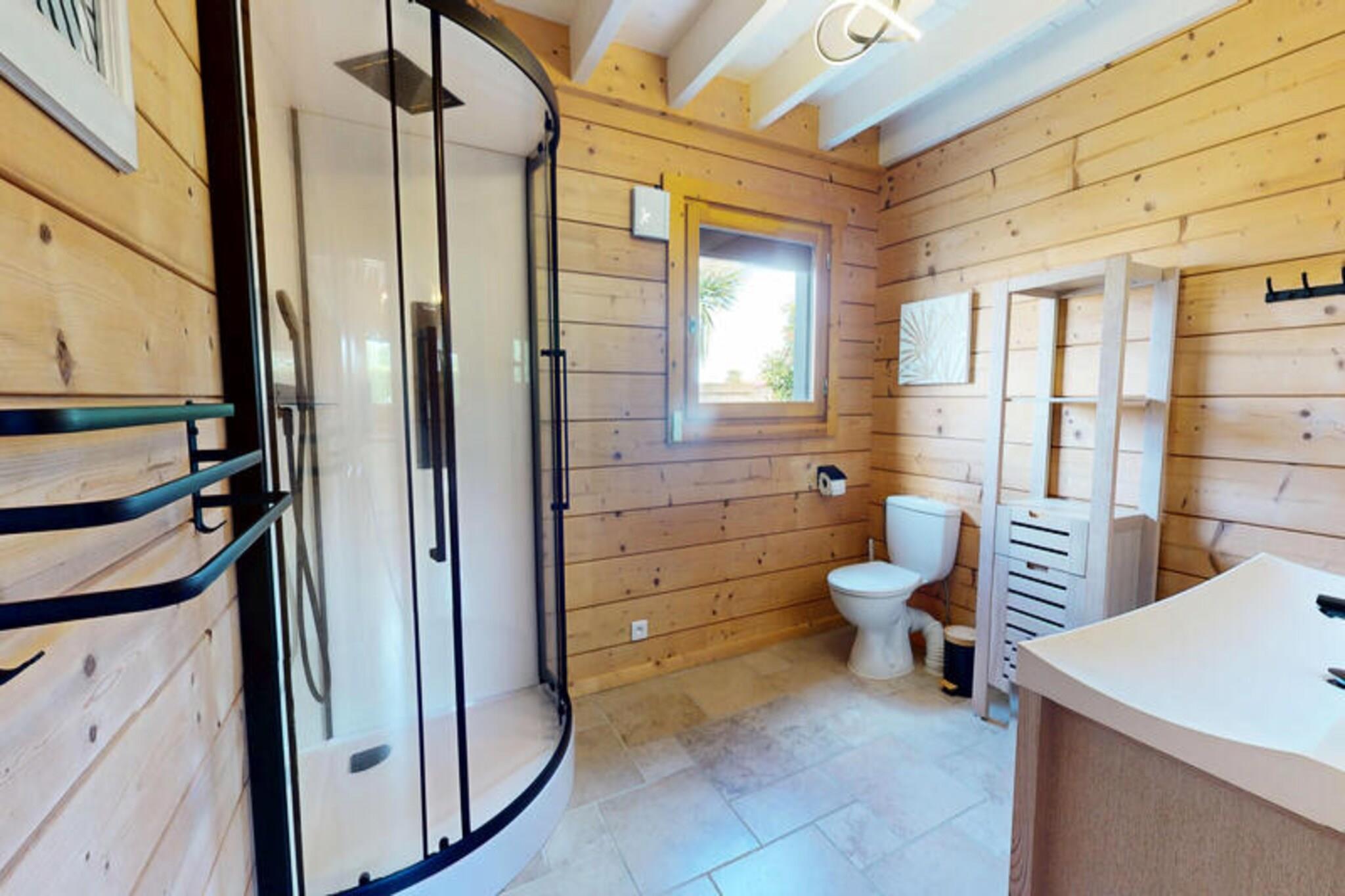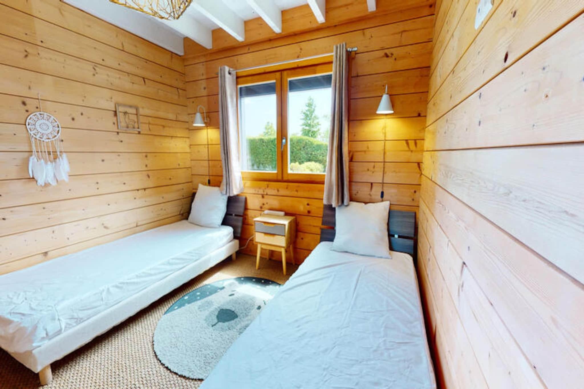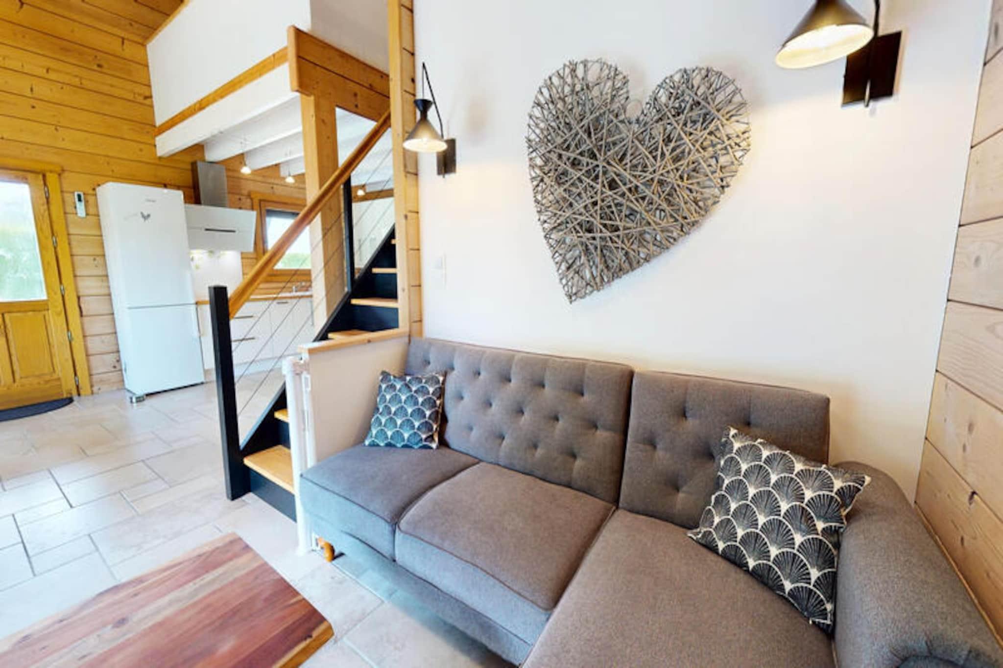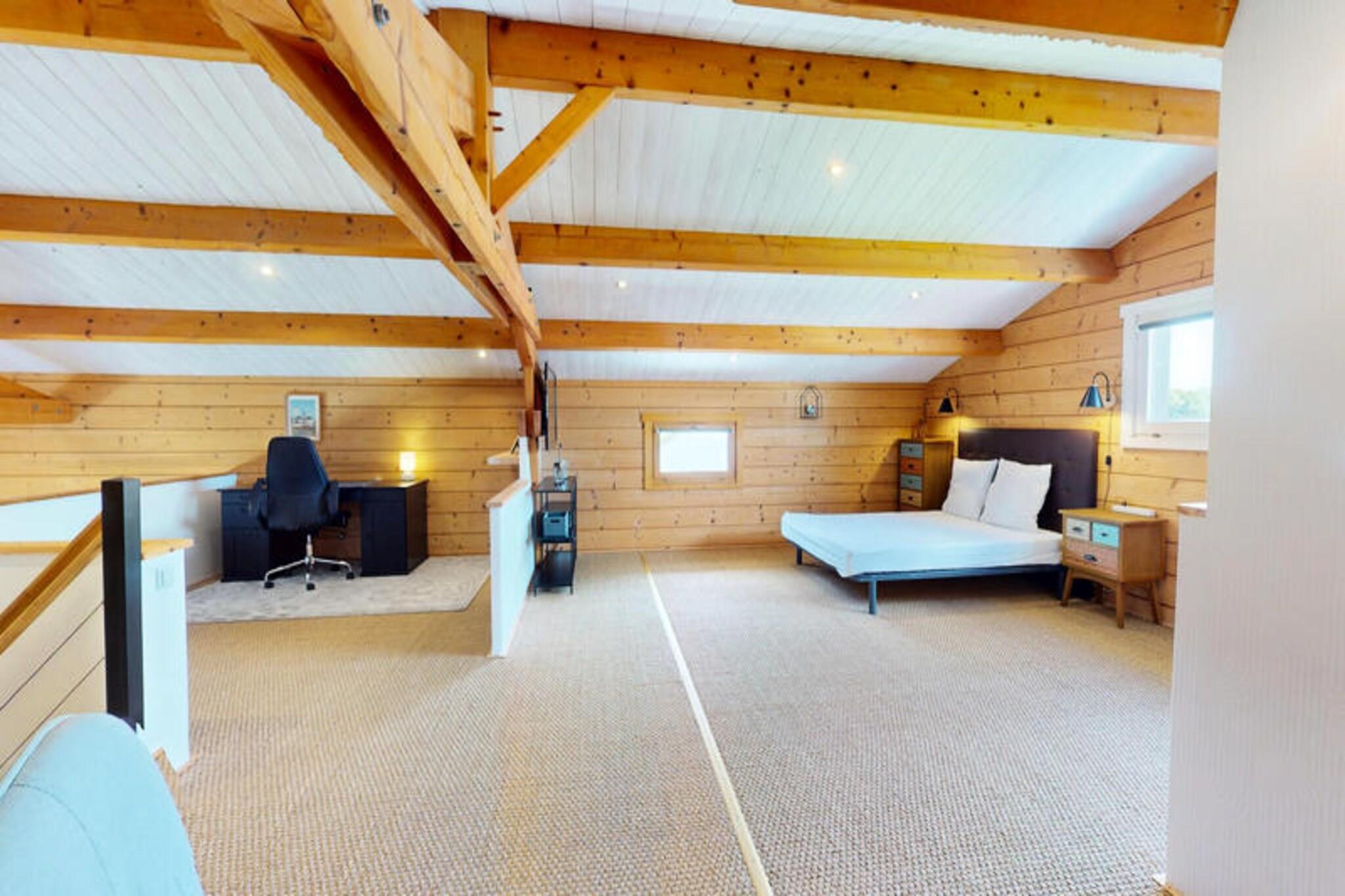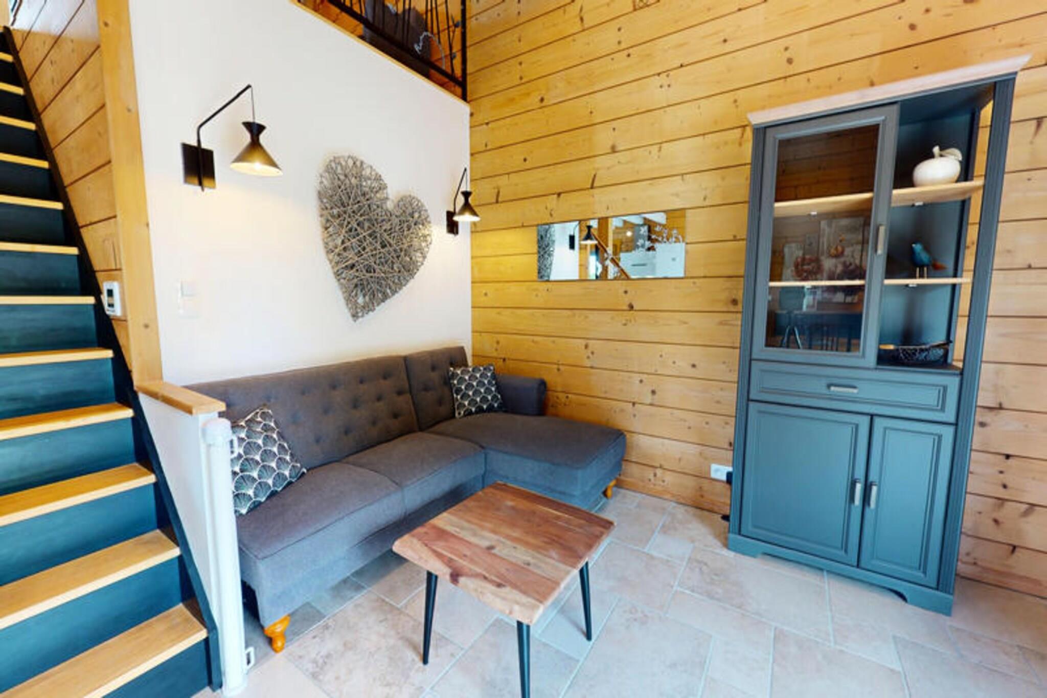 I den fredfyldte by Saint-Maixent-sur-Vie, hvor landlig charme møder havbrise, tilbyder dette fortryllende træhus en unik flugt i Vendée-regionen. Blot 10 minutter fra de gyldne strande i Saint-Gilles-Croix-de-Vie inviterer dette feriehus dig til at slappe af i rolige omgivelser omgivet af natur. Forestil dig morgener fyldt med fuglesang, eftermiddage med at udforske den nærliggende kystlinje og aftener tilbragt under stjernerne i privatlivet af din egen skovklædte have. Her skaber enkelhed og varme den perfekte atmosfære for familie eller venner til at genoprette forbindelsen og genoplade. \n\nTræd indenfor for at opdage en rummelig stue med lofter i katedralstil, der udstråler en hyggelig atmosfære med sine træpaneler på væggene. Det åbne køkken er fuldt udstyret med moderne apparater, herunder køleskab, opvaskemaskine og ovn, hvilket sikrer ubesværet madlavning. Stueetagen har to indbydende soveværelser - en dobbeltseng og to enkeltsenge - samt et brusebad. Ovenpå kan den store mezzanin prale af endnu en dobbeltseng og et åbent badeværelse, der tilbyder et fredeligt tilflugtssted. Med fjernsyn i alle værelser og et hi-fi-system er komfort og underholdning lige ved hånden. \n\nUdenfor er den 600 m² store private have et paradis for afslapning og sjov. En overdækket terrasse med havemøbler, en grill til sommergrillning og en legeplads gør den ideel til udendørs sammenkomster. Uanset om du nyder et måltid under åben himmel eller ser de små lege, er haven et sted at skabe varige minder. \n\nBeliggenheden er uovertruffen: kun få minutter fra Saint-Gilles-Croix-de-Vies pulserende fiskerihavn og sandstrande, 20 minutter fra Bretignolles-sur-Mers surfing-hotspots og 25 minutter fra Saint-Jean-de-Monts. Udforsk lokale markeder fyldt med frisk fisk og skaldyr, oste og Vendée-vine, eller tag på naturskønne cykelture langs Vie-floden. Med forlystelsesparker, vandsport og familievenlige aktiviteter i nærheden byder hver dag på noget nyt at opdage. \n\nGenoplev naturen, omfavn kystlivsstilen og oplev charmen ved denne træhytte – en sand perle i hjertet af Vendée.