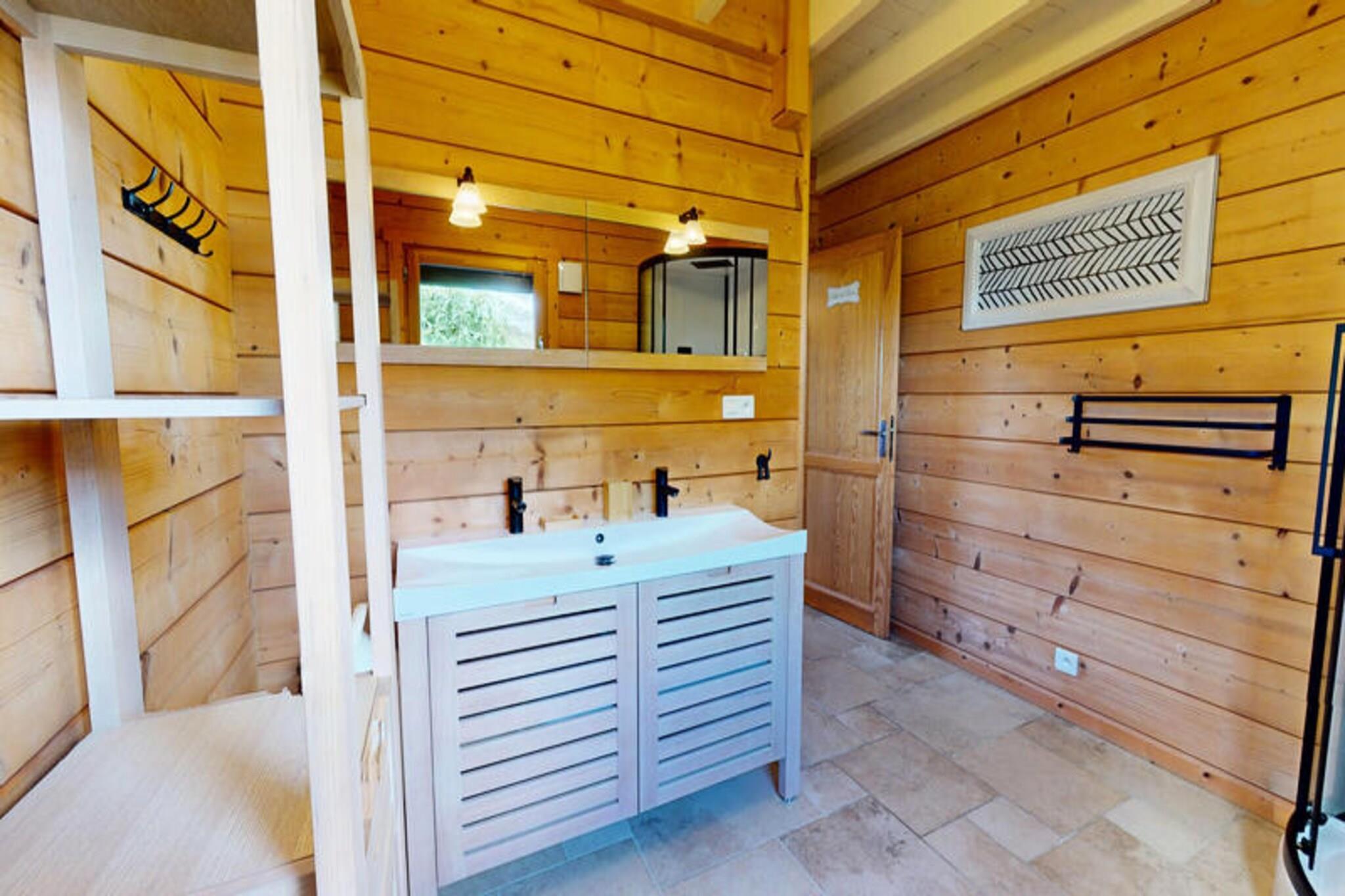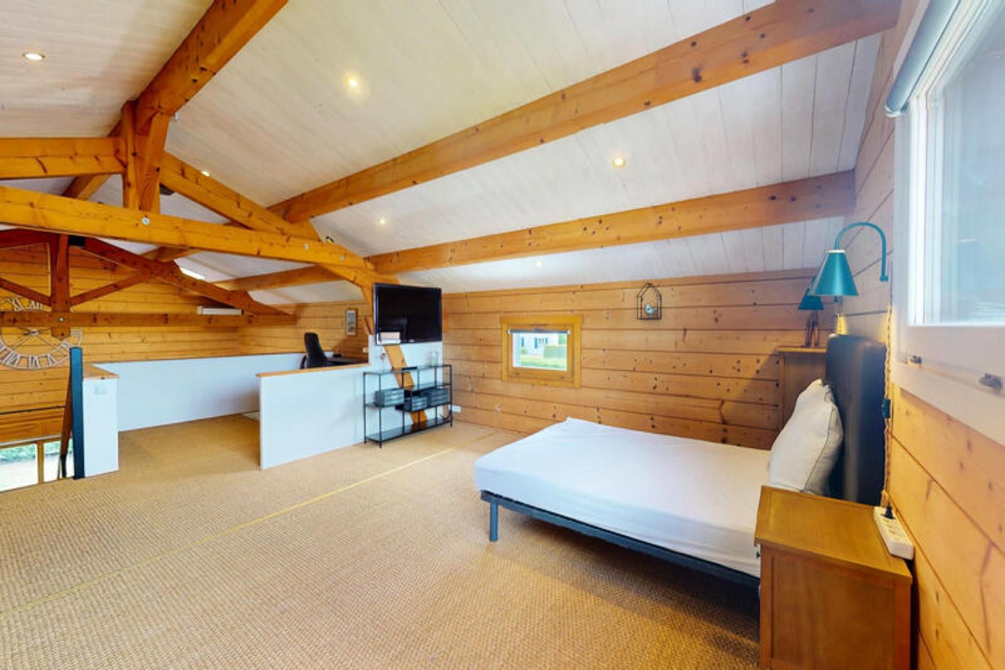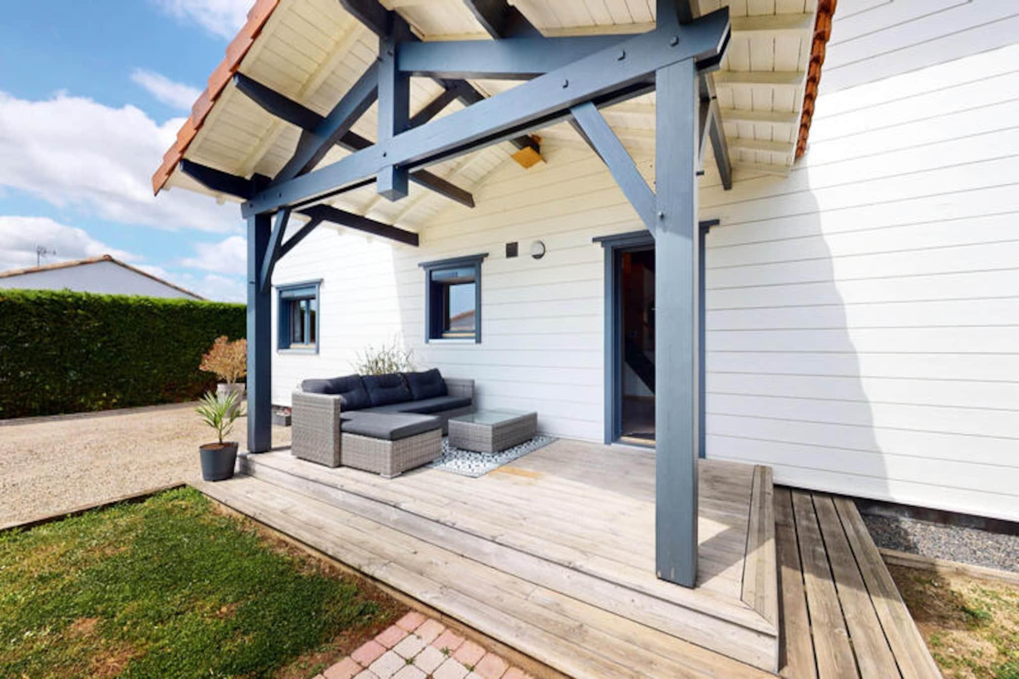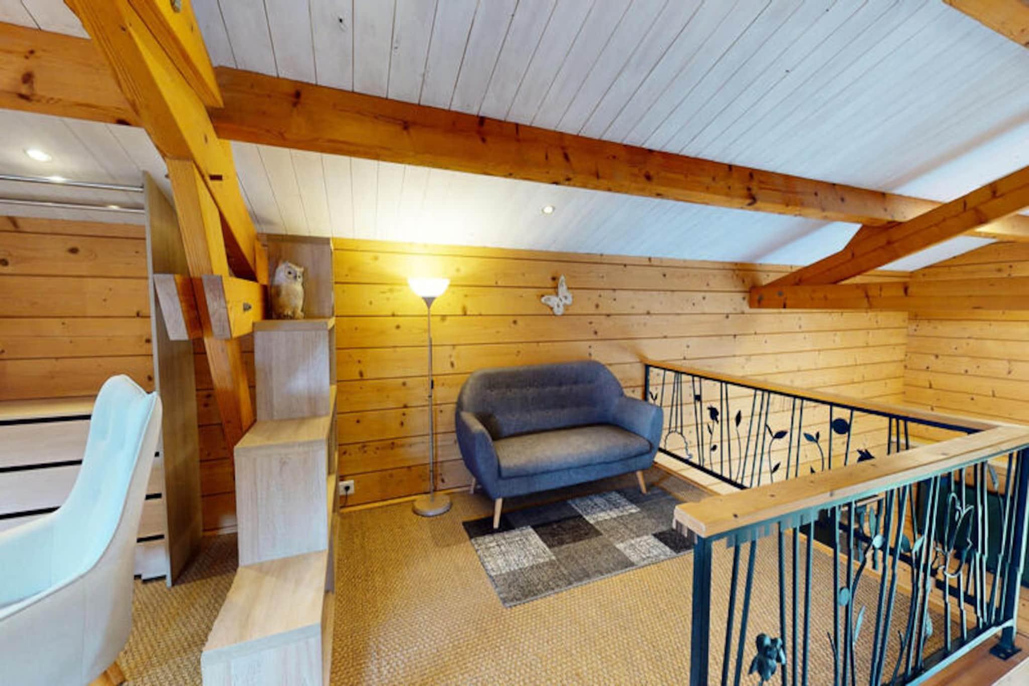 I den fredfyldte by Saint-Maixent-sur-Vie, hvor landlig charme møder havbrise, tilbyder dette fortryllende træhus en unik flugt i Vendée-regionen. Blot 10 minutter fra de gyldne strande i Saint-Gilles-Croix-de-Vie inviterer dette feriehus dig til at slappe af i rolige omgivelser omgivet af natur. Forestil dig morgener fyldt med fuglesang, eftermiddage med at udforske den nærliggende kystlinje og aftener tilbragt under stjernerne i privatlivet af din egen skovklædte have. Her skaber enkelhed og varme den perfekte atmosfære for familie eller venner til at genoprette forbindelsen og genoplade. \n\nTræd indenfor for at opdage en rummelig stue med lofter i katedralstil, der udstråler en hyggelig atmosfære med sine træpaneler på væggene. Det åbne køkken er fuldt udstyret med moderne apparater, herunder køleskab, opvaskemaskine og ovn, hvilket sikrer ubesværet madlavning. Stueetagen har to indbydende soveværelser - en dobbeltseng og to enkeltsenge - samt et brusebad. Ovenpå kan den store mezzanin prale af endnu en dobbeltseng og et åbent badeværelse, der tilbyder et fredeligt tilflugtssted. Med fjernsyn i alle værelser og et hi-fi-system er komfort og underholdning lige ved hånden. \n\nUdenfor er den 600 m² store private have et paradis for afslapning og sjov. En overdækket terrasse med havemøbler, en grill til sommergrillning og en legeplads gør den ideel til udendørs sammenkomster. Uanset om du nyder et måltid under åben himmel eller ser de små lege, er haven et sted at skabe varige minder. \n\nBeliggenheden er uovertruffen: kun få minutter fra Saint-Gilles-Croix-de-Vies pulserende fiskerihavn og sandstrande, 20 minutter fra Bretignolles-sur-Mers surfing-hotspots og 25 minutter fra Saint-Jean-de-Monts. Udforsk lokale markeder fyldt med frisk fisk og skaldyr, oste og Vendée-vine, eller tag på naturskønne cykelture langs Vie-floden. Med forlystelsesparker, vandsport og familievenlige aktiviteter i nærheden byder hver dag på noget nyt at opdage. \n\nGenoplev naturen, omfavn kystlivsstilen og oplev charmen ved denne træhytte – en sand perle i hjertet af Vendée.