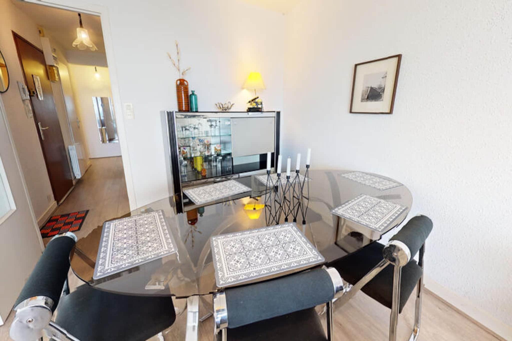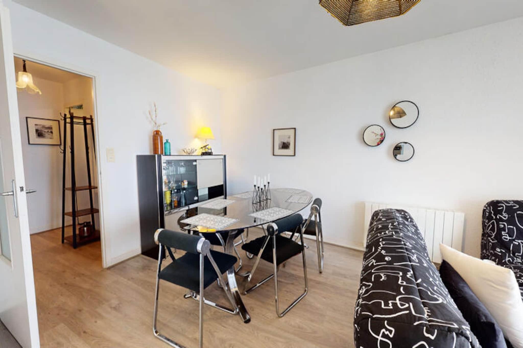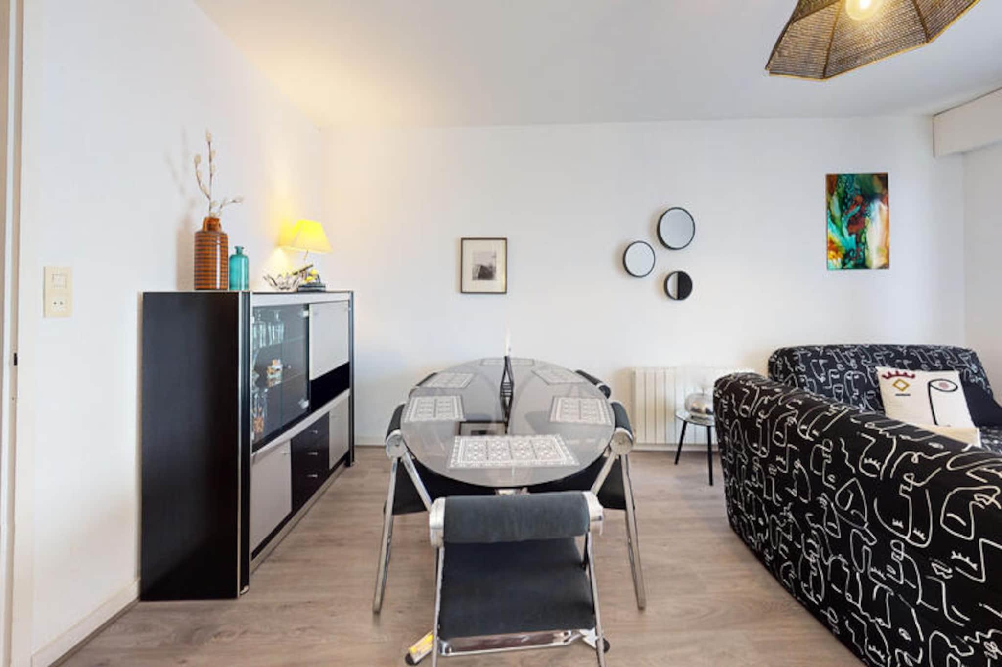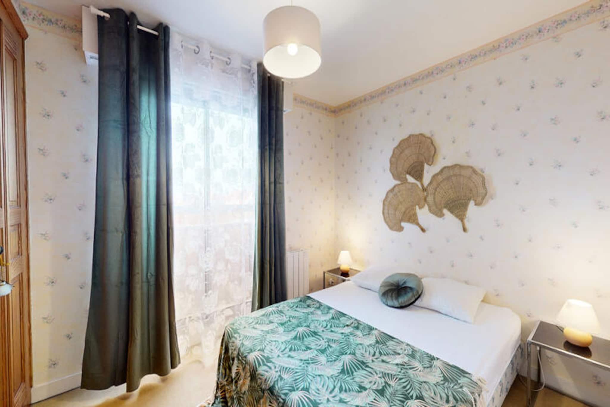 Velkommen til denne charmerende lejlighed i Saint-Gilles-Croix-de-Vie, hvor du kan opleve den perfekte kystferie. Denne 65 m² store lejlighed, beliggende på 2. sal (ingen elevator), tilbyder et fredeligt og afslappende miljø. Det har to velindrettede soveværelser, det ene med en 140 cm dobbeltseng og det andet med to 90 cm enkeltsenge, hvilket sikrer komfort for alle gæster. Lejligheden er ikke kæledyrsvenlig, men tilbyder en privat garage for din bekvemmelighed. Lejlighedens førsteklasses beliggenhed sætter dig i gåafstand fra byens centrum, gågaden og hyggelige brostensbelagte gader fyldt med charmerende butikker og livlige caféer. Du kan udforske det pulserende marked, prøve lokale delikatesser og besøge nærliggende attraktioner. Den smukke Boisvinet-strand ligger også kun en kort gåtur væk, og om sommeren vil færgemanden tage dig til den store strand og tilføje et ekstra strejf af sjov ved havet. Indvendigt har lejligheden et fuldt udstyret køkken med køleskab, fryser, mikroovn, keramisk kogeplade, opvaskemaskine og vaskemaskine, så du nemt kan tilberede måltider. Det rummelige badeværelse har badekar, og det separate toilet giver ekstra bekvemmelighed. Nyd den friske havbrise fra din private balkon, og hold forbindelsen med Wi-Fi under hele dit ophold.