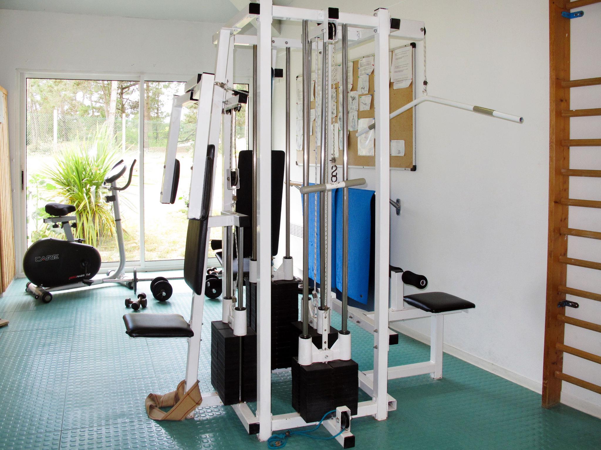 Holiday village "Hameau de l'Océan". 42 houses in the resort. 3 km from the centre of St Hilaire de Riez, 950 m from the sea. For shared use: park 2 ha (fenced) with plants and trees, indoor pool heated, fenced (18 x 8 m, seasonal availability: 03.Apr. - 01.Nov.). Shower/WC in the pool area, tennis, table tennis, basketball, boccia, beach volleyball, barbecue, children's playground. In the complex: reception, bar with TV, WiFi (all included), billiard table, table football, sun terrace, washing machine, tumble dryer (for shared use, extra), bicycle rental. Parking. Shop 3 km, bus stop 3 km, sandy beach 950 m. Nearby attractions: Saint Gilles Croix de Vie 6 km, Saint Jean de Monts 10 km, Ile de Noirmoutier 30 km, Les Sables d'Olonne 38 km, Nantes 70 km. Please note: car-free holiday complex. Entertainment in the season. The photograph shows a typical example.