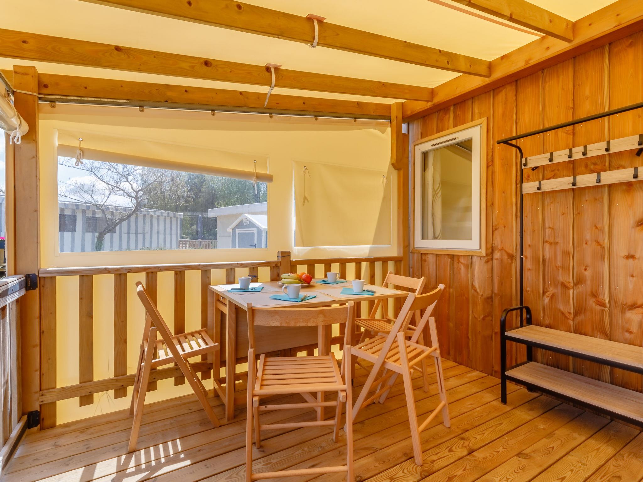 "New Cottage de 2020", 4-room mobile home 42 m2. Beautiful furnishings: living room with panoramic window with dining nook and TV. Exit to the terrace. 1 room with 1 french bed (140 cm, length 190 cm). 1 room with 2 beds (80 cm, length 190 cm). 1 small room with 1 x 2 bunk beds (80 cm, length 190 cm). Open kitchen (3 ceramic glass hob hotplates, toaster, kettle, freezer, electric coffee machine, combination microwave). Shower, sep. WC. Electric heating. Large terrace 27 m2, roofed terrace 12 m2. Terrace furniture, barbecue. Facilities: baby cot for up to 2 year olds. Parking. Please note: non-smokers only. Maximum 1 pet/ dog allowed. Smoke alarm. Offer by a private individual according to Art. 155, IV of CGI.