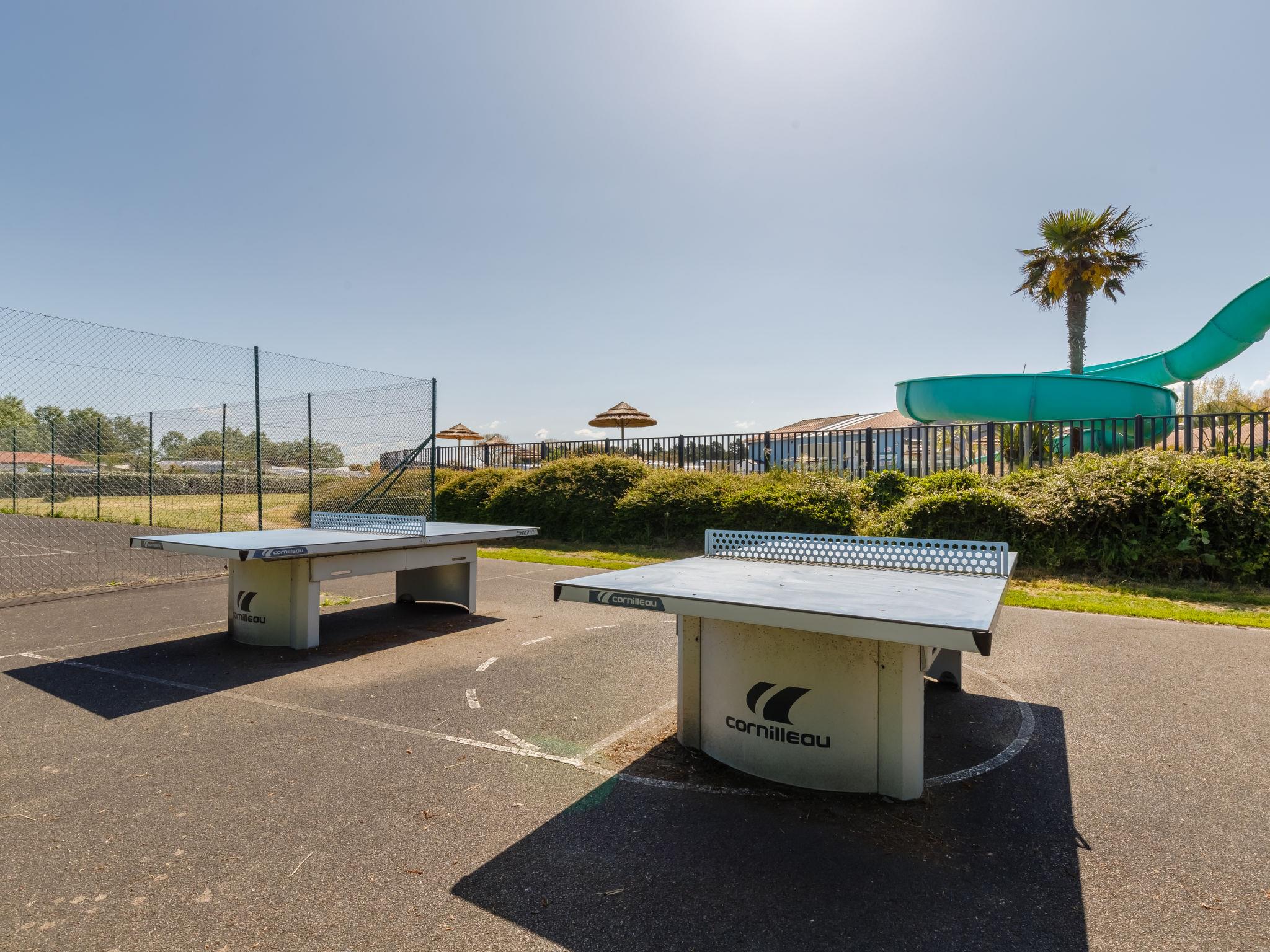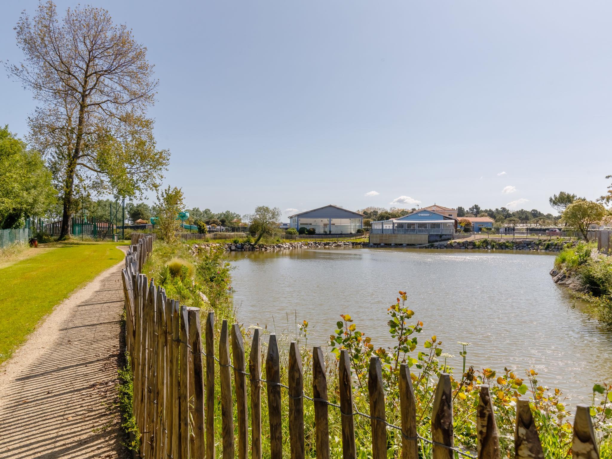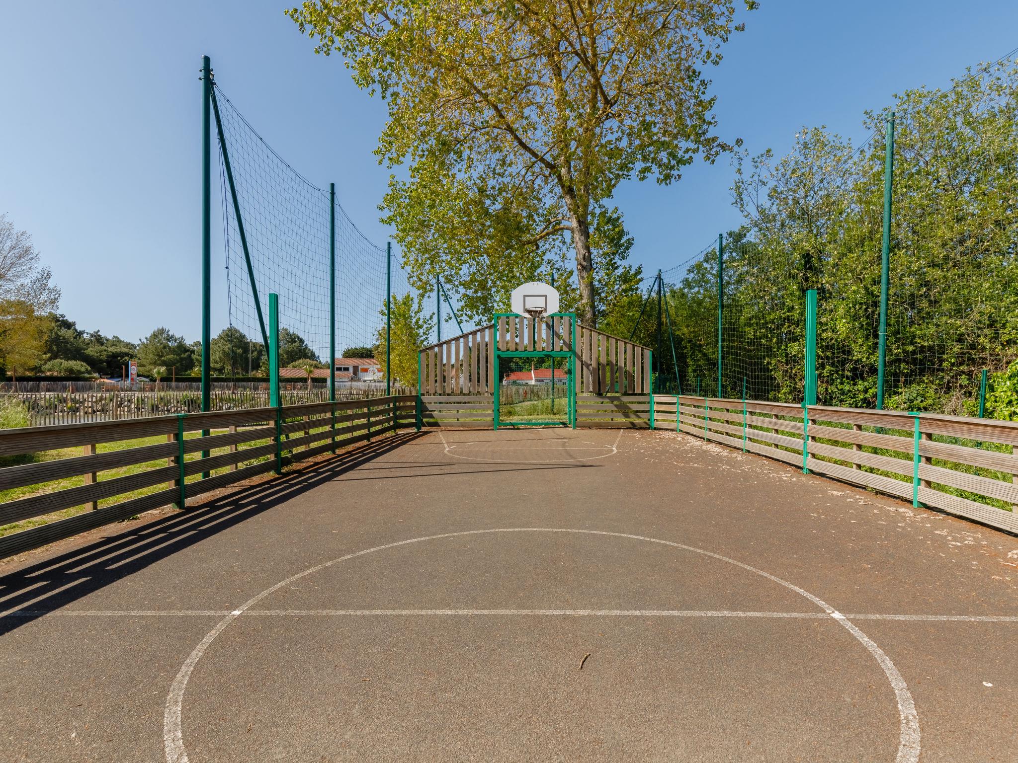 Holiday village "4 étoiles- L'Etang de Besse". 3 km from the centre of St Hilaire de Riez, 1.3 km from the sea. For shared use: property 2 ha (fenced), indoor pool heated (12 x 5 m, depth 50 - 170 cm, seasonal availability: 15.May. - 30.Sep.). Shower/WC in the pool area, tennis, table tennis, basketball, boccia, children's playground. Private: property 210 m2 (fenced). In the complex: restaurant, bar, washing machine, tumble dryer (for shared use, extra), bicycle rental. Parking. Shop 3 km, bus stop 3 km, sandy beach "La Parée Préneau" 1.3 km. Nearby attractions: Saint Gilles Croix de Vie 6 km, Saint Jean de Monts 10 km, Ile de Noirmoutier 30 km, Les Sables d'Olonne 38 km, Nantes 70 km. Please note: suitable for families.