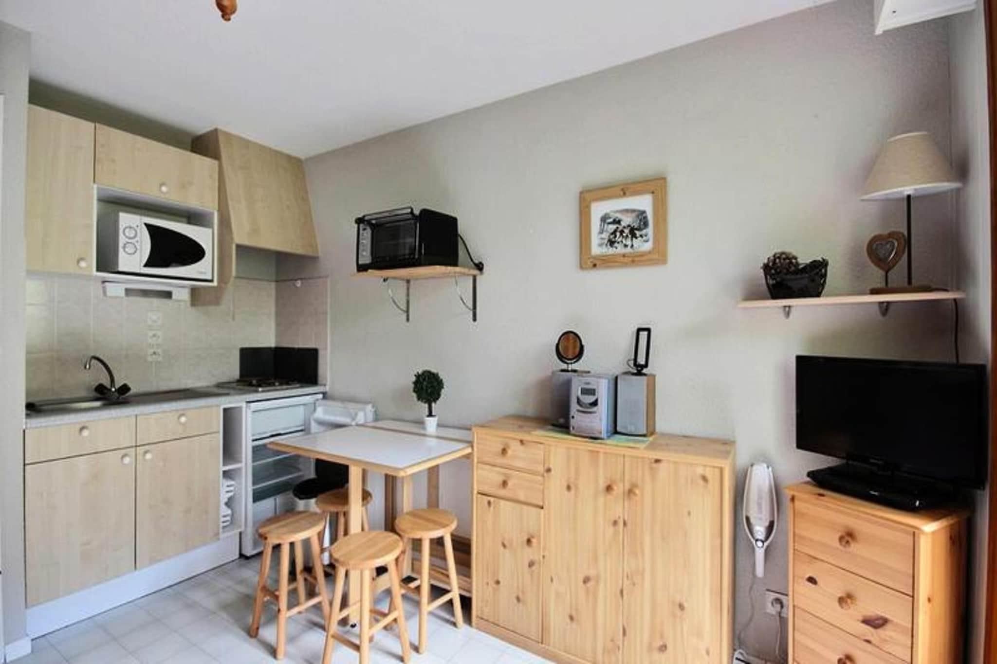 Denne funktionelle og hyggelige studielejlighed kan rumme op til 4 personer, og byder på et soveværelse med en køjeseng og en sovesofa (160x200). Det ligger på 2. sal i en bygning med elevator, som giver nem adgang til skisportsstedet. Studiet er ikke kæledyrsvenligt, og gæsterne skal medbringe deres eget sengetøj og håndklæder, da de ikke leveres. Dyner og puder er tilgængelige til alle senge, hvilket sikrer et behageligt ophold. Denne lejlighed er ideelt beliggende i hjertet af skisportsstedet Grande Terche, kun 20 meter fra skilifterne, hvilket gør den perfekt til vintersportsentusiaster. Barer, restauranter, skiudlejningsbutikker og ESF (den franske skiskole) er alle inden for gåafstand, hvilket giver gæsterne bekvemmeligheden ved at have alt, hvad de har brug for i nærheden. Uanset om du leder efter et sted at spise eller udstyr til leje, finder du det hele lige ved døren, med adgang til Portes du Soleil-området kun 10-15 minutter væk i bil. Studiet har et veludstyret køkken med elektriske kogeplader, et køleskab og en miniovn, så gæsterne kan tilberede måltider under deres ophold. Stuen omfatter et spisebord med stole, en sovesofa og et fjernsyn. Et separat toilet og et badeværelse med håndvask bidrager til det praktiske i rummet. Derudover byder lejligheden på en altan med en vestvendt udsigt over skiløjperne, perfekt til at slappe af efter en dag med eventyr.