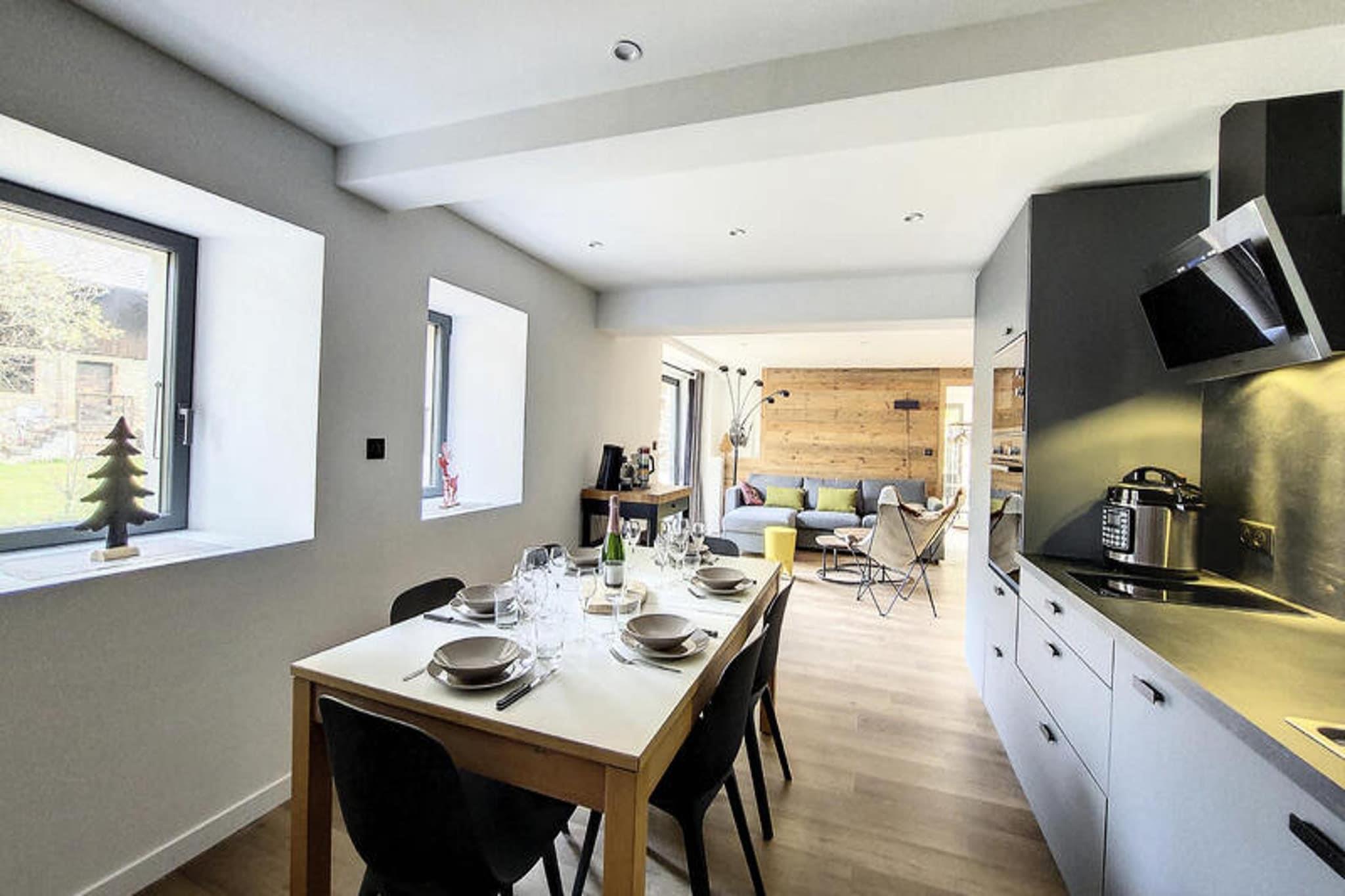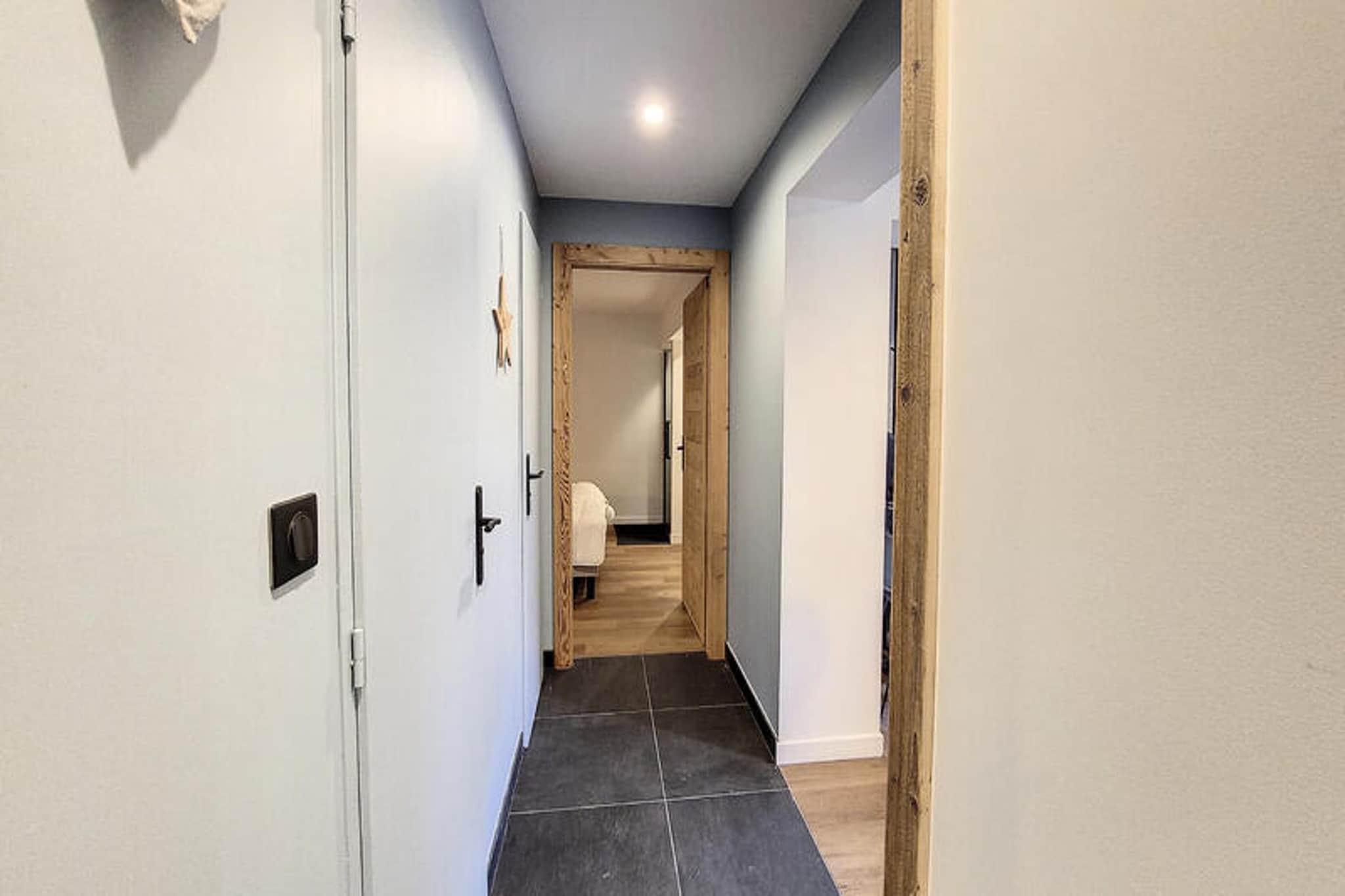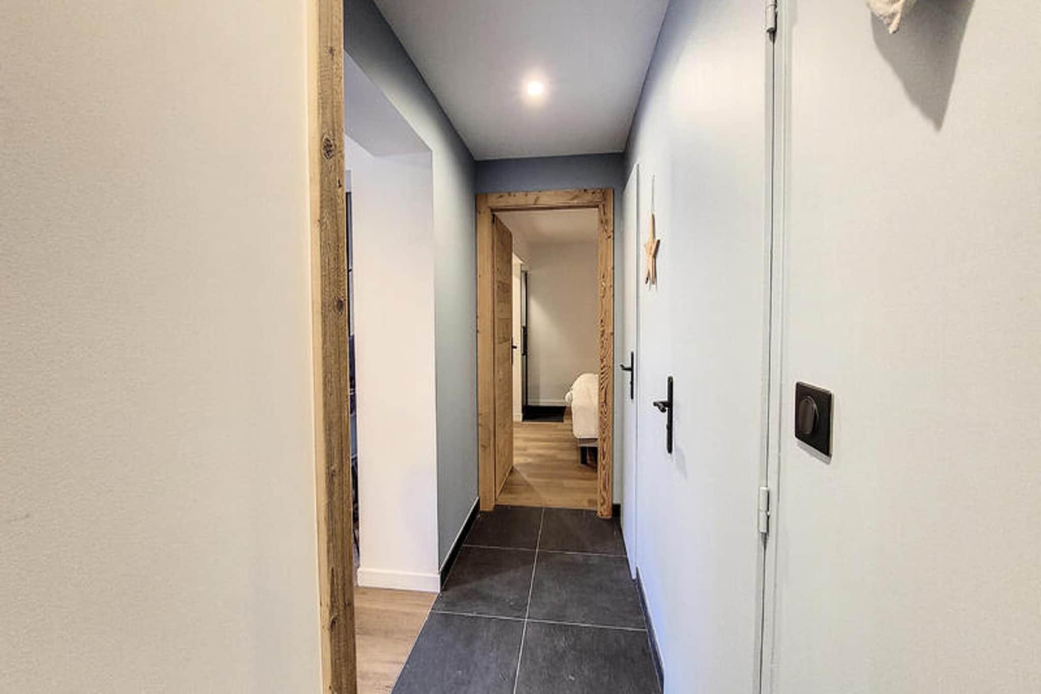 Denne charmerende lejlighed i stueetagen har plads til 4 til 6 personer, hvilket gør den til et ideelt valg for familier eller små grupper. Det har to soveværelser, hver med to enkeltsenge, og en rummelig opholdsstue med en sovesofa. Hovedsuiten inkluderer bruser og skab, mens det andet soveværelse har en lille balkon og opbevaring. Kæledyr er tilladt (undtagen kategori 1 og 2 hunde), så du kan tage dine lodne venner med. Der er dyner og puder til alle senge, men gæster skal selv medbringe sengelinned og håndklæder. Lejligheden er beliggende i hjertet af Saint Jean d'Aulps Station, kun få skridt fra pisterne, som tilbyder bekvem adgang til ski-in/ski-out. Efter en dag på pisterne kan du slappe af på den østvendte terrasse, som har et spisebord, stole og en grill til sommermåltider. Området er også hjemsted for lokale caféer, restauranter og butikker, hvilket sikrer nem adgang til alt, hvad du har brug for under dit ophold. Lejligheden er veludstyret med et fuldt funktionelt køkken, herunder en keramisk kogeplade, opvaskemaskine, ovn og mikroovn, perfekt til at tilberede måltider. Et fælles skirum med vaskerum, skirum og skotørrer tilføjer ekstra bekvemmelighed. Det rummelige brusebad omfatter en håndklædetørrer, og et separat toilet er også tilgængeligt. Gæsterne kan også nyde det fælles cykelrum og gratis trådløs internetadgang under deres ophold.