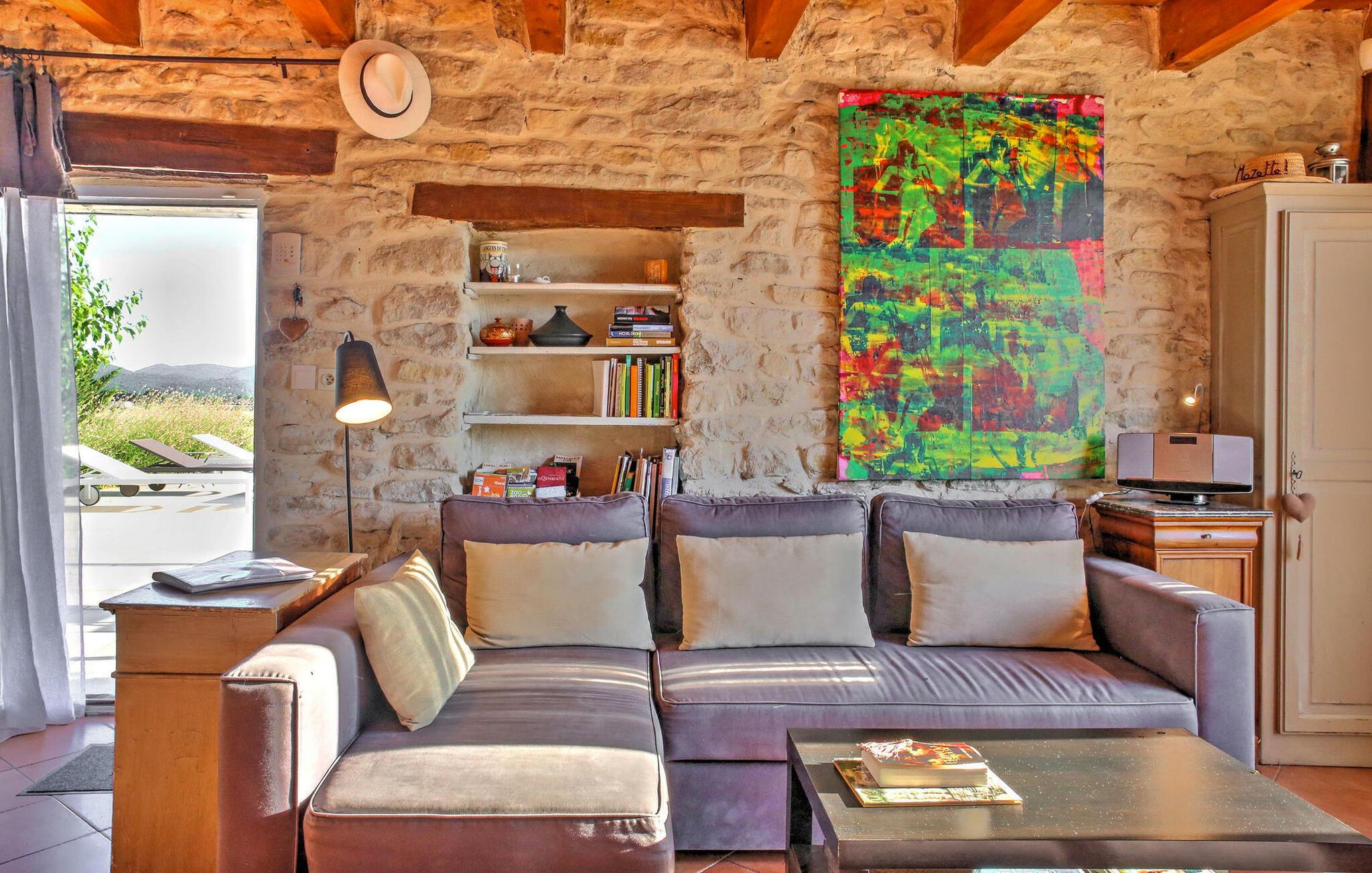 Saint Jean de Maruejols, som ligger nær Barjac, Ardèche og Cèze-floden i den provencalske Gard, er vært for dette charmerende sommerhus med en privat opvarmet pool med en fantastisk udsigt. Dette fredfyldte og naturskønne sommerhus giver en ideel base for at udforske nærliggende attraktioner som Vallée de la Cèze, Gorges de l'Ardèche, Cevennerne og Nimes. Hytten har en åben opholdsstue med et fuldt udstyret køkken med moderne faciliteter, der åbner ud til en sydvendt terrasse. Spiseområdet har bord og stole, mens siddeområdet byder på en komfortabel sovesofa og en dekorativ pejs. Loftsværelserne er på første sal. Udendørs funktioner omfatter en sydvendt terrasse med pergola og en vestvendt terrasse med borde og stole. En privat sikret opvarmet pool (10 mx 4 m) er omgivet af en terrasse. Det uafhængige sommerhus er beliggende i højderne af Saint Jean de Maruejols nær Barjac midt i et landbrugsområde med marker og vinmarker. Landsbyen og alle nærbutikker er på +/- 2 km. Du kan svømme i floderne "La Tave" og "La Cèze", og "Gorges de l'Ardèche" er også i nærheden. Området Barjac (mellem Cevennerne og "Vallée de la Cèze") har en flot historisk arv og er et perfekt sted for naturelskere og gåture. I området kan du besøge landsbyerne Barjac, Lussan, Tharaux, Monclus, Bessas, byen Uzès, les "Cascades du Sautadet", les "Concluses de Lussan", Gorges de l'Ardèche", "la vallée de la Cèze", og selvfølgelig den berømte "Pont du Gard". Bemærk venligst: Soveværelserne på loftet har lavt til loftet, og den stejle trappe er muligvis ikke egnet til ældre eller bevægelseshæmmede personer. Grill er forbudt i den tørre sæson (13. juni - 15. september), og i stedet er der en elektrisk grill. Huset har et enkelt klimaanlæg til hele ejendommen. Ejeren bor lejlighedsvis i et selvstændigt hus på ejendommen, ansvarlig for have- og poolvedligeholdelse.