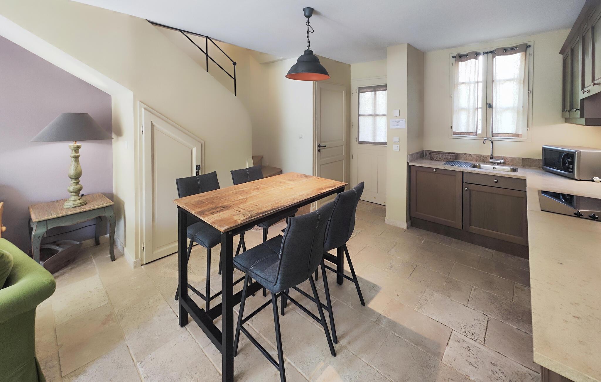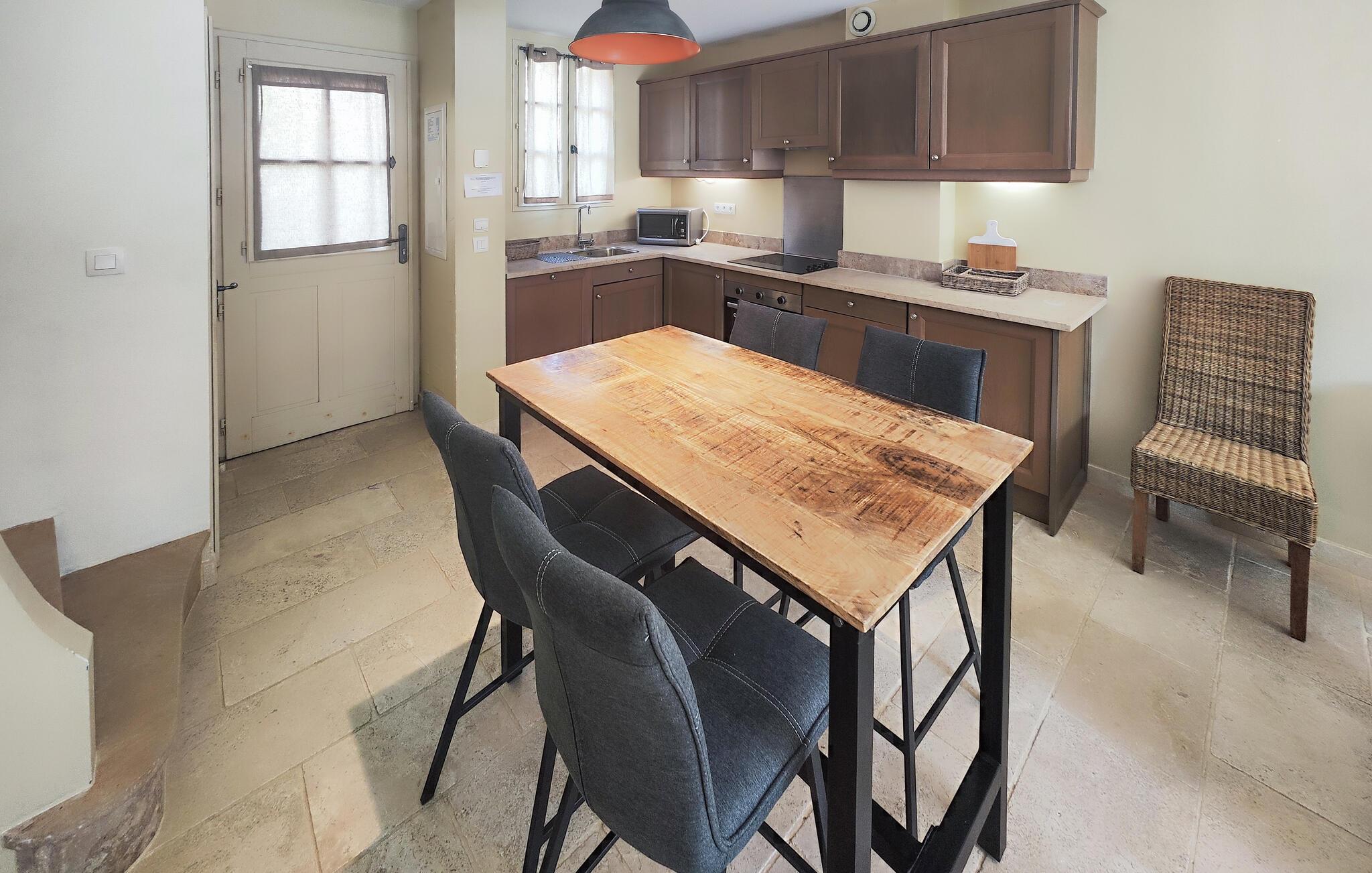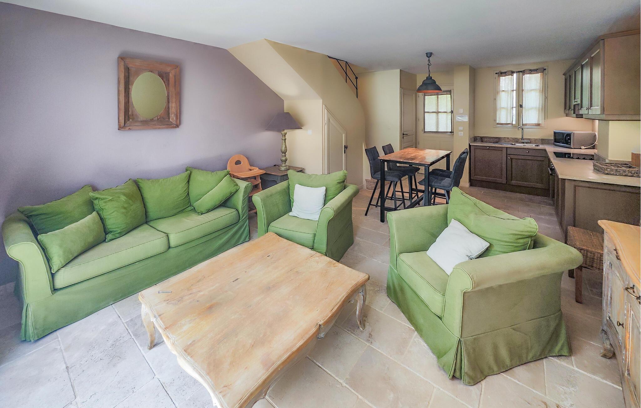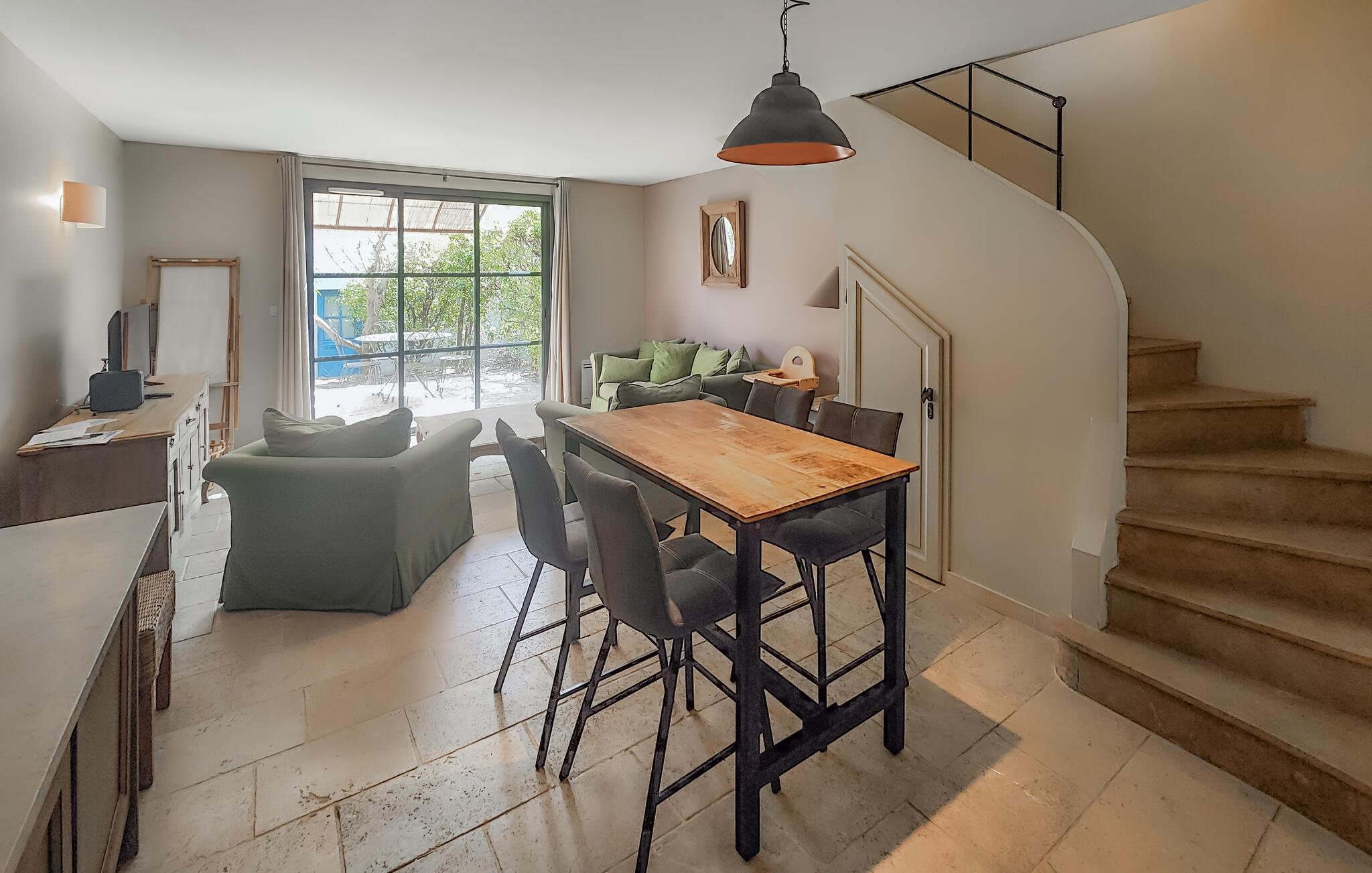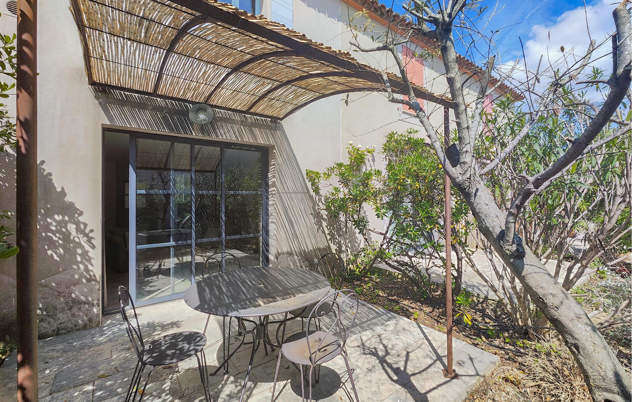 Velkommen til dette fine rækkehus, hvor I som lille familie får alt, I behøver til en herlig ferie i dejlige omgivelser. I stueetagen finder I et åbent opholdsrum, der forener køkken og stue, og hvor der venter jer mange hyggelige stunder før og efter dagens udflugter. Nyd en god nats søvn i de behagelige soveværelser og begynd dagen med en lækker morgenmad på terrassen, hvor I kan finde skygge under buskene eller bade i solen, inden I tager på tur.